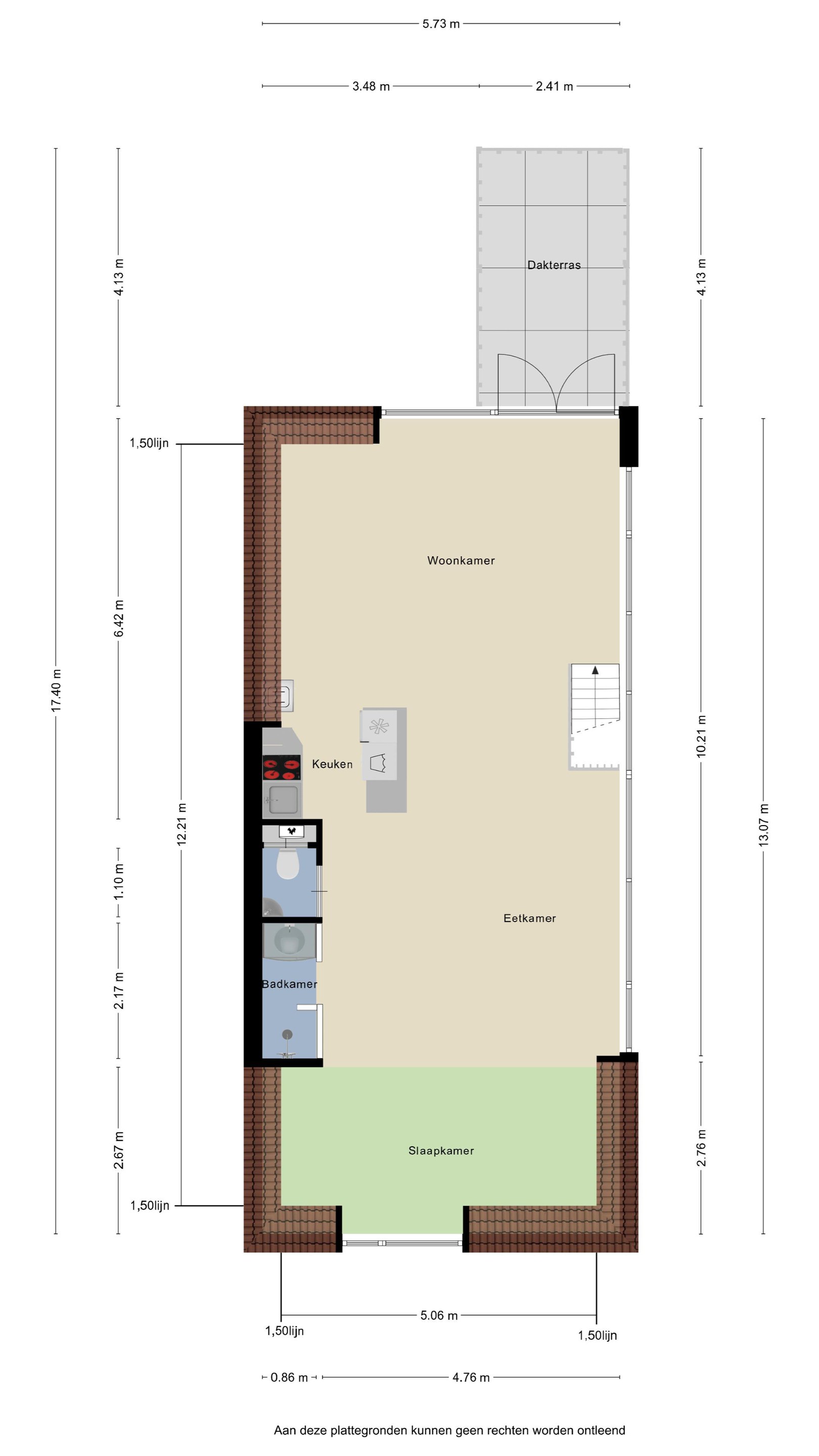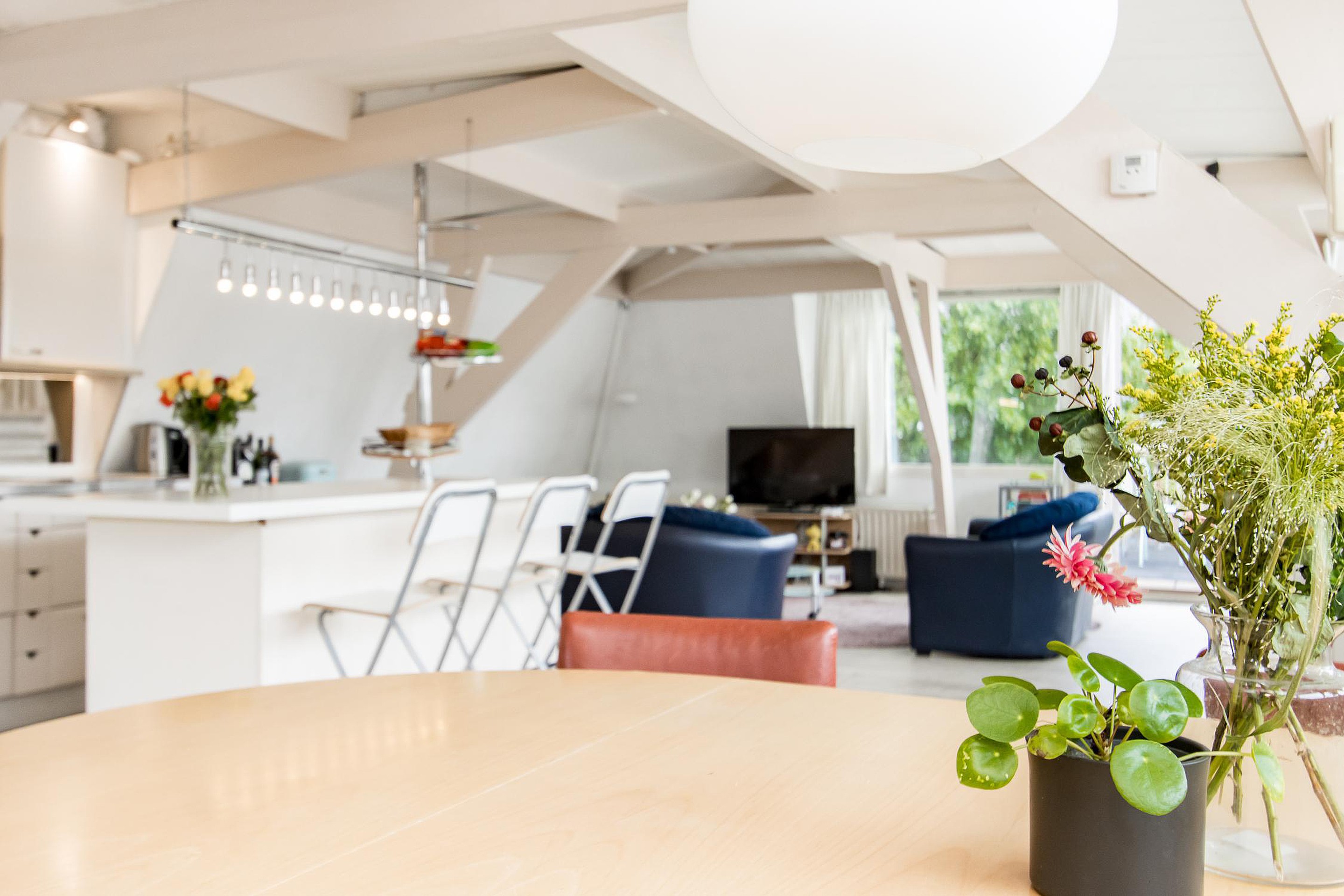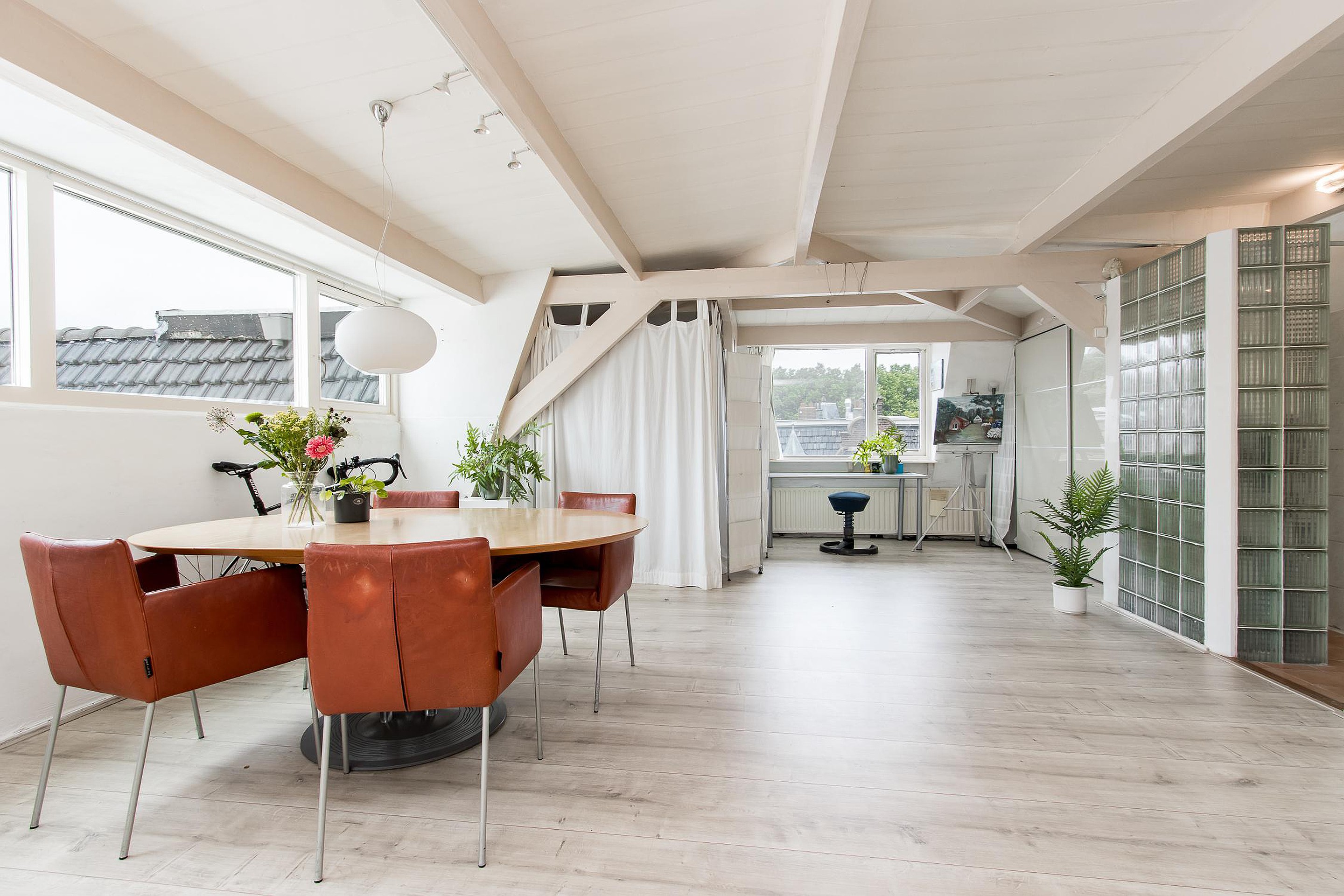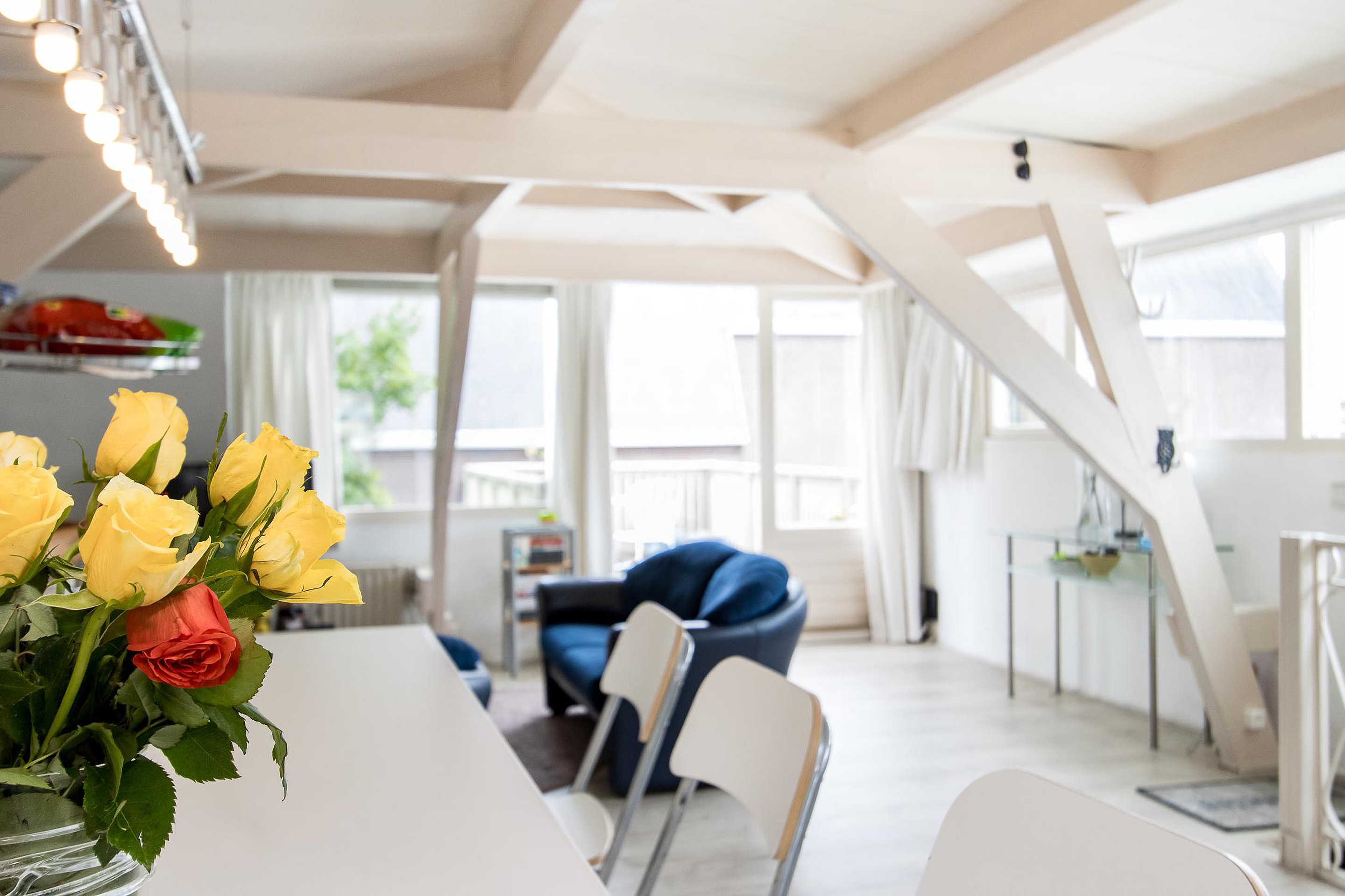 Het penthouse biedt alle ruimte voor zithoek, eethoek, studiecorner, enz.