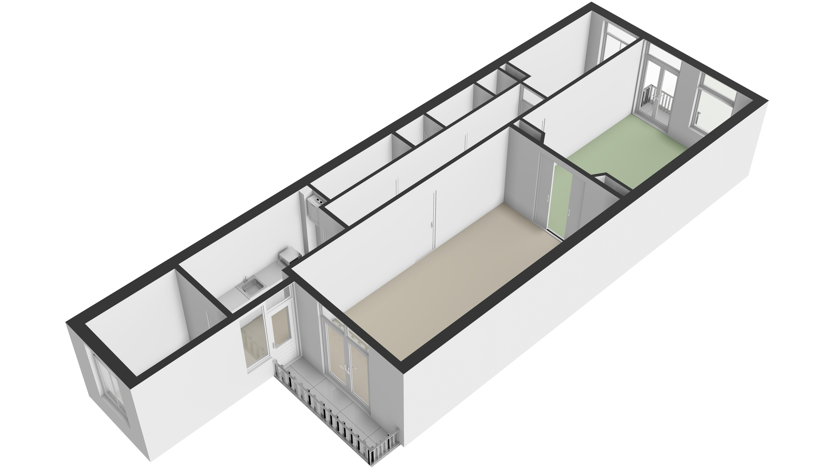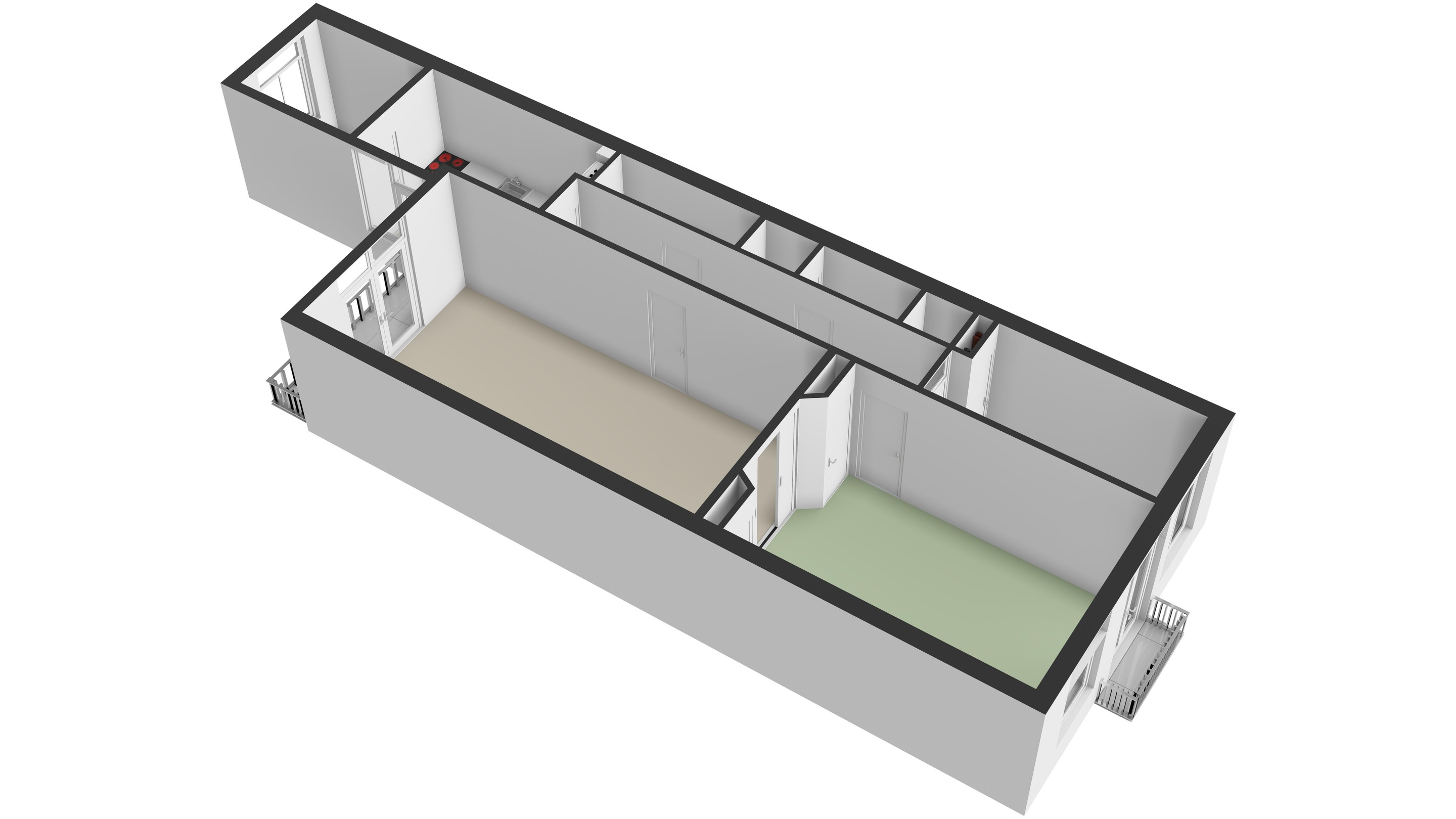 Begane grond Woonobject is thans opgedeeld in 2 appartementen: