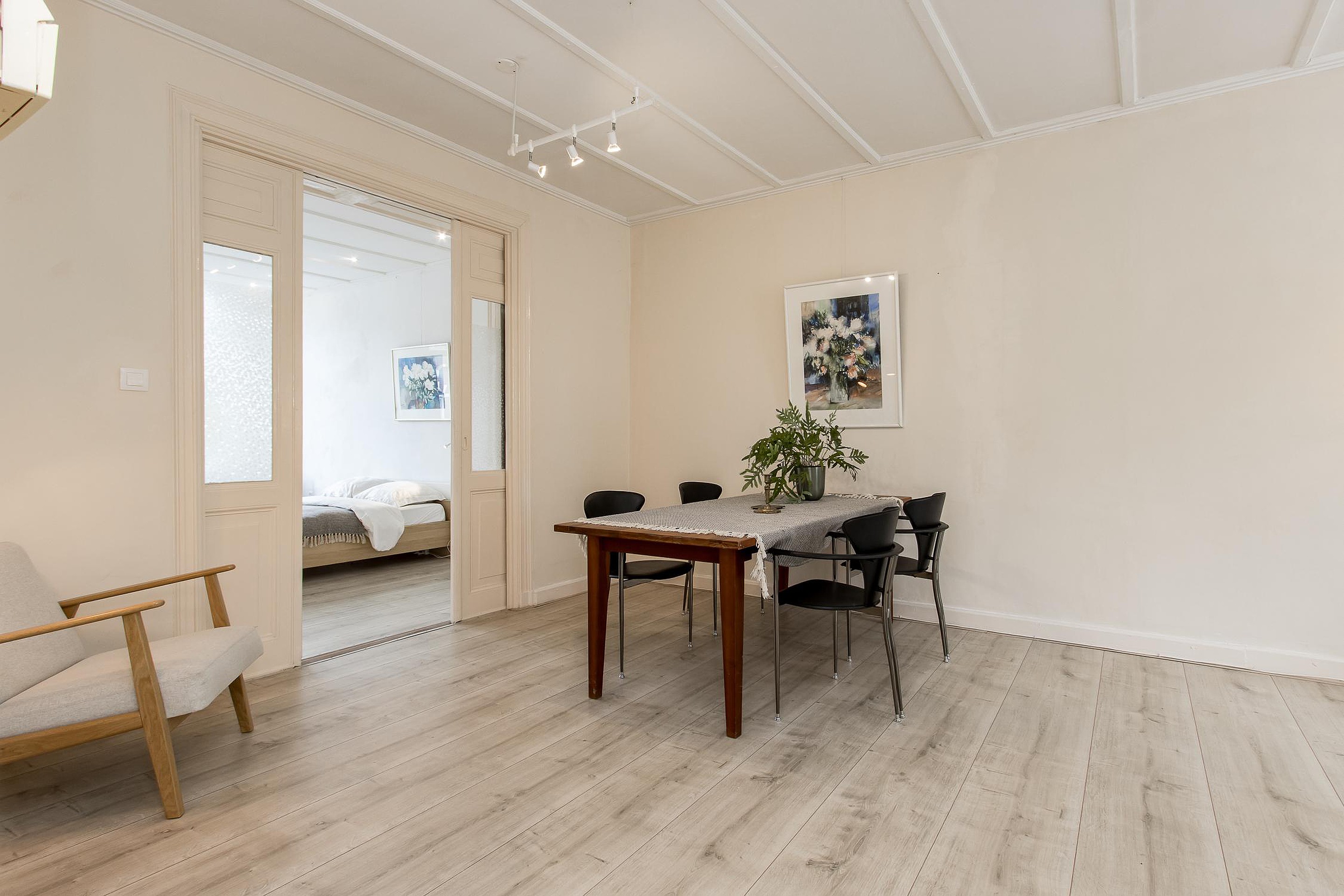 Naar eigen wensen zijn de 4 kamers te gebruiken als zitkamer, eetkamer, werkkamer of slaapkamer(s).