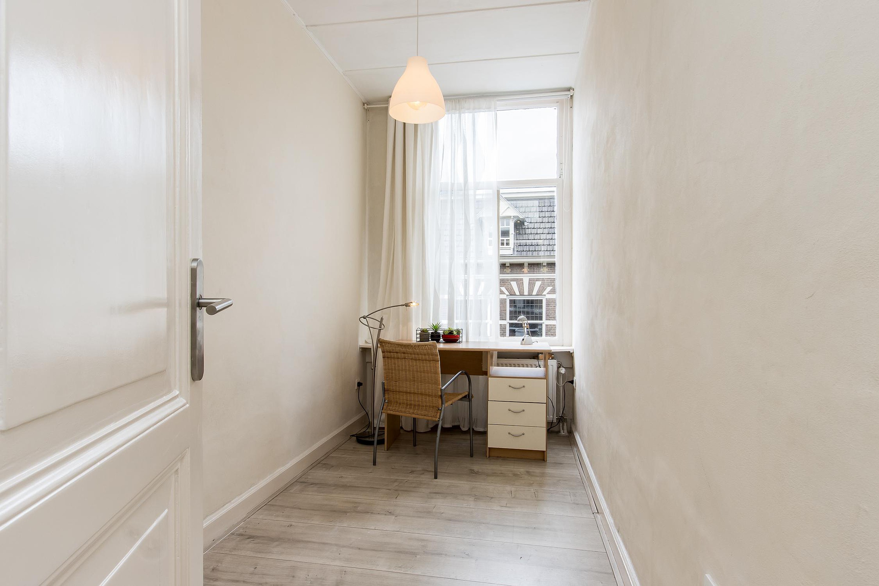 Kleine (slaap)kamer voor met zicht op de straat 300 x 205 cm.