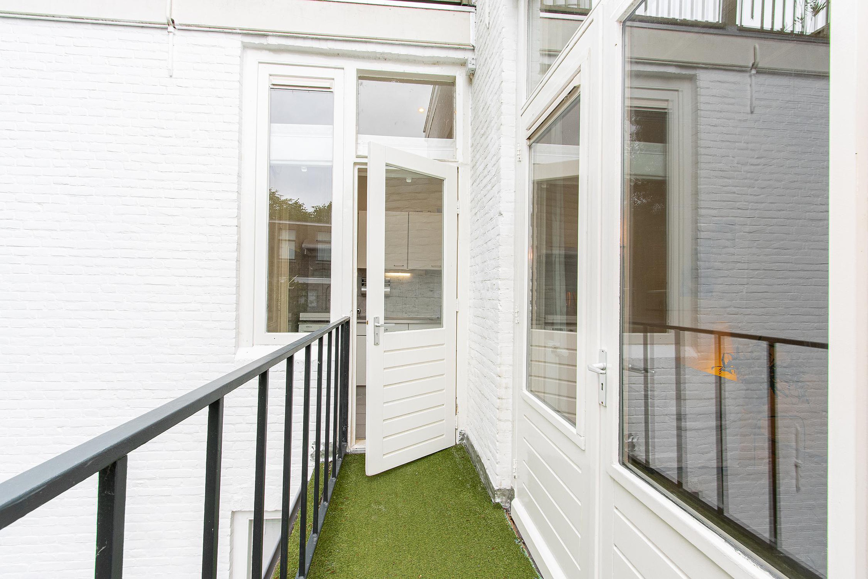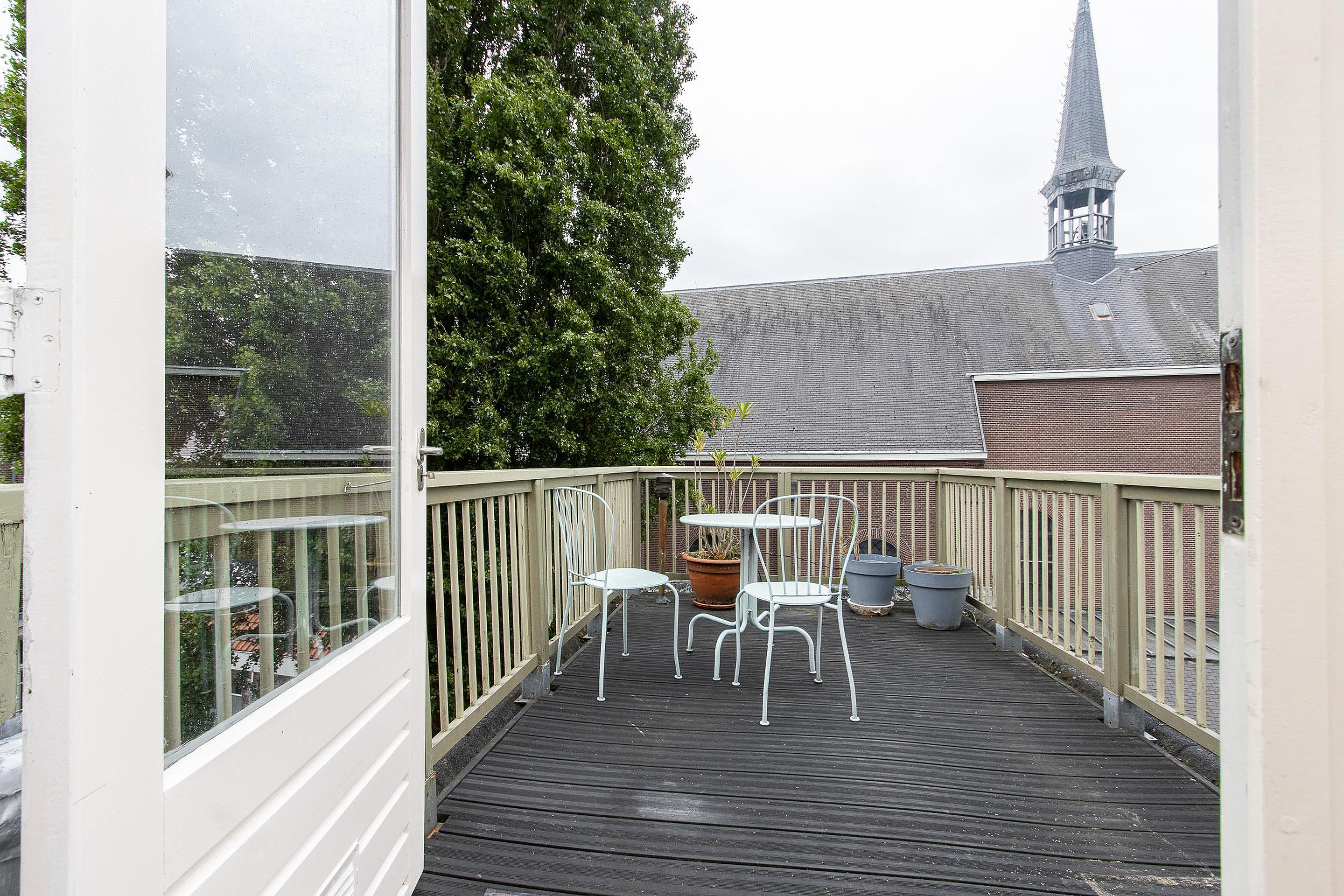 Buitenruimtes: Een balkon met openslaande deuren op de 2e etage en een dakterras op de 3e etage, beiden op het zuiden om te genieten van de buitenlucht en het vrije uitzicht.