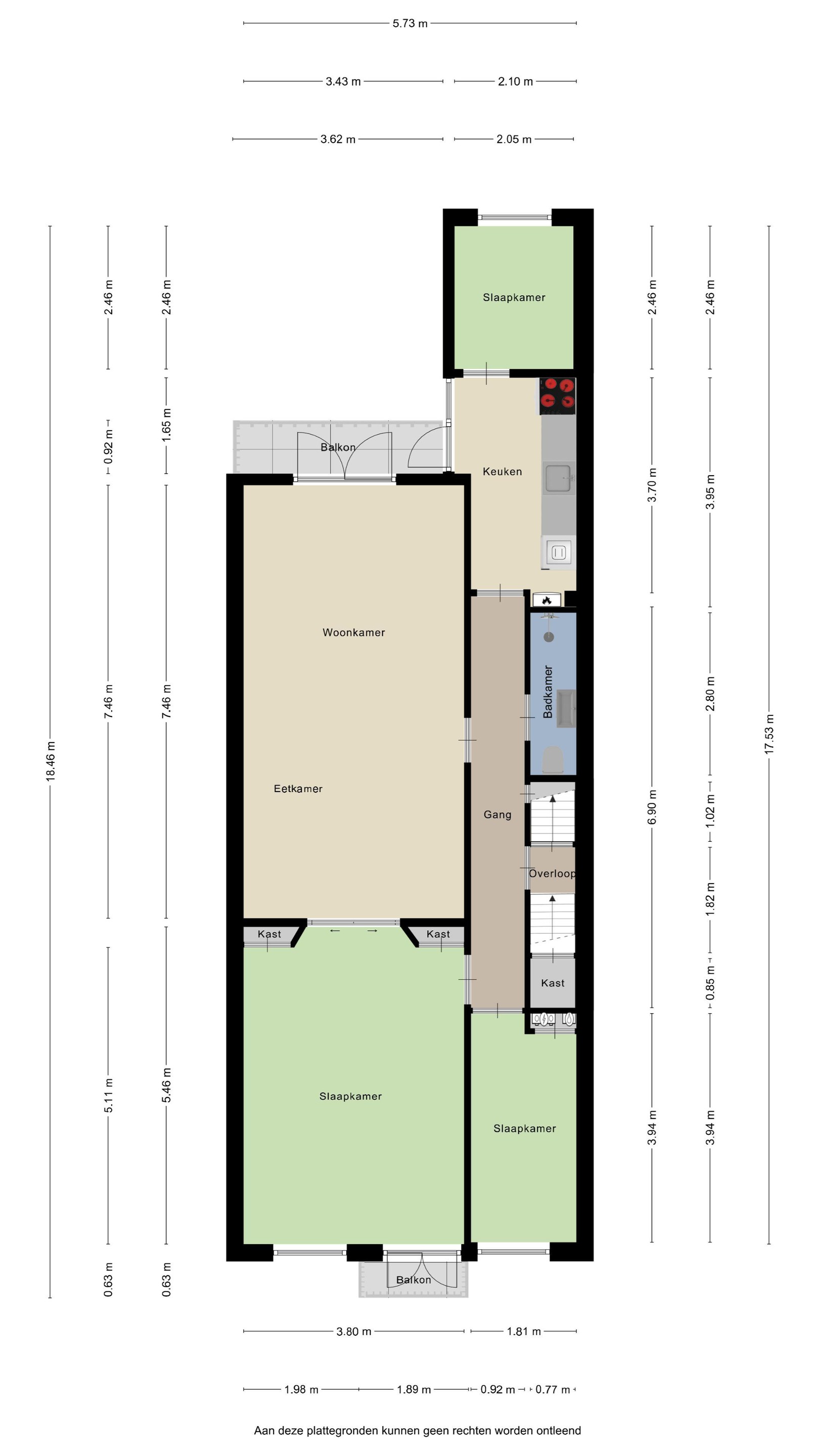 Op zowel de 2e als de 3e etage is een appartement met een gedeelde opgang en ieder een eigen voordeur. Beide etages zijn niet kadestraal gescheiden.