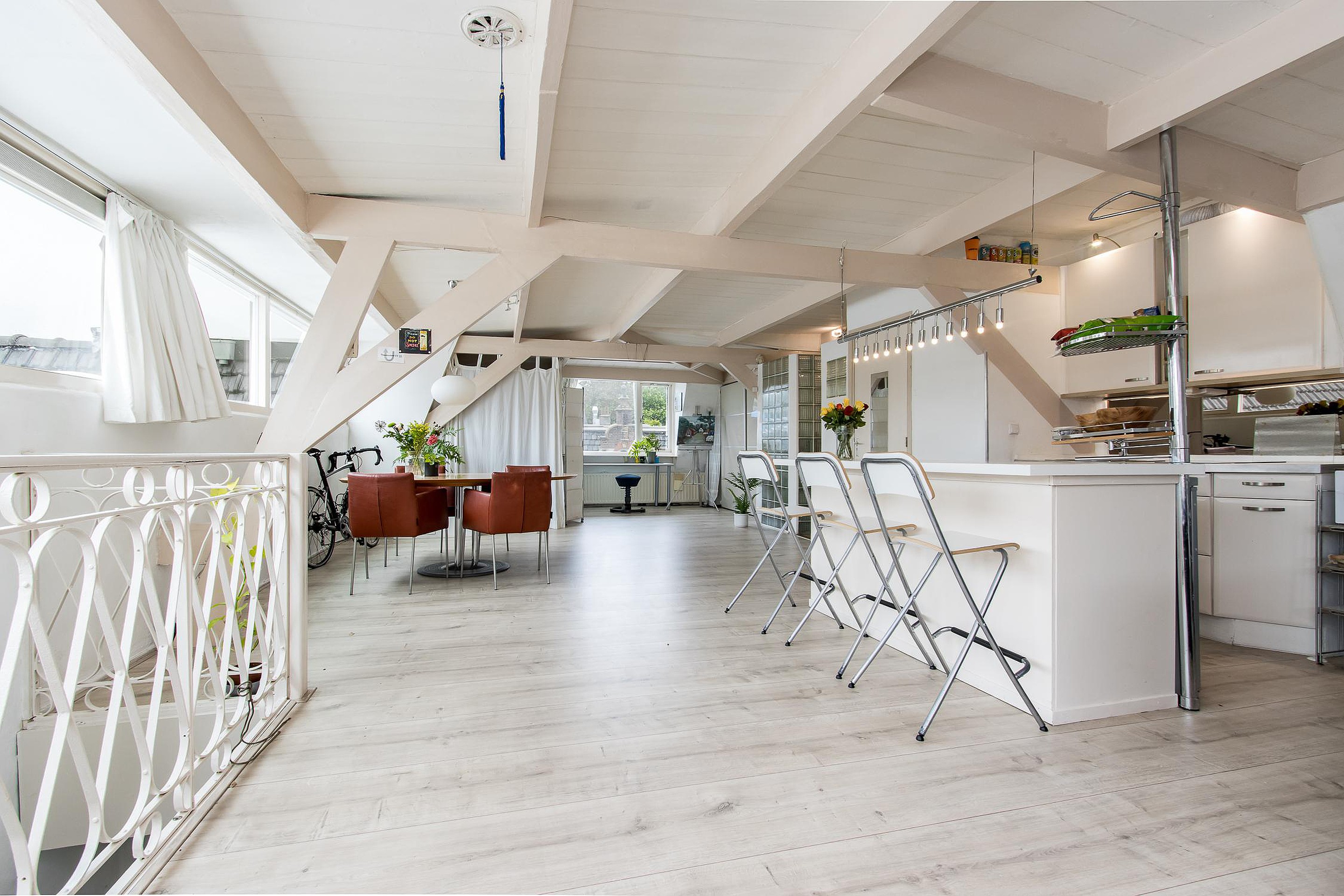 Authentieke bovenetage en verrassende entree voor iedere bezoeker, met name door het enorme (zon-)licht door de vele ramen.