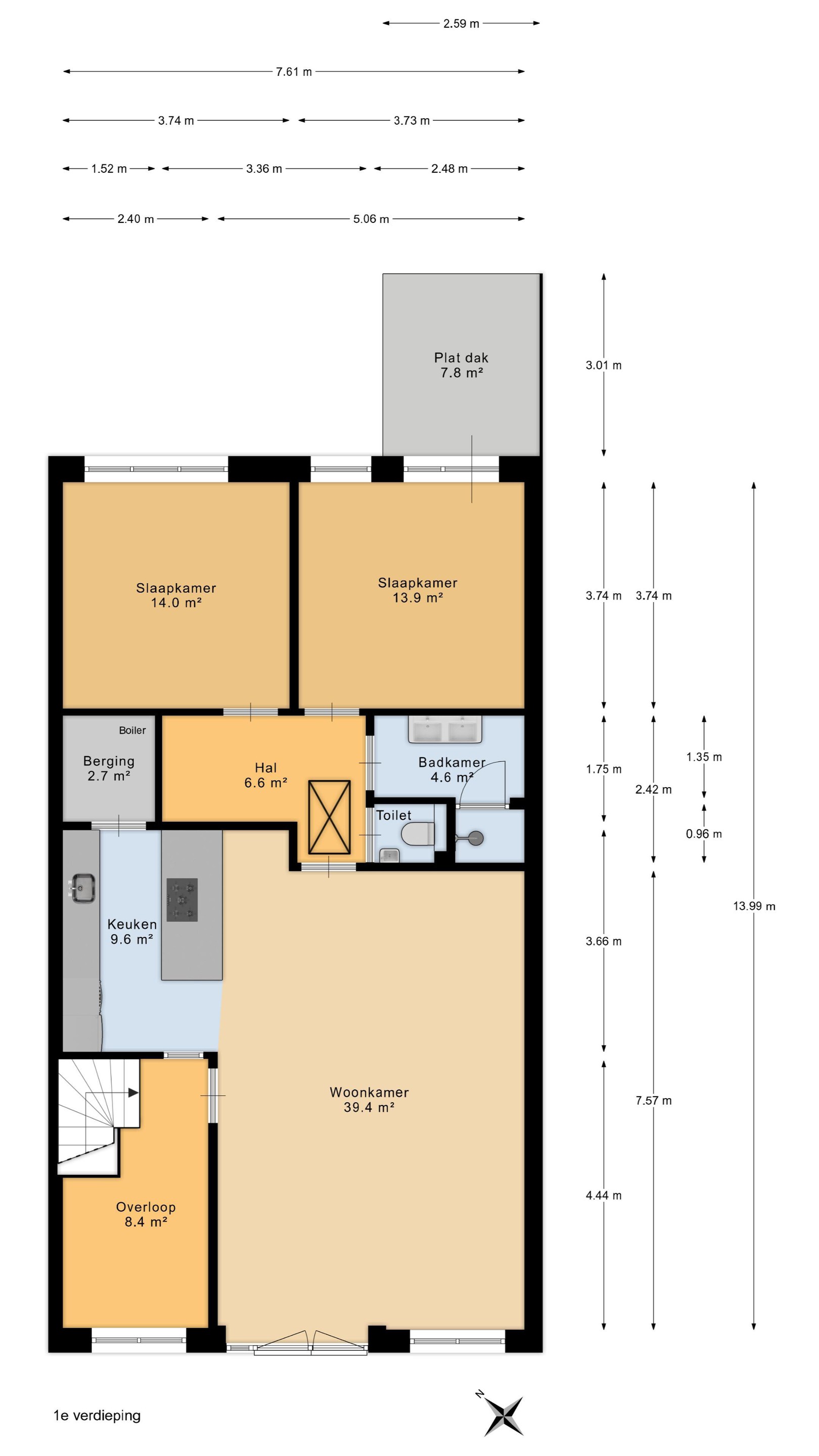 De woning is voorzien van een luxe compleet ingerichte badkamer en een separate toiletruimte.