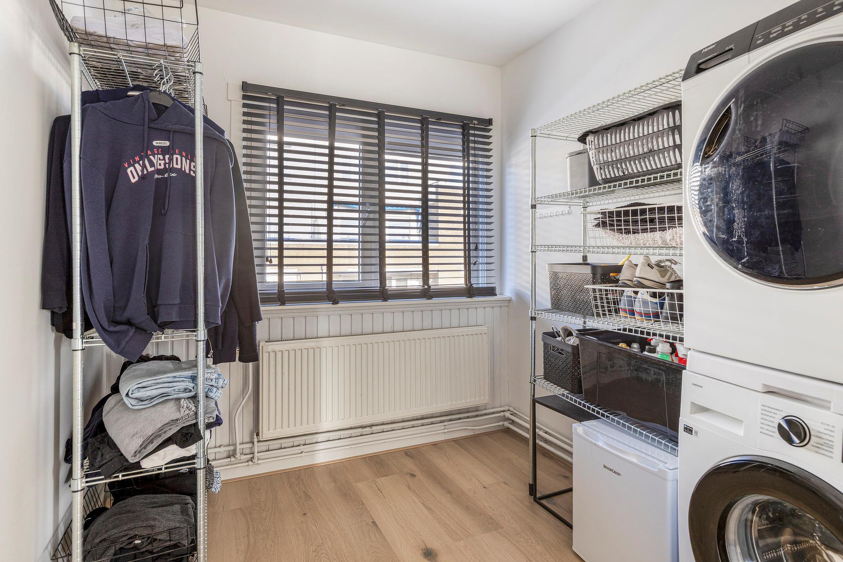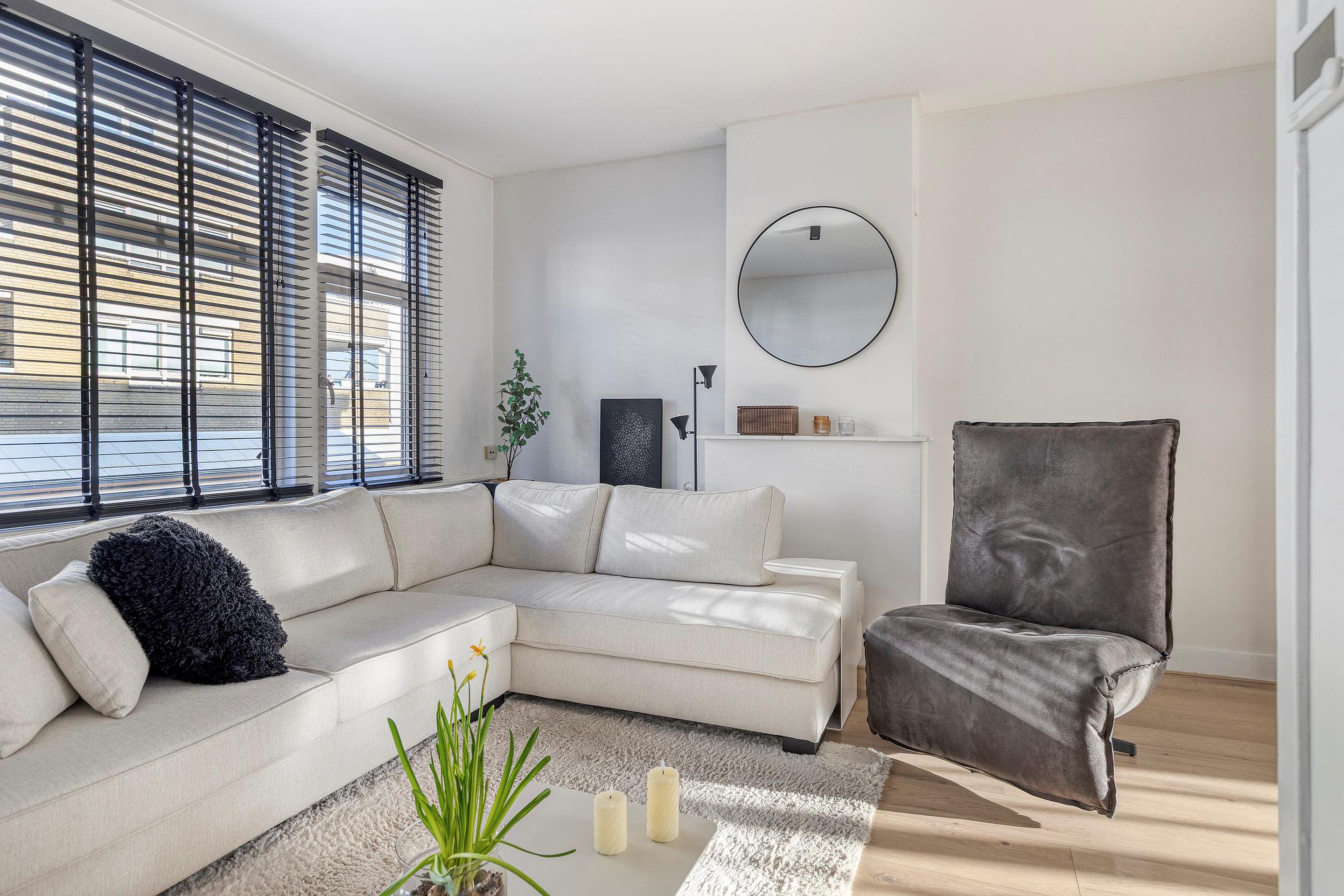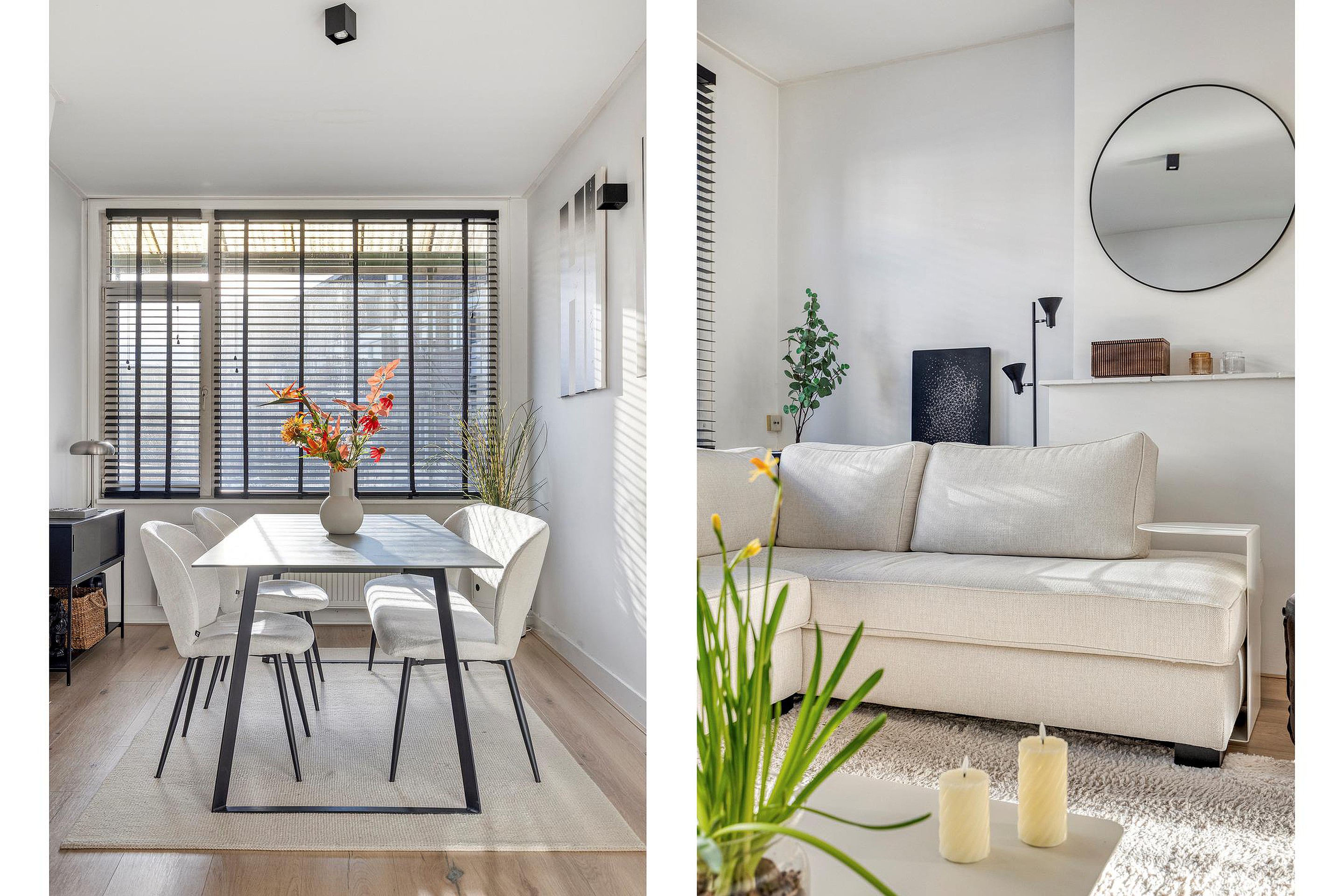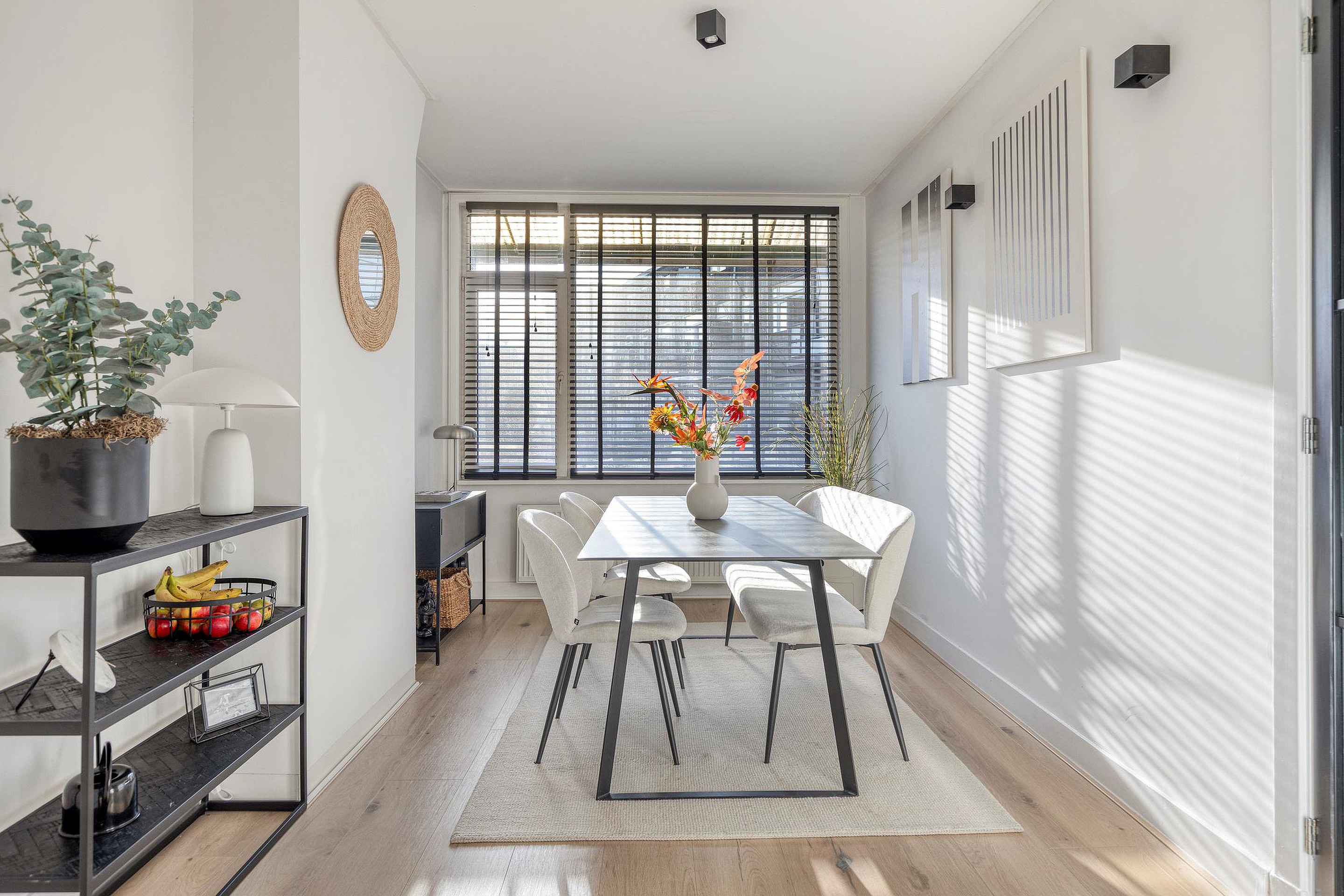 De woonkamer is voorzien van een laminaatvloer en wordt middels een en-suite met schuifdeuren verdeeld in een woon- en eetkamer. De keuken is gelegen aan de achterzijde van de woning en de keukeninrichting met inbouwapparatuur is in 2024 geplaatst, dus zo goed als nieuw. Vanuit de keuken kom je op het eerste balkon, heerlijk gelegen op het zuiden. Het toilet heeft een vrijhangend closet en een leuke nis en is in 2024 geplaatst.