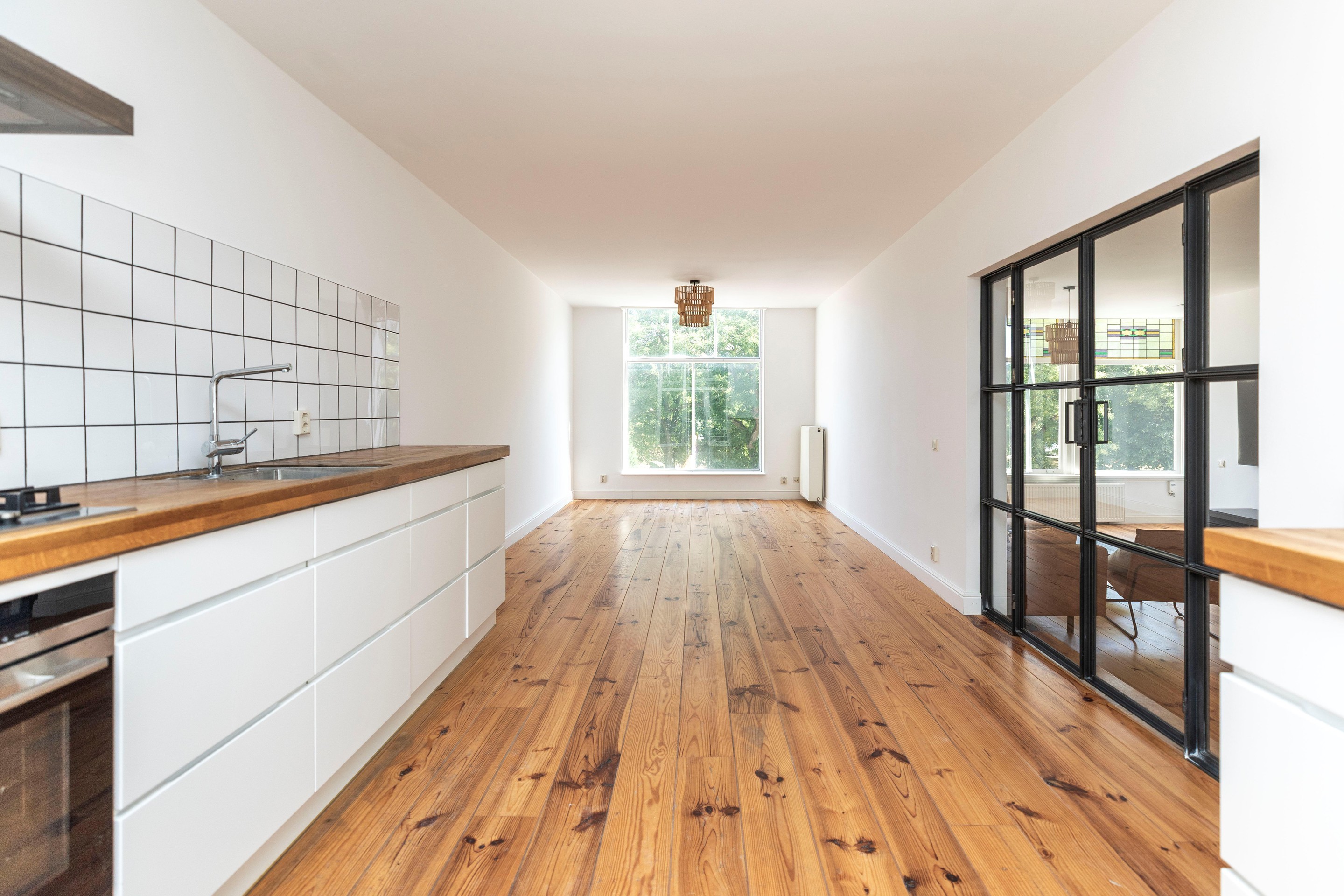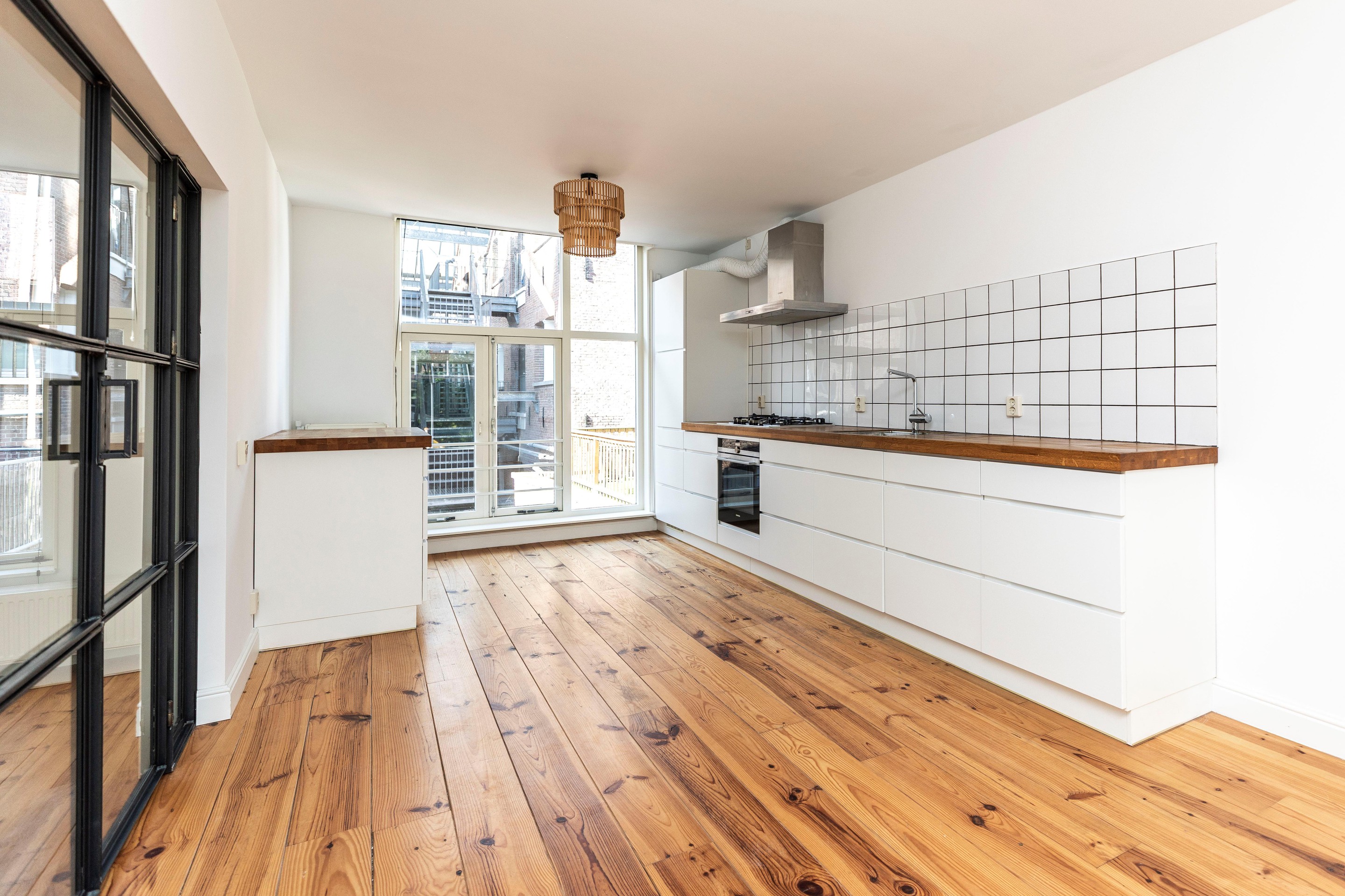 De bijzonder ruime woonkamer is erg breed en biedt toegang middels openslaande deuren naar de keuken. De keuken is voorzien van alle inbouwapparatuur en heeft spectaculair uitzicht aan de voorzijde weids en groen en aan de achterzijde knus en authentieke prachtige gevels. Lichtinval is top dankzij de grote raampartijen. Vanuit de woonkamer komt u in een tweede hal waar de kast, toiletruimte is en toegang geeft tot het dakterras. Het dakterras is een fijne plek waar u genoeg ruimte heeft om een leuke buiten zit te plaatsen.