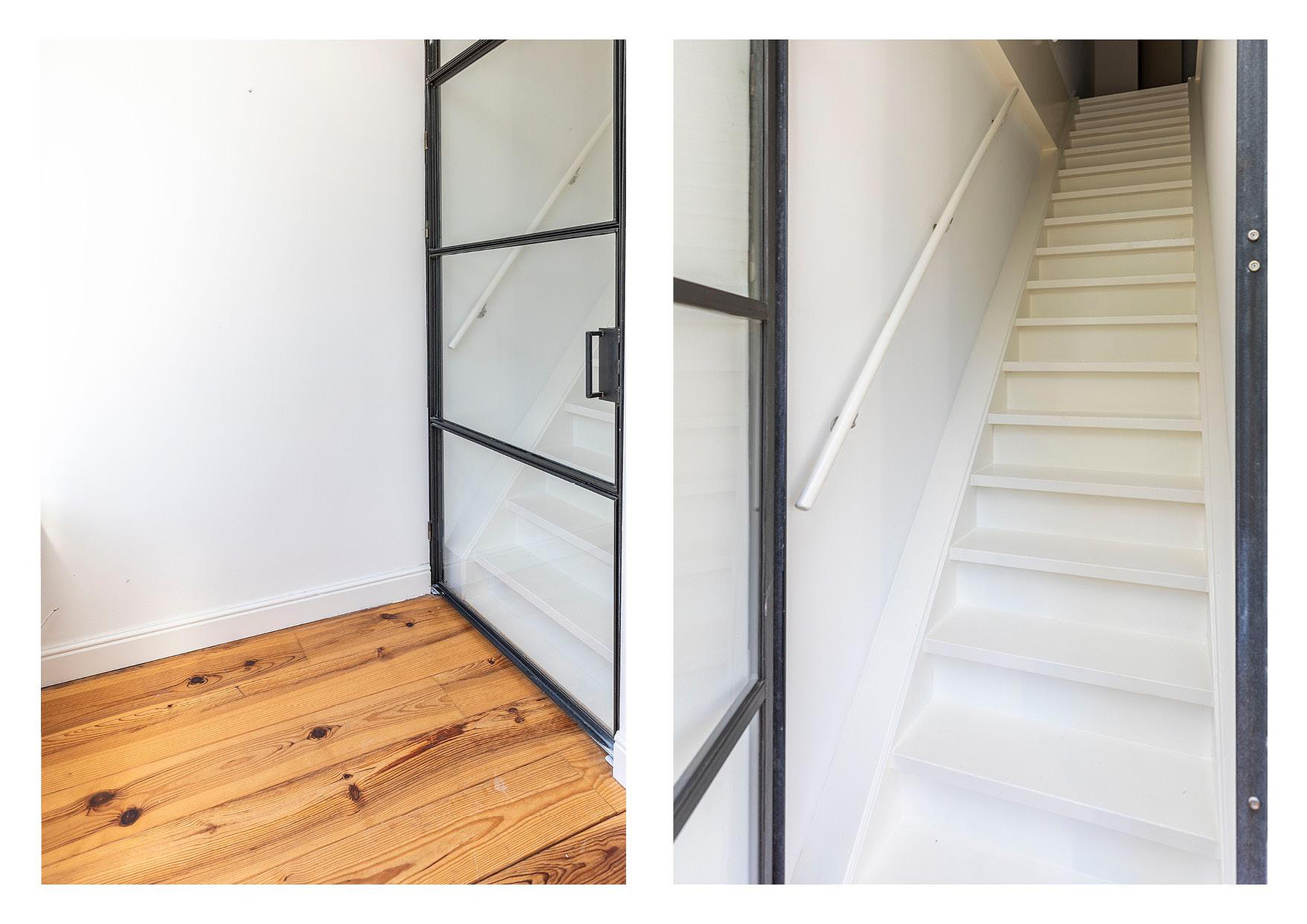Eigen voordeur met trapopgang naar de eerste verdieping.