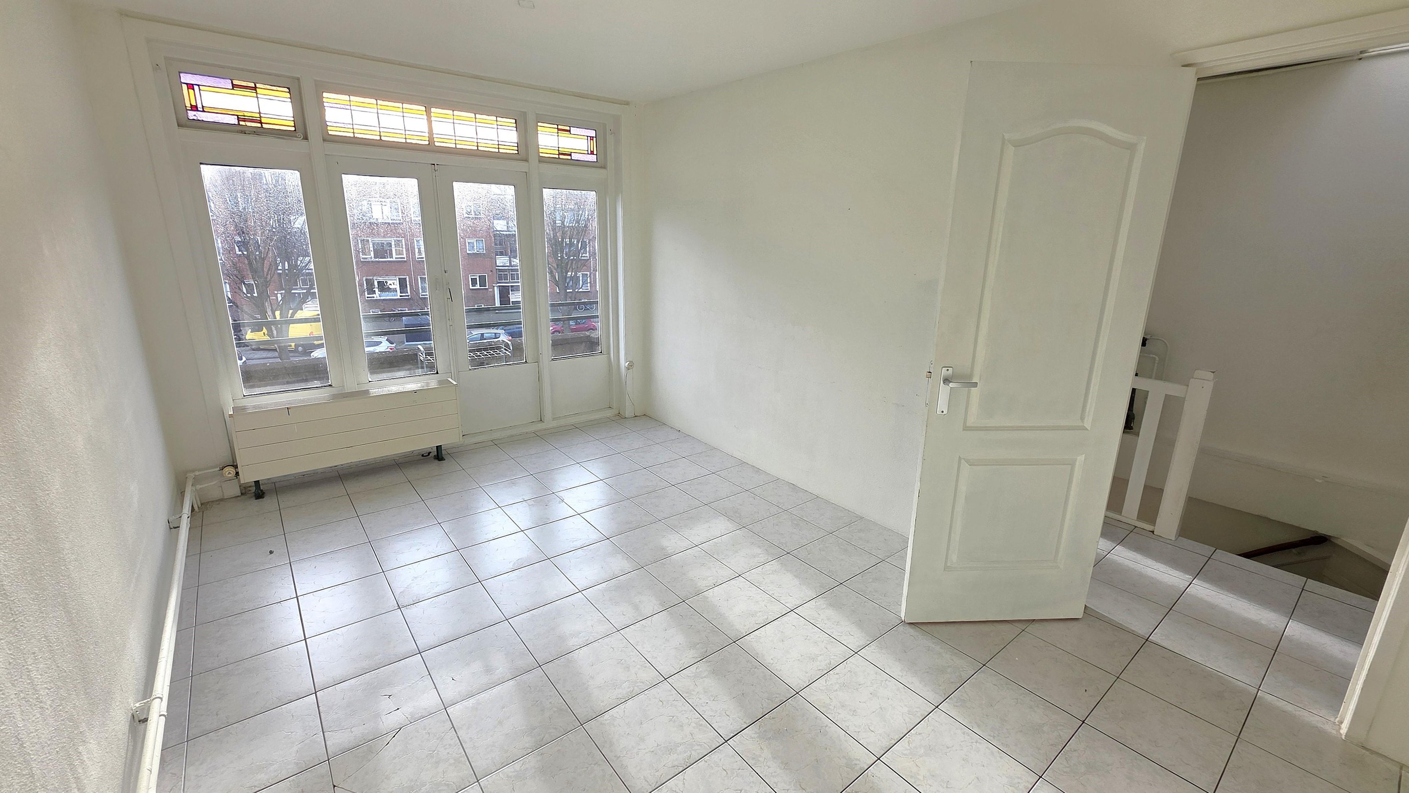 Deze woning beschikt over een eigen entree op straatniveau met trapopgang naar de eerste etage. Hier bevindt zich een ruime woonkamer van circa 48 m2 met open woonkeuken. Dankzij de balkons aan twee zijden is er prettig lichtinval en altijd een plek in de zon. Aan de achterzijde zijn kunststof kozijnen met dubbel glas aanwezig. De houten kozijnen aan de voorzijde zijn eveneens voorzien van dubbel glas, maar vragen op termijn om vervanging.