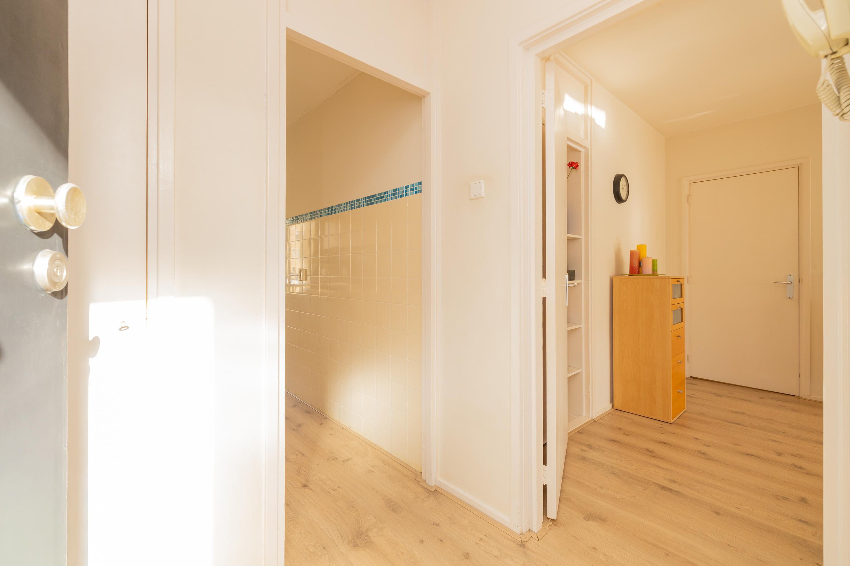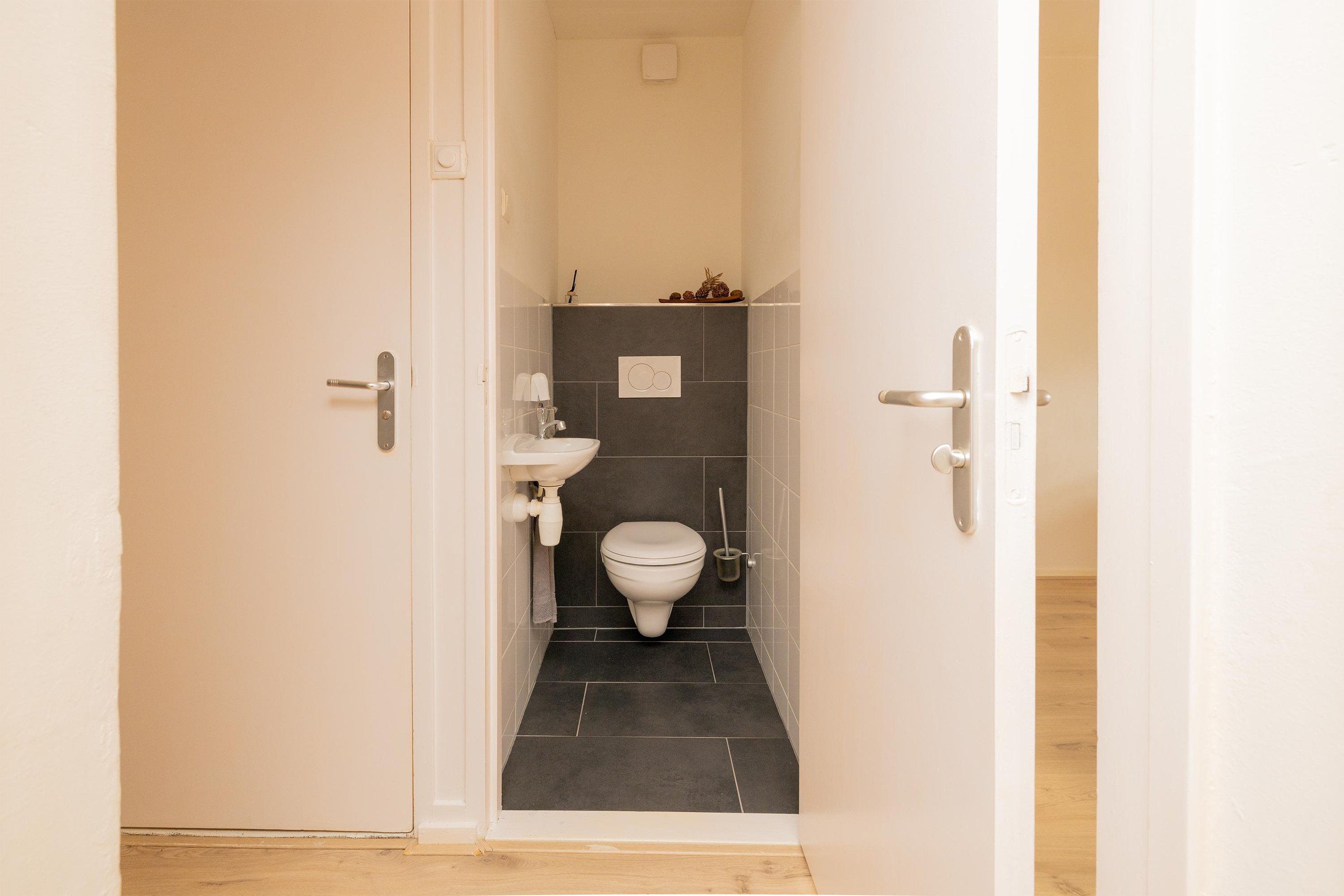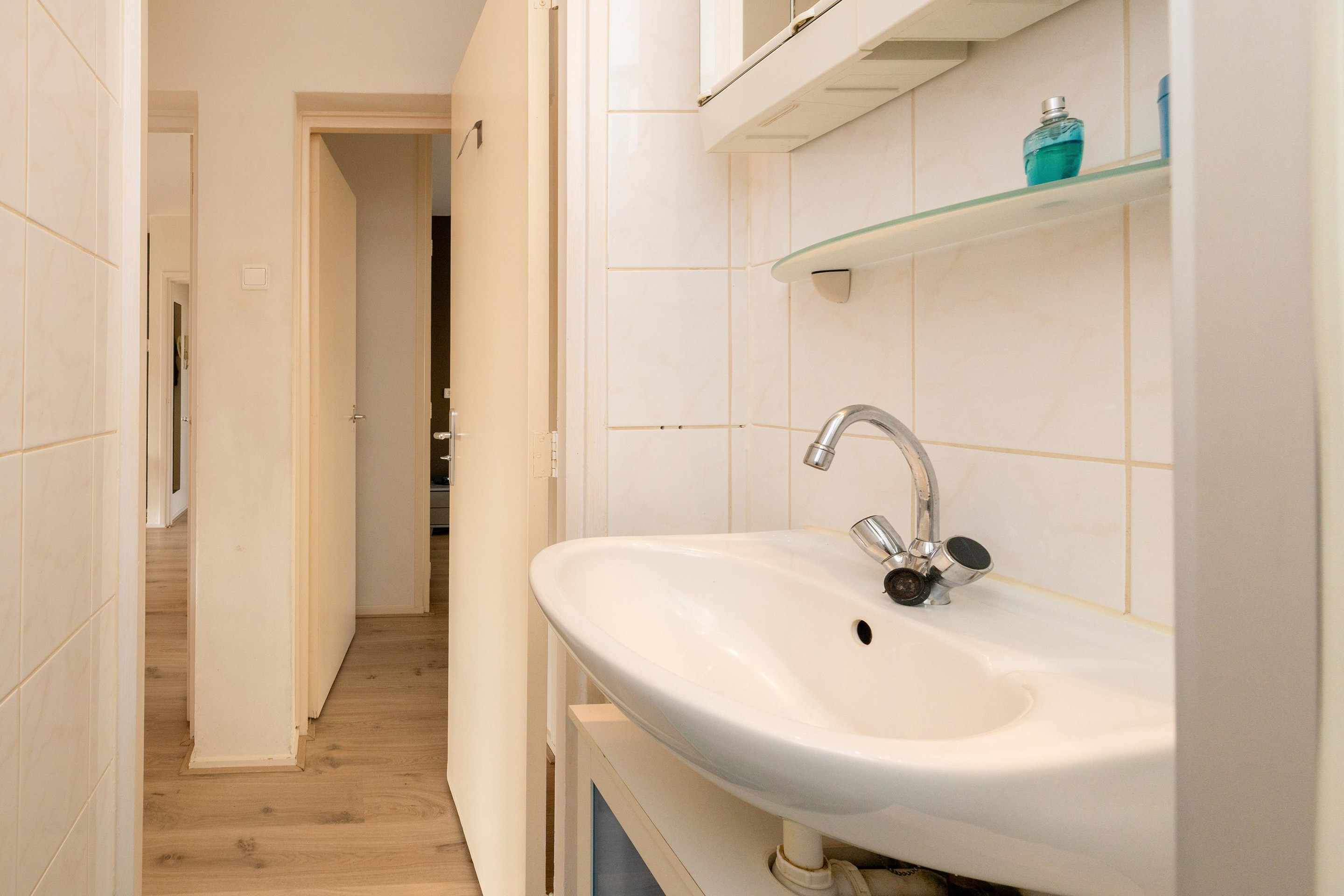 De badkamer is netjes in crème betegeld. Er is een douche, een wastafel met onderkastjes, een planchet en bovenkastjes met spiegel. De separate toiletruimte is eveneens keurig en heeft een wandcloset en een kleine wastafel met kraan. Beneden op de begane grond is nog een beveiligde berging. Ideaal voor de fiets, de stoelkussens of je hobbyspullen. Dit appartement vinden wij over de gehele lijn netjes en met zorg onderhouden. Heb je al een idee waar je bank komt te staan en waar je een werkplek wilt creëren? Neem dan contact met ons op en vraag een bezichtiging aan. We staan voor u klaar.