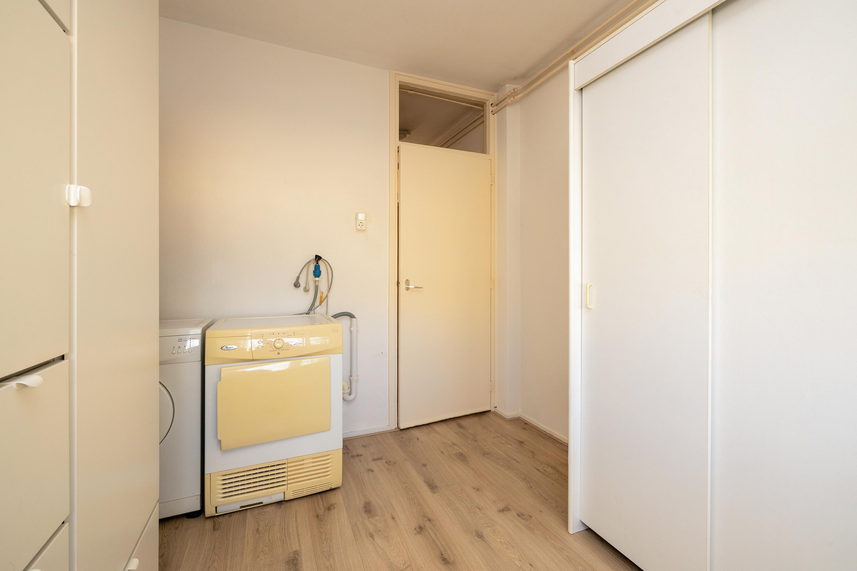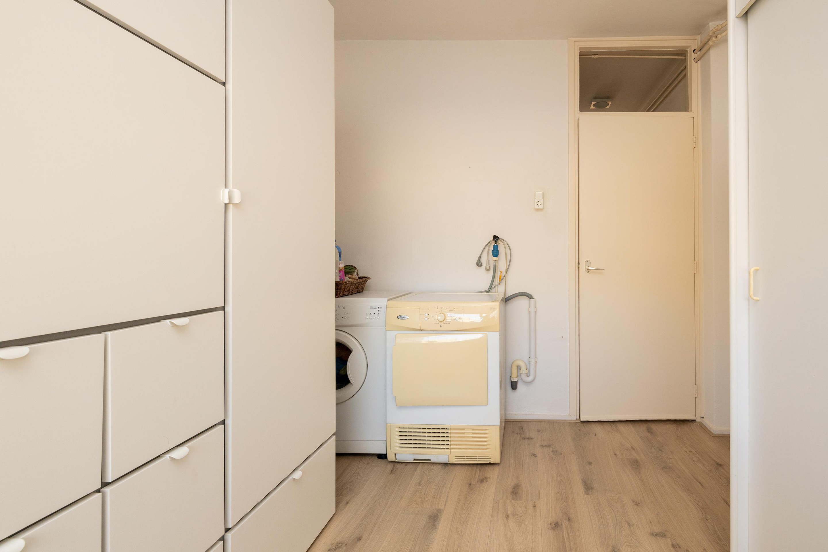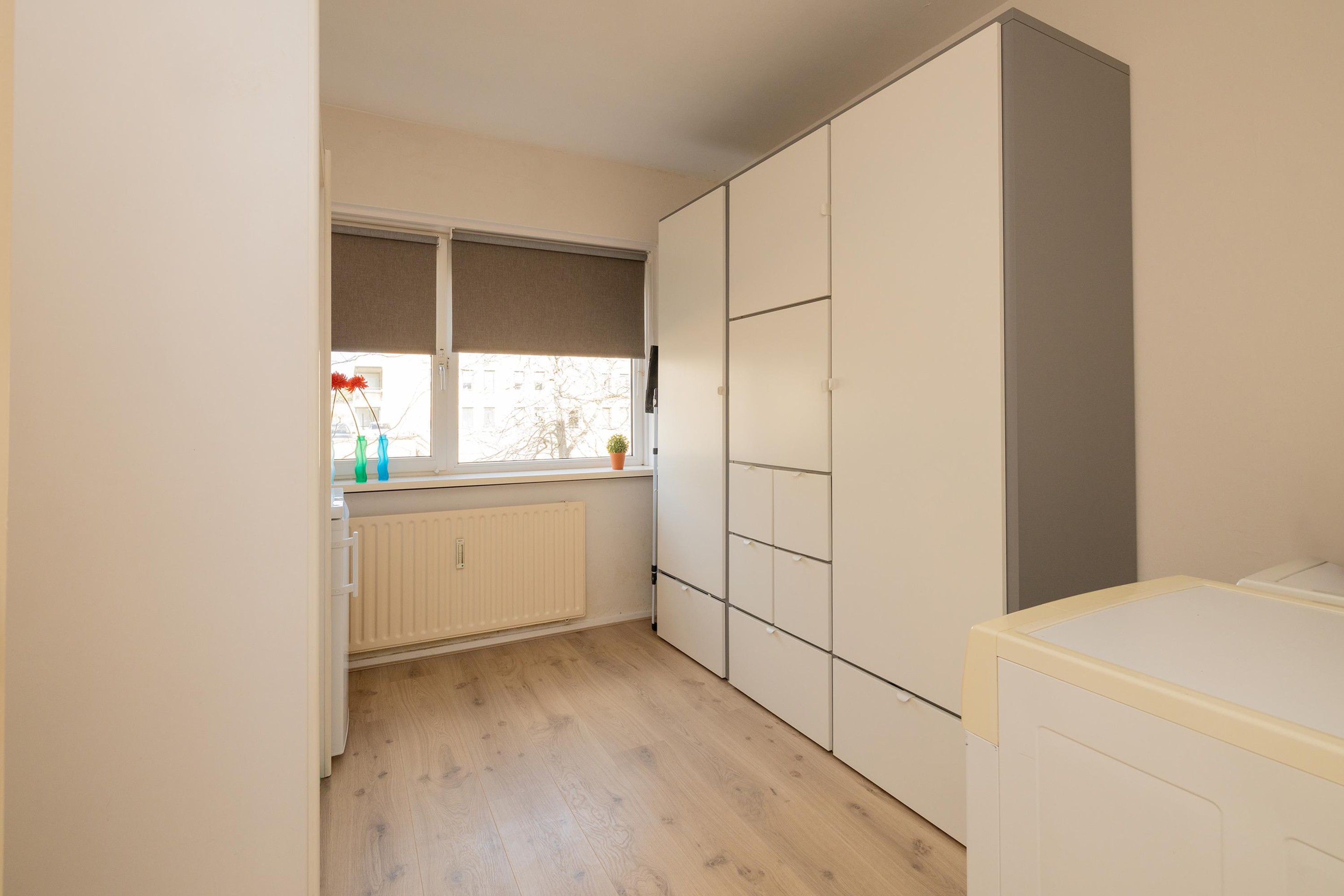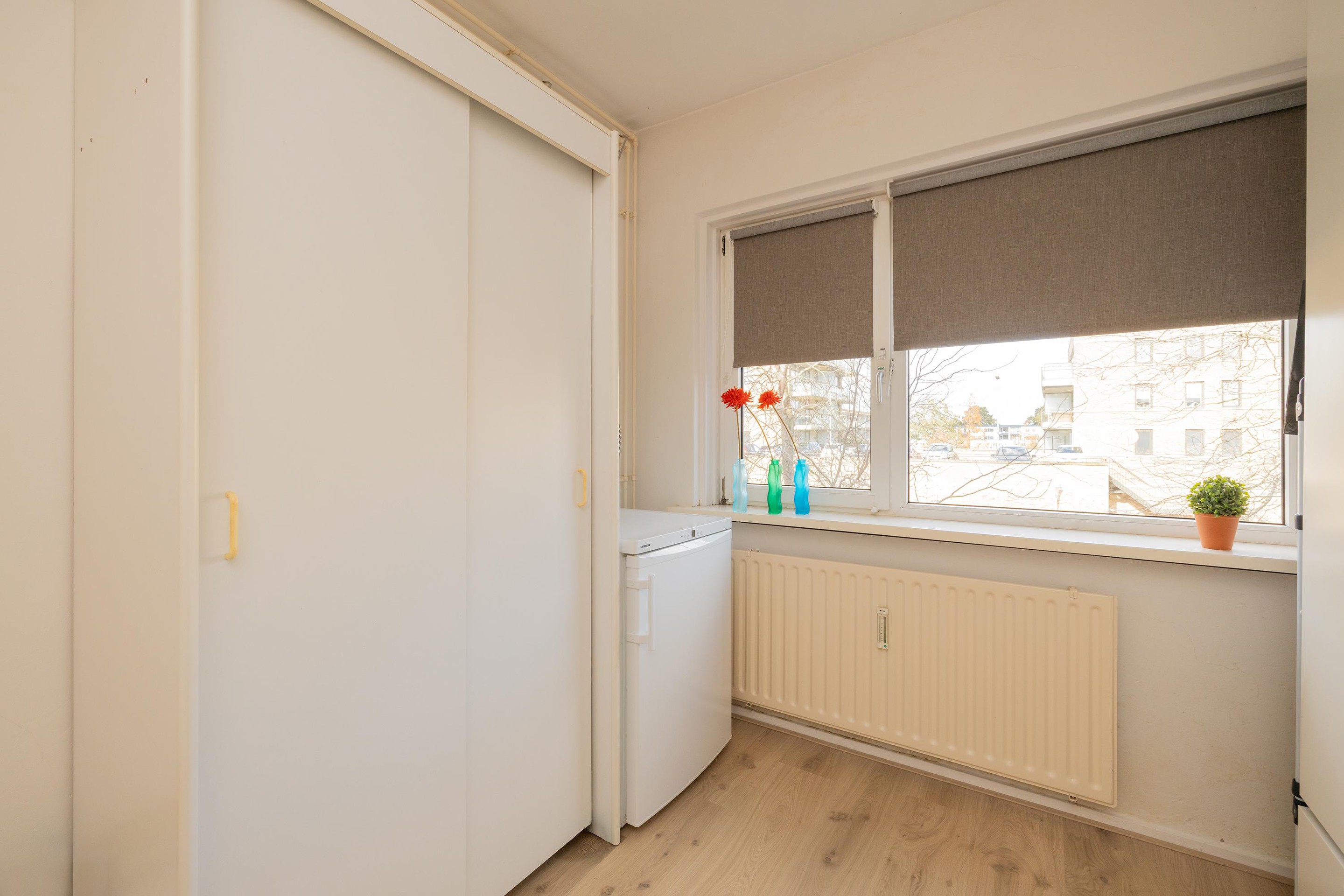 De badkamer is netjes in crème betegeld. Er is een douche, een wastafel met onderkastjes, een planchet en bovenkastjes met spiegel. De separate toiletruimte is eveneens keurig en heeft een wandcloset en een kleine wastafel met kraan. Beneden op de begane grond is nog een beveiligde berging. Ideaal voor de fiets, de stoelkussens of je hobbyspullen. Dit appartement vinden wij over de gehele lijn netjes en met zorg onderhouden. Heb je al een idee waar je bank komt te staan en waar je een werkplek wilt creëren? Neem dan contact met ons op en vraag een bezichtiging aan. We staan voor u klaar.