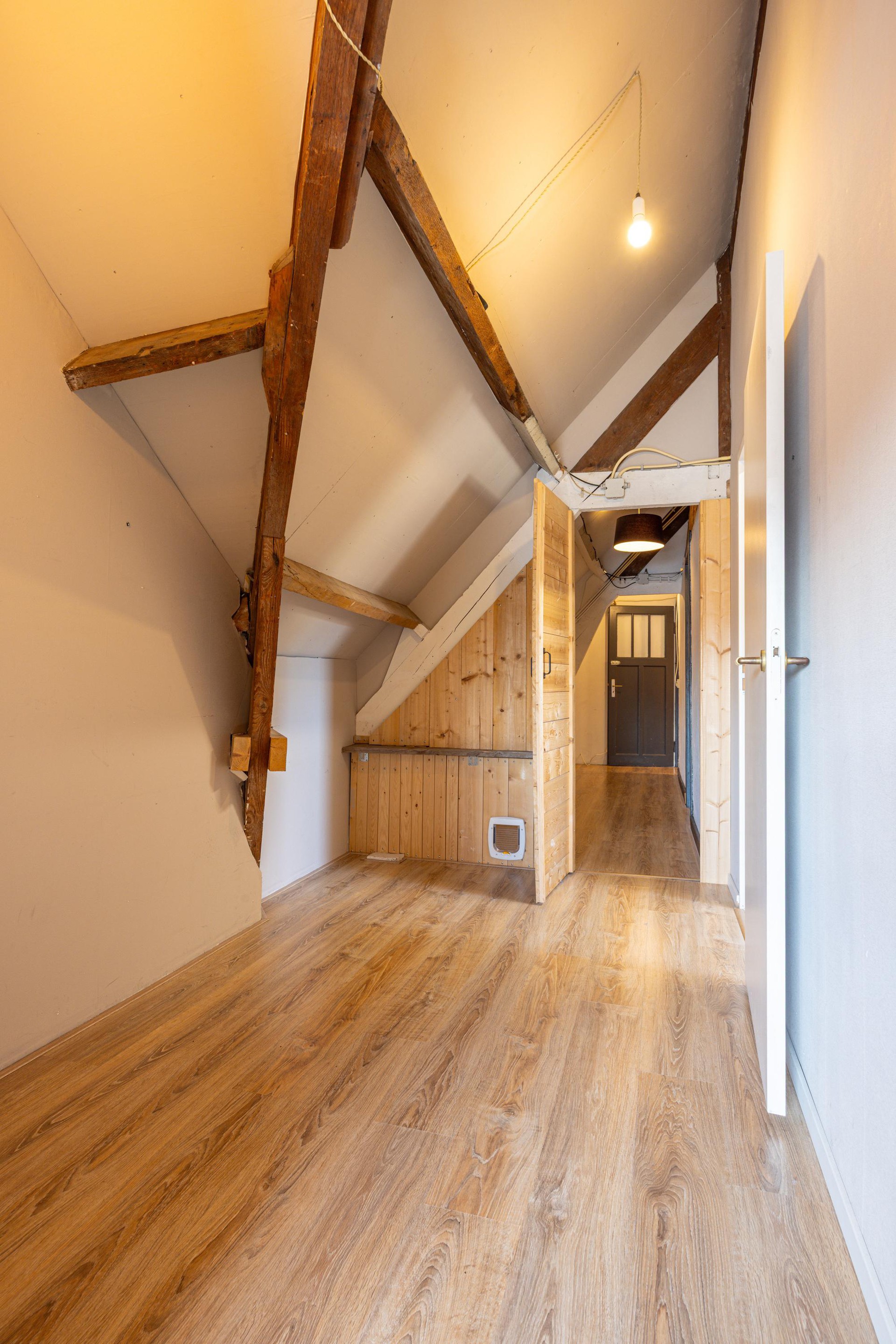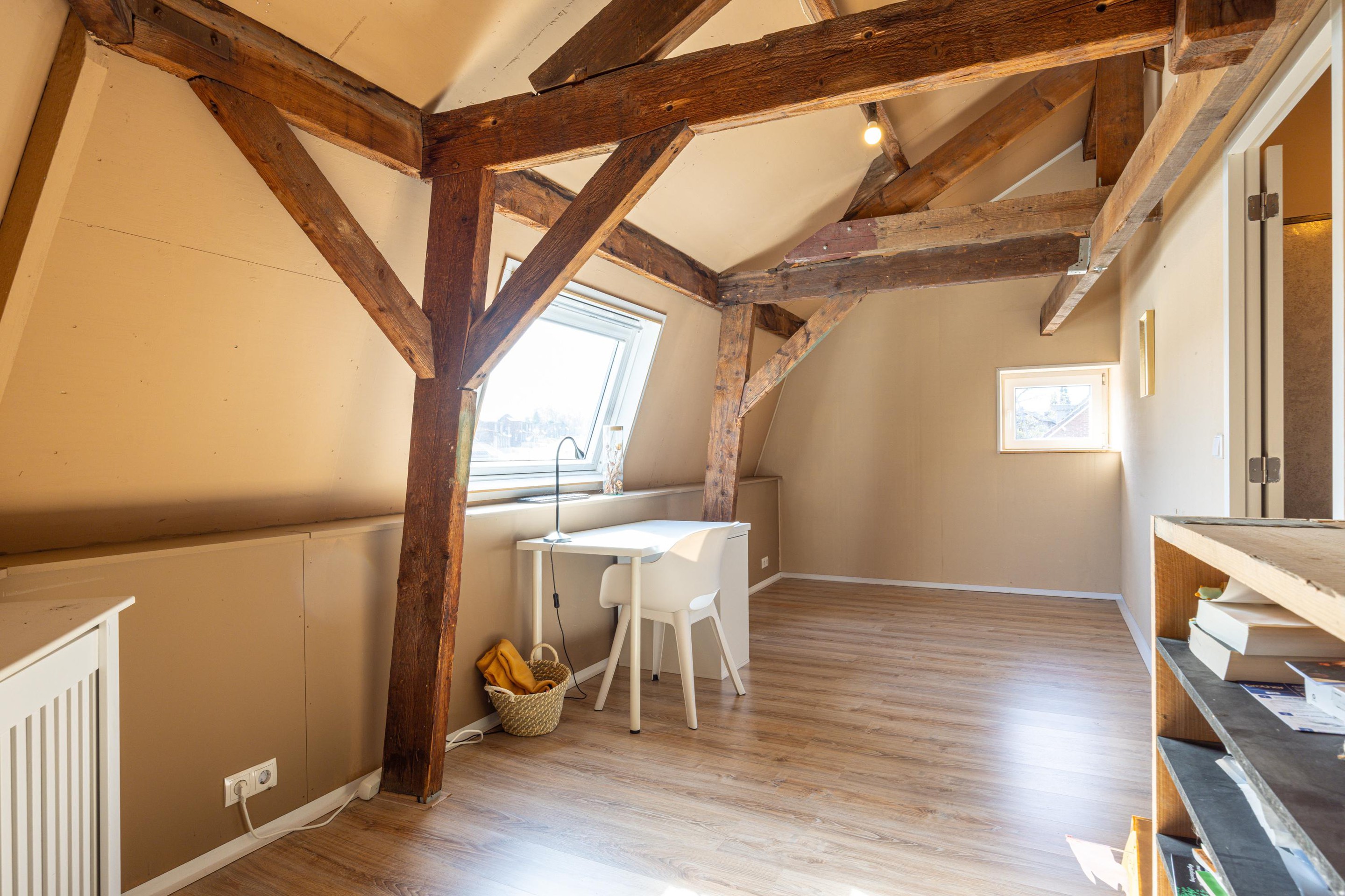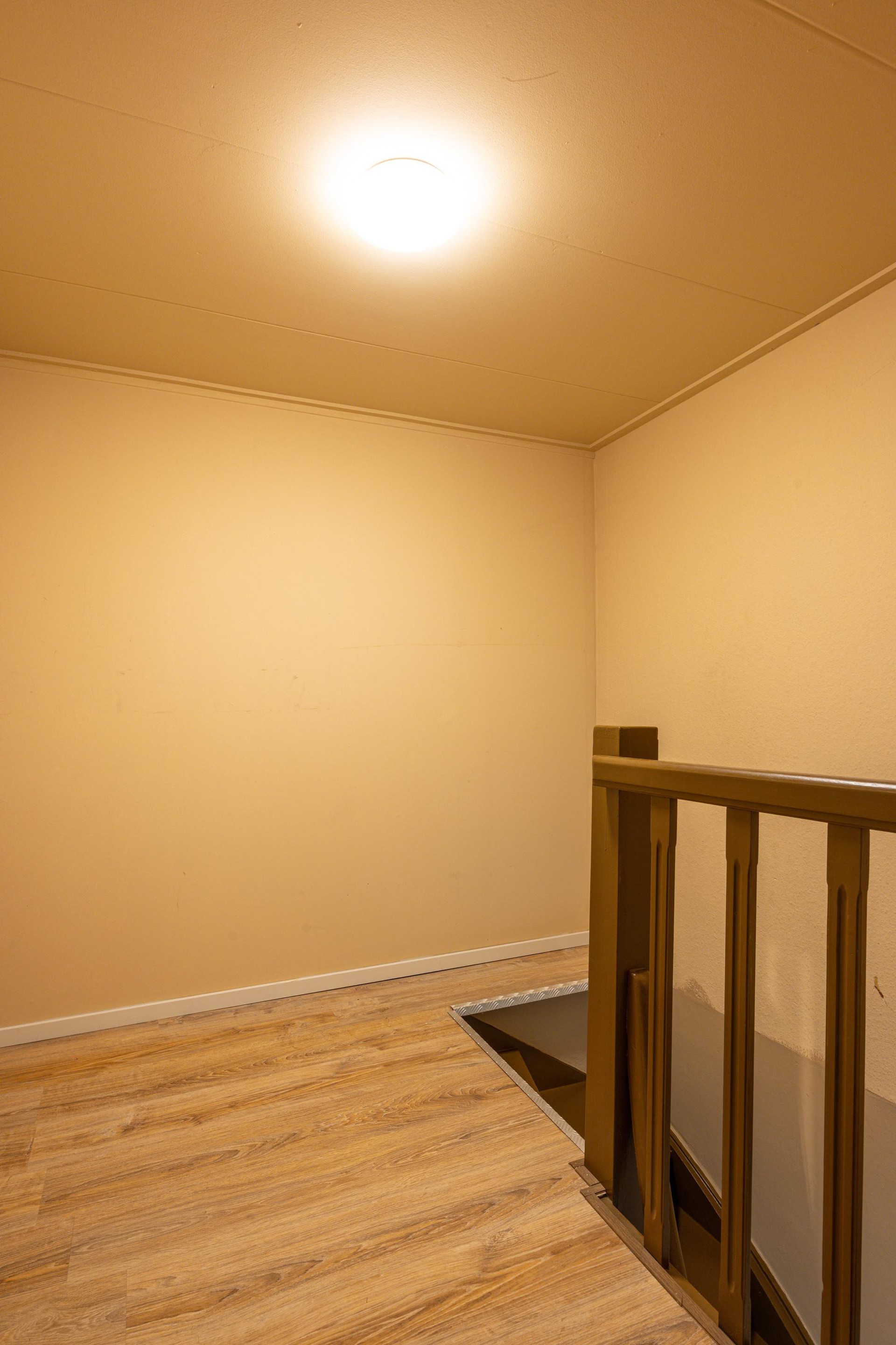 Tweede verdieping Via een houten trap bereik je de tweede verdieping. De overloop vormt een centrale verbinding en geeft toegang tot twee slaapkamers, een separate opslagruimte en de technische ruimte.