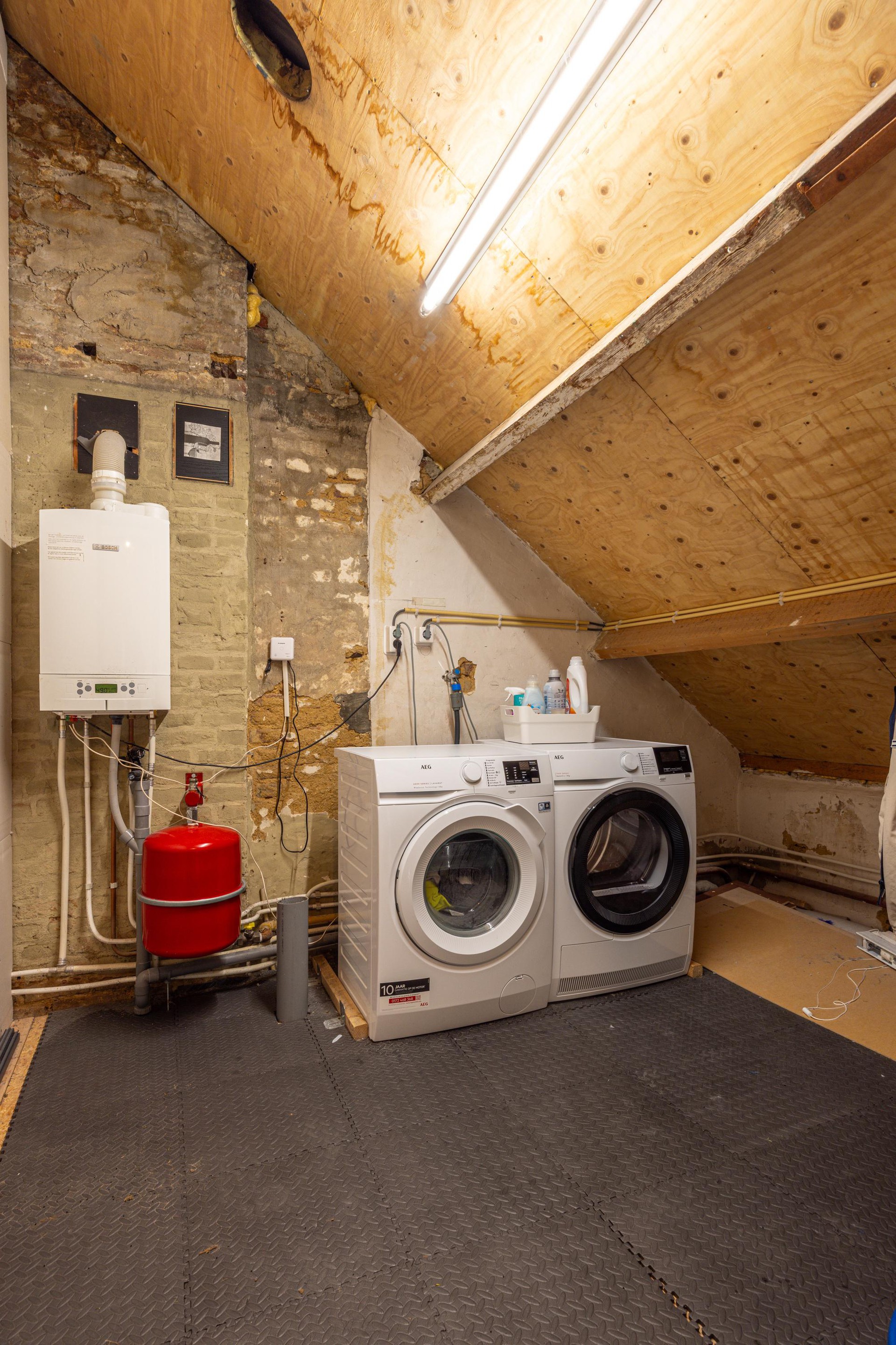 Technische ruimte met cv en witgoedaansluitingen
