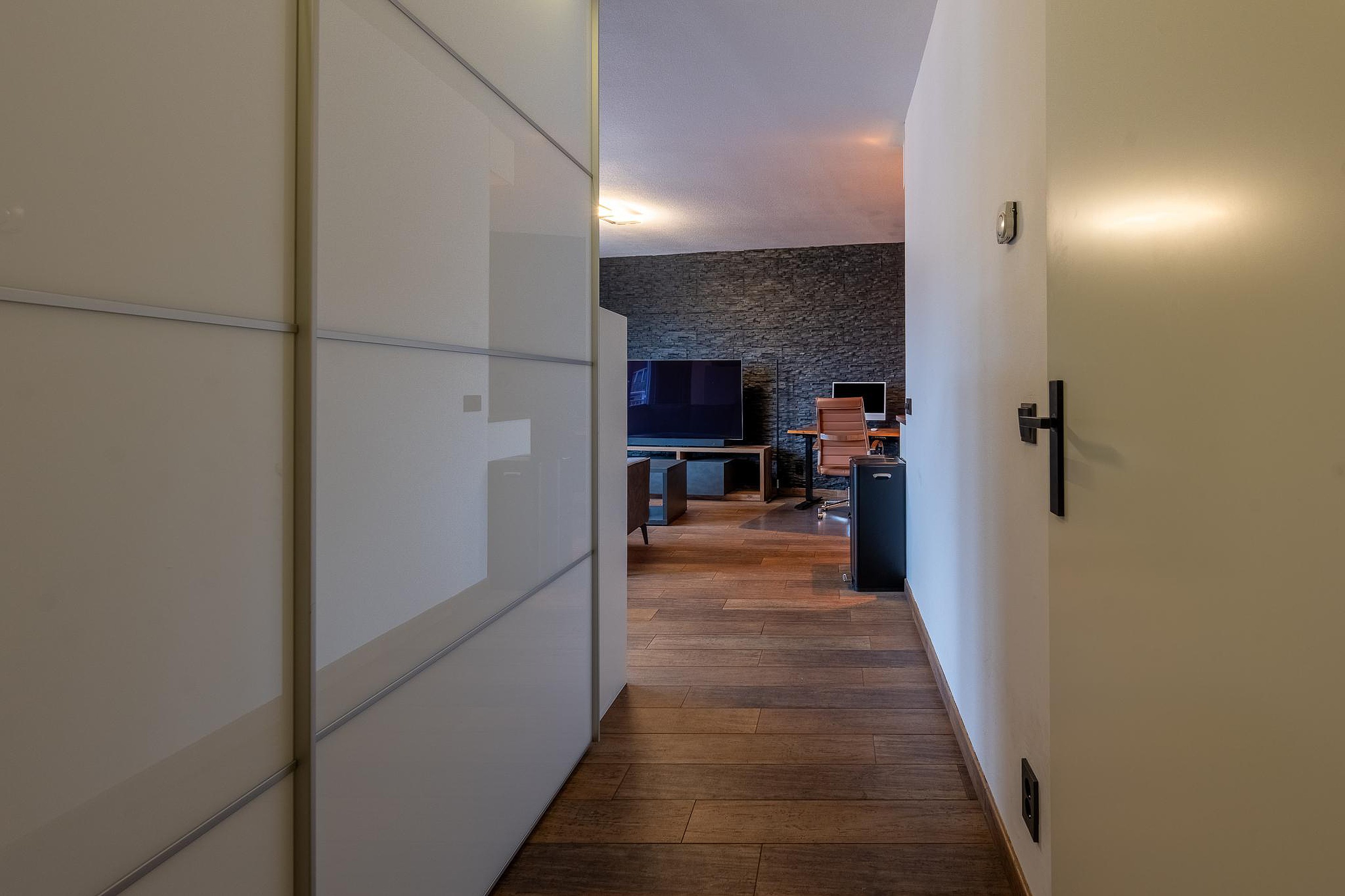 Via de lift of trap bereik je de verzorgde corridor en de entree van het appartement.