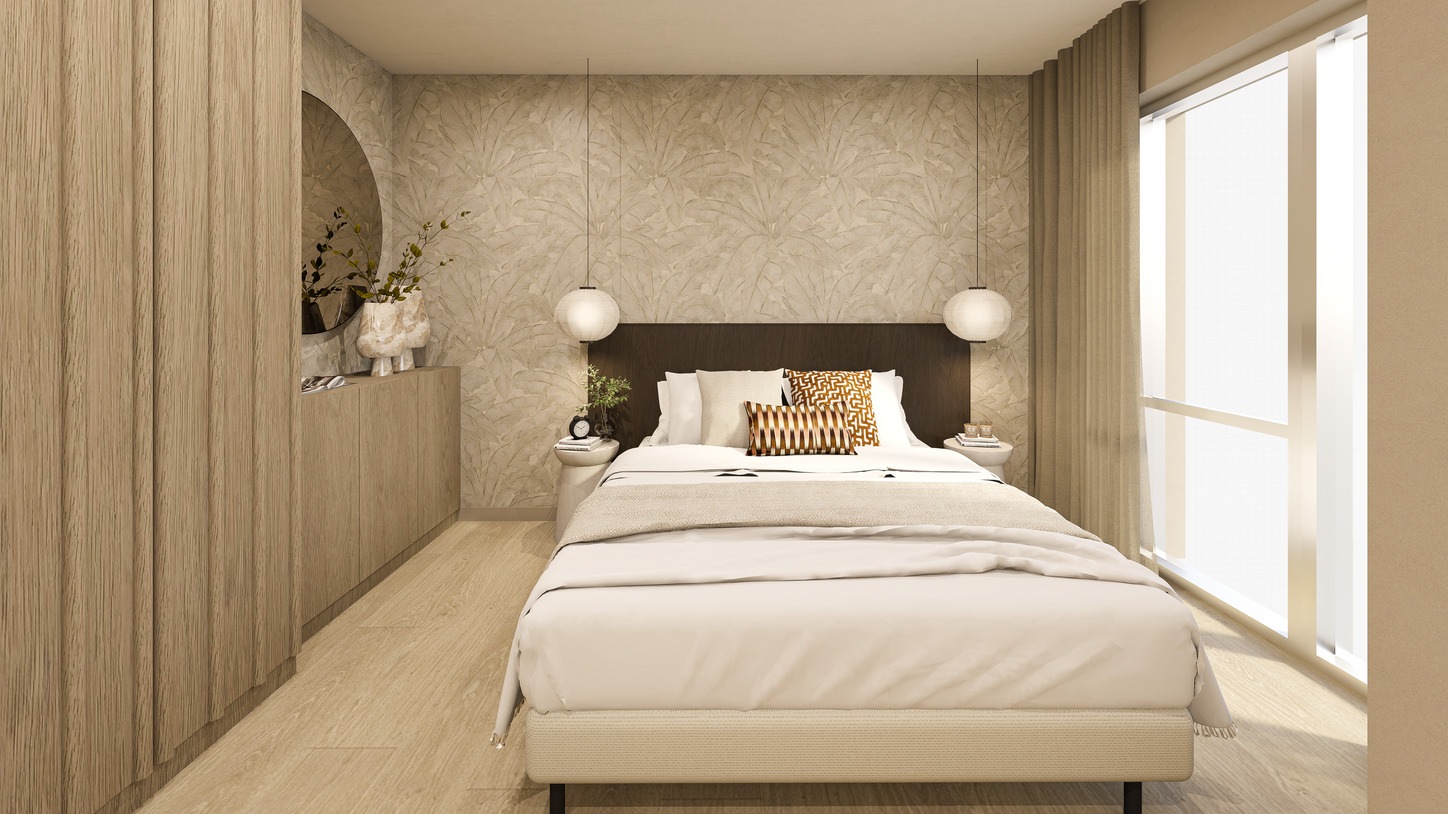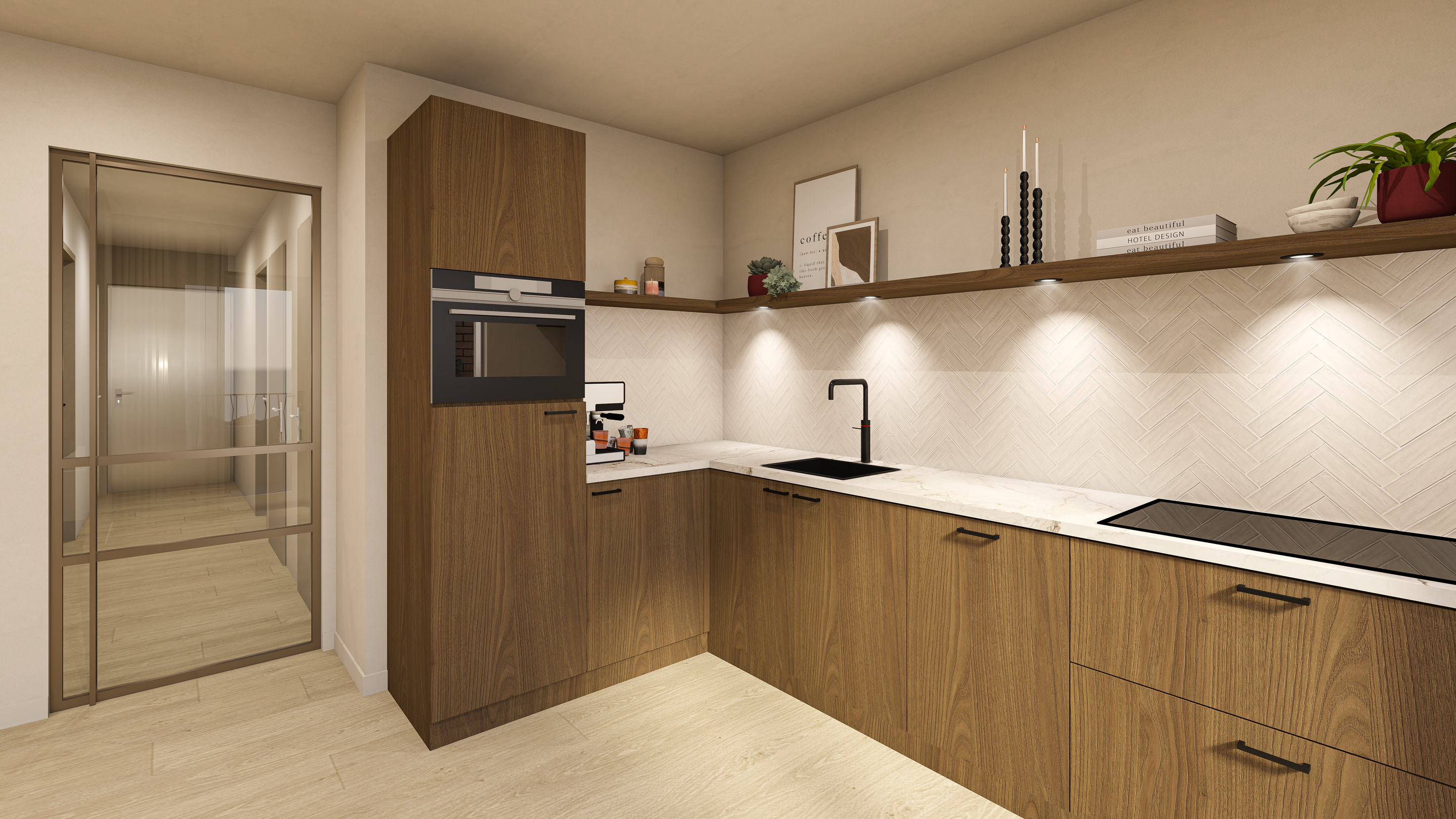 Dezelfde fijne indeling met twee slaapkamers, aangevuld met een balkon aan de