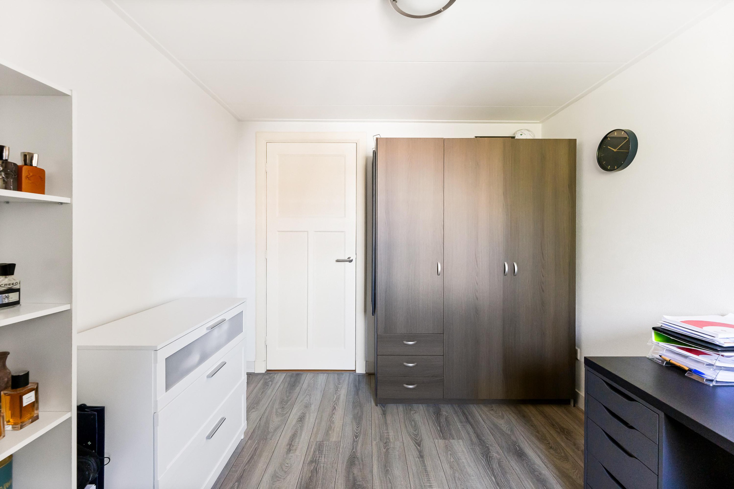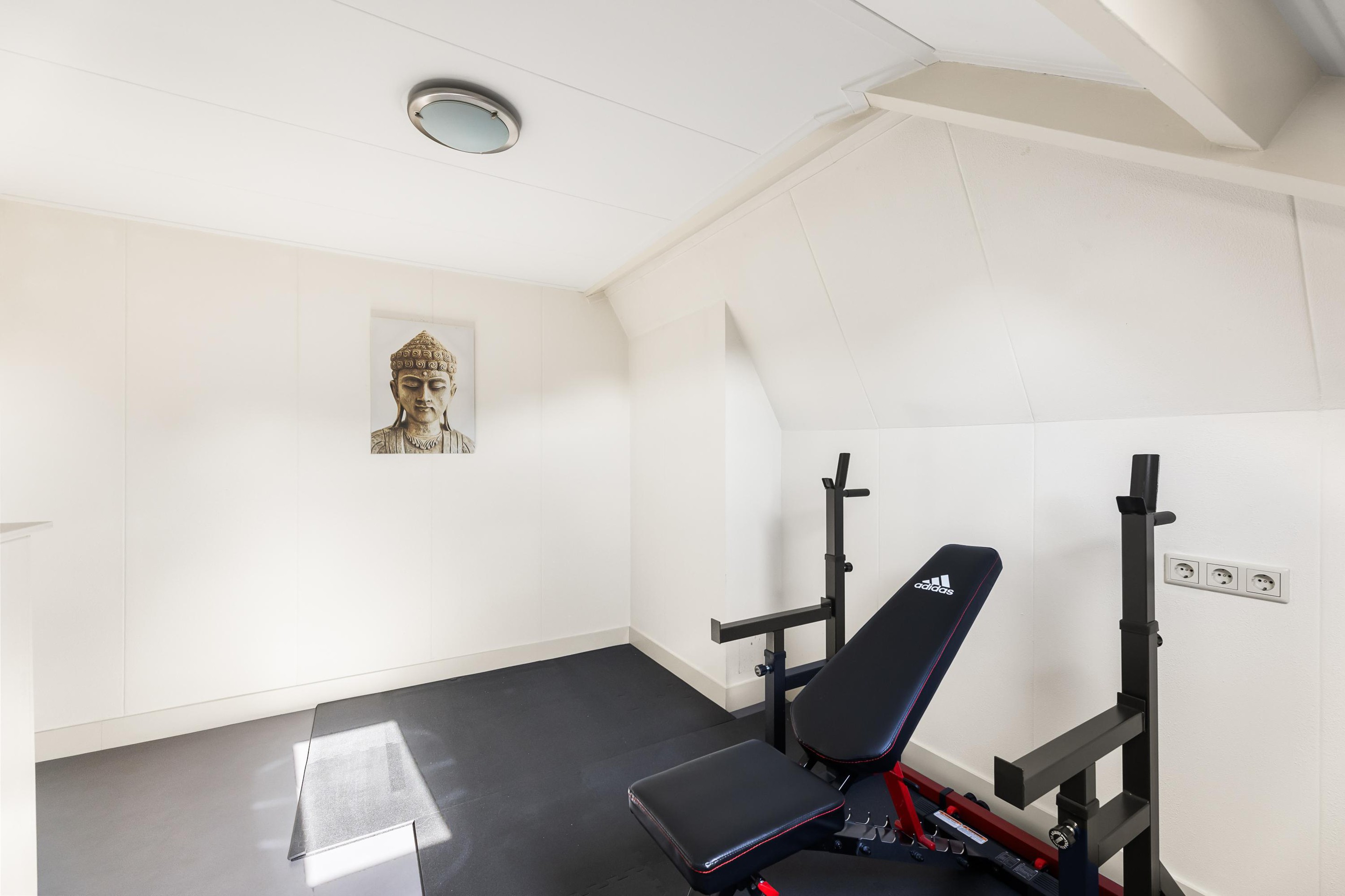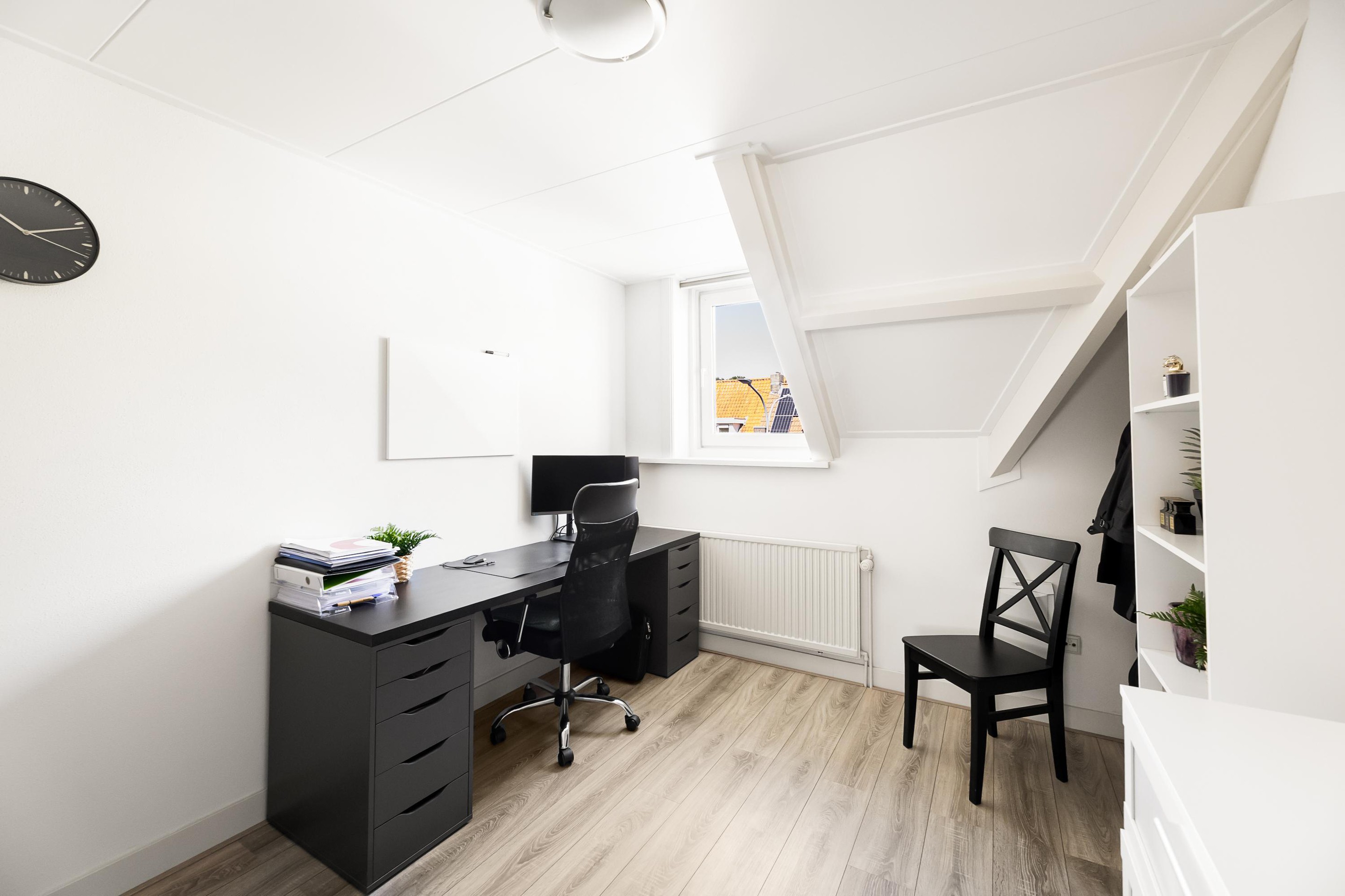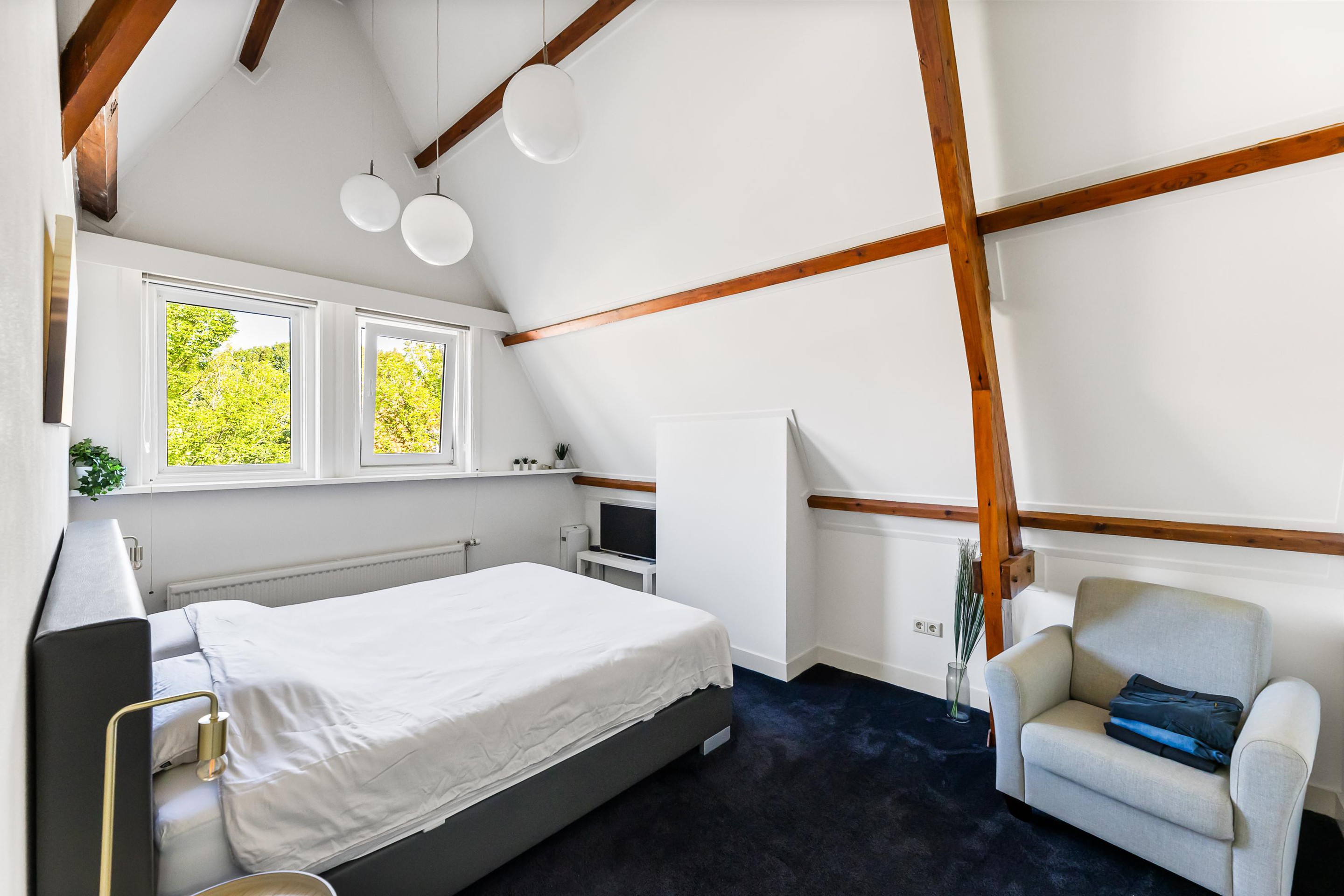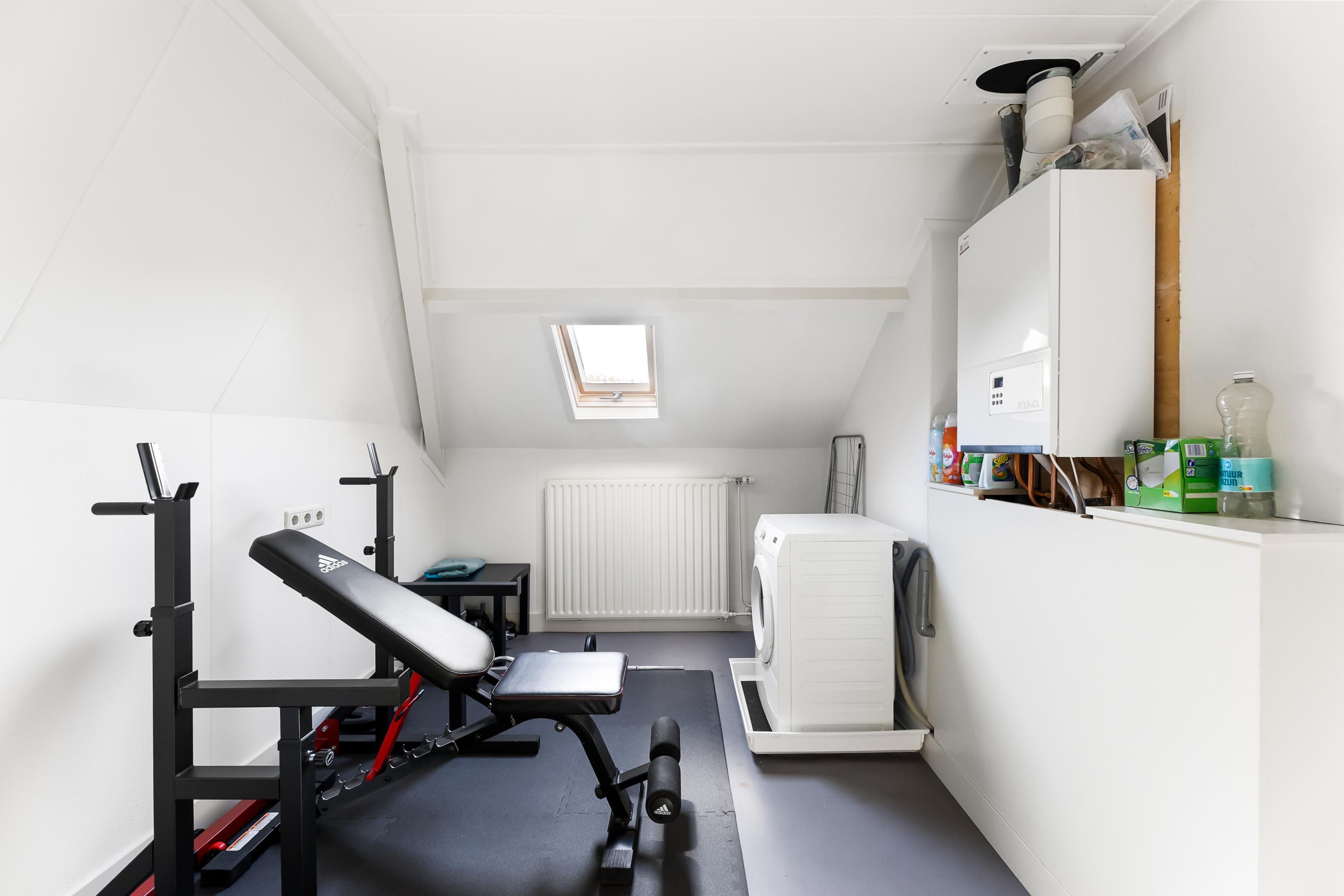 Overloop, toiletruimte en werk/hobbykamer. Royale woonkamer met erker, gezellige sfeerhaard en veel lichtinval door de grote raampartijen. De keuken is luxe afgewerkt en voorzien van vaatwasser, koel/vries combi, combimagnetron en inductiekookplaat. Vanuit de keuken loopt u zo het royale zonnige dakterras (zuidoosten) op.