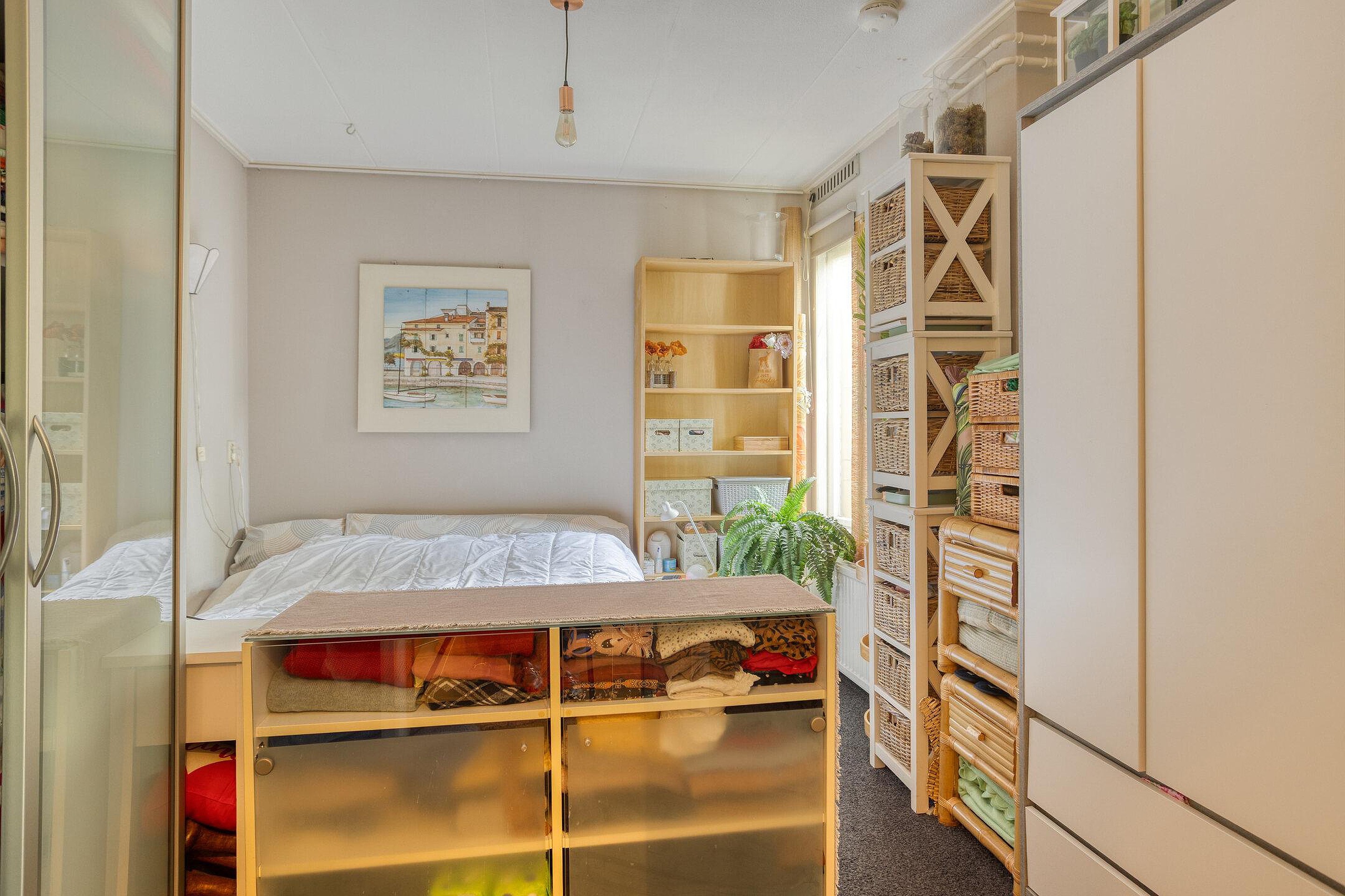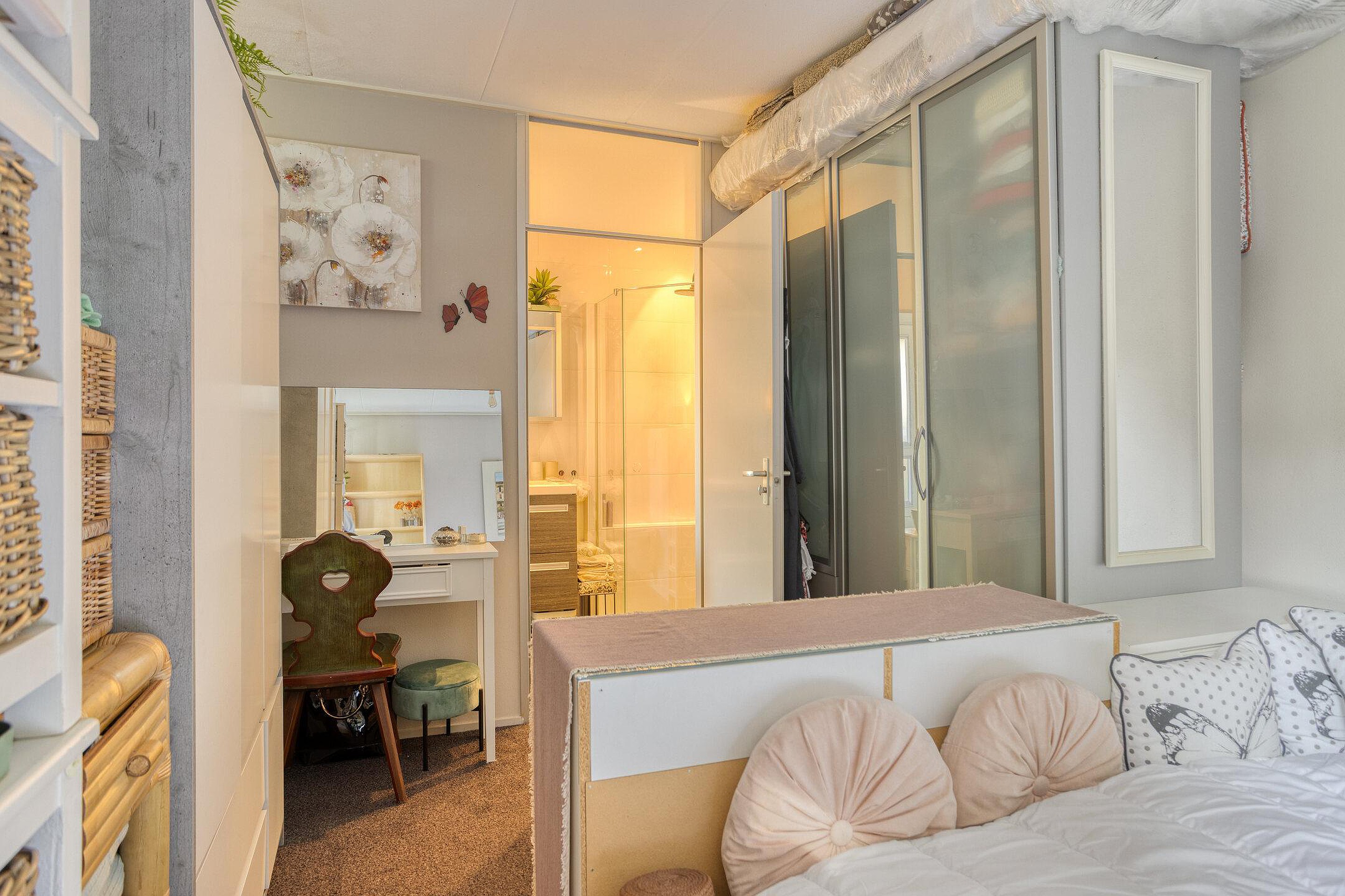 De slaapkamer is fijn van afmeting waar een 2-persoons bed goed past en er is voldoende ruimte voor kledingkasten.