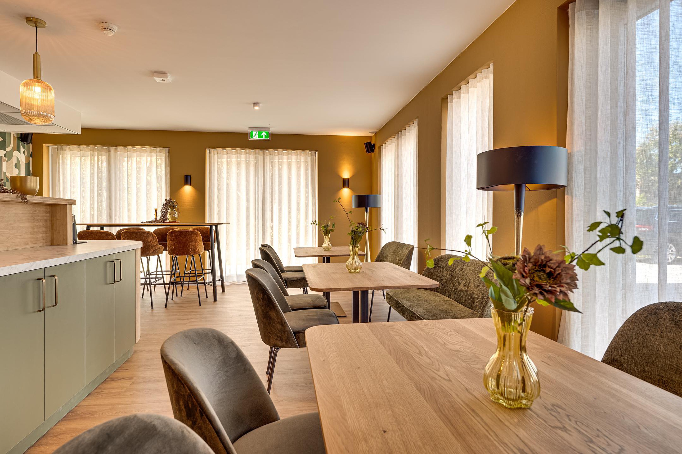 Het hotel heeft een receptie en een ontbijtzaal/loungeruimte. Er komt geen restaurant functie. In de directe omgeving van het hotel zijn namelijk diverse restaurants te vinden waar u terecht kan voor een uitgebreide lunch of diner. Bovendien zijn de basisvoorzieningen in elke accommodatie aanwezig.