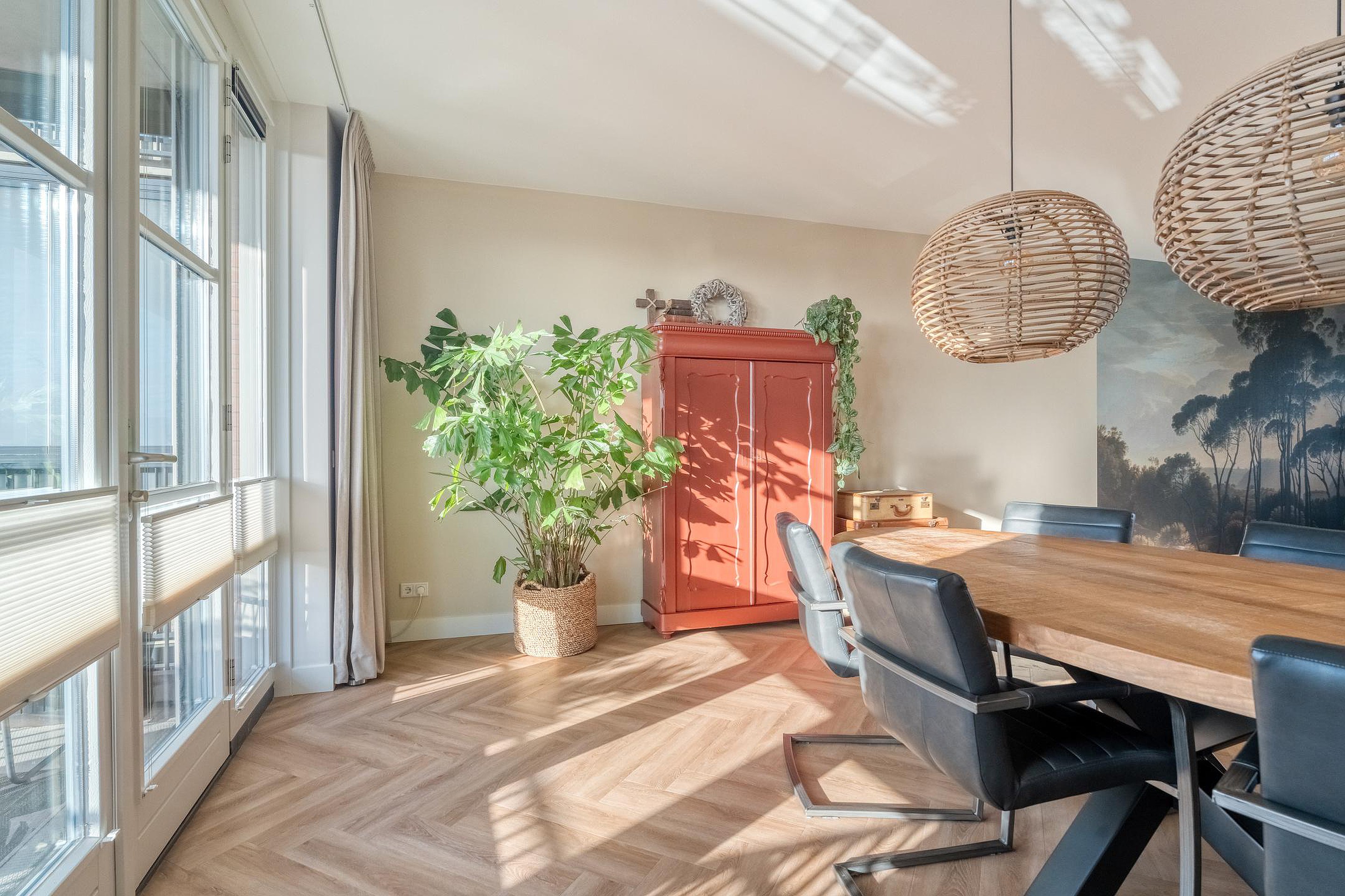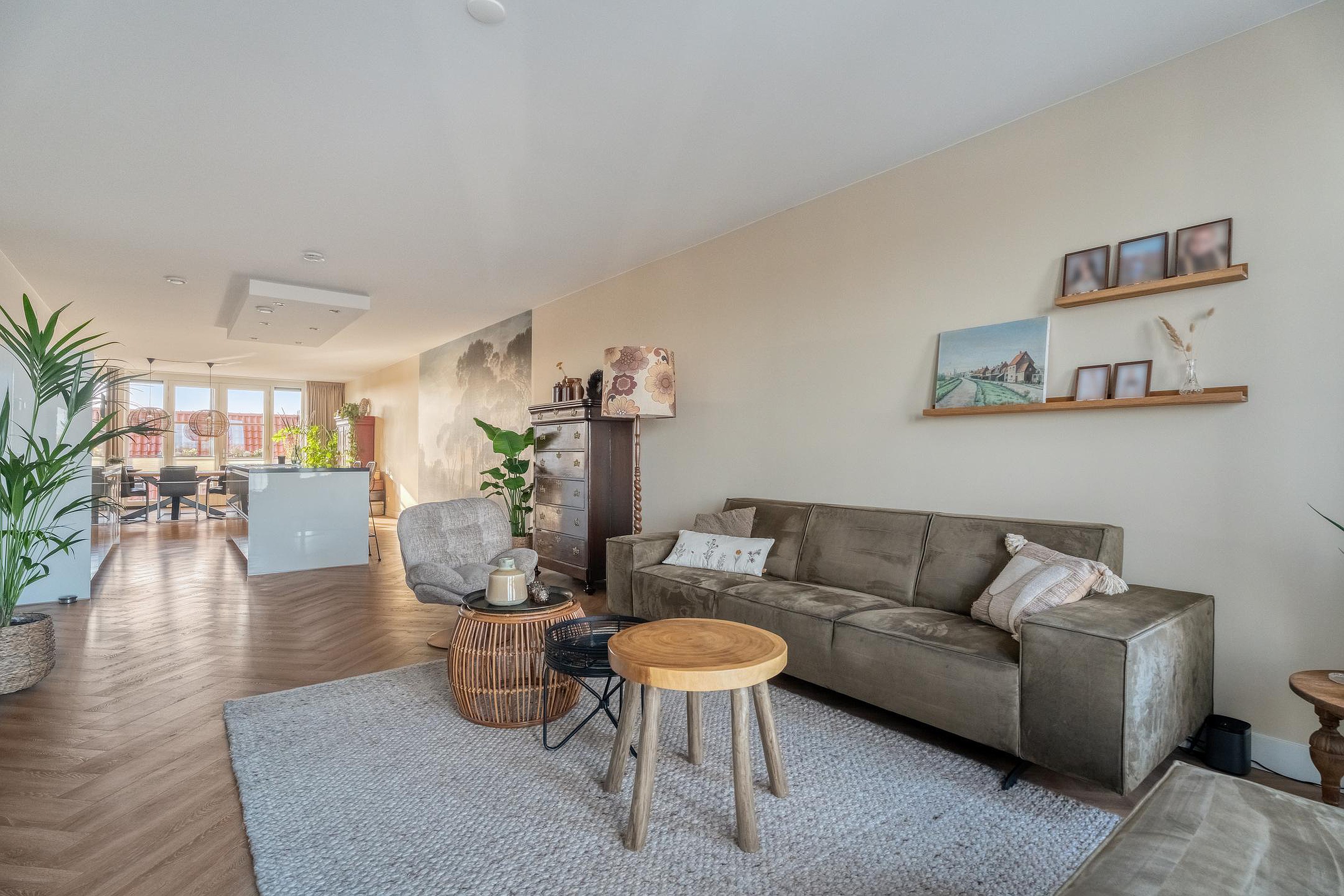 Op de tweede etage van de Zuiderzeeboulevard 72 ontvouwt zich een appartement waar licht, ruimte en uitzicht perfect samenkomen. Met een lengte van ruim zestien meter voelt deze woning uitzonderlijk royaal aan, waarbij de woonruimte zich uitstrekt van balkon tot balkon.