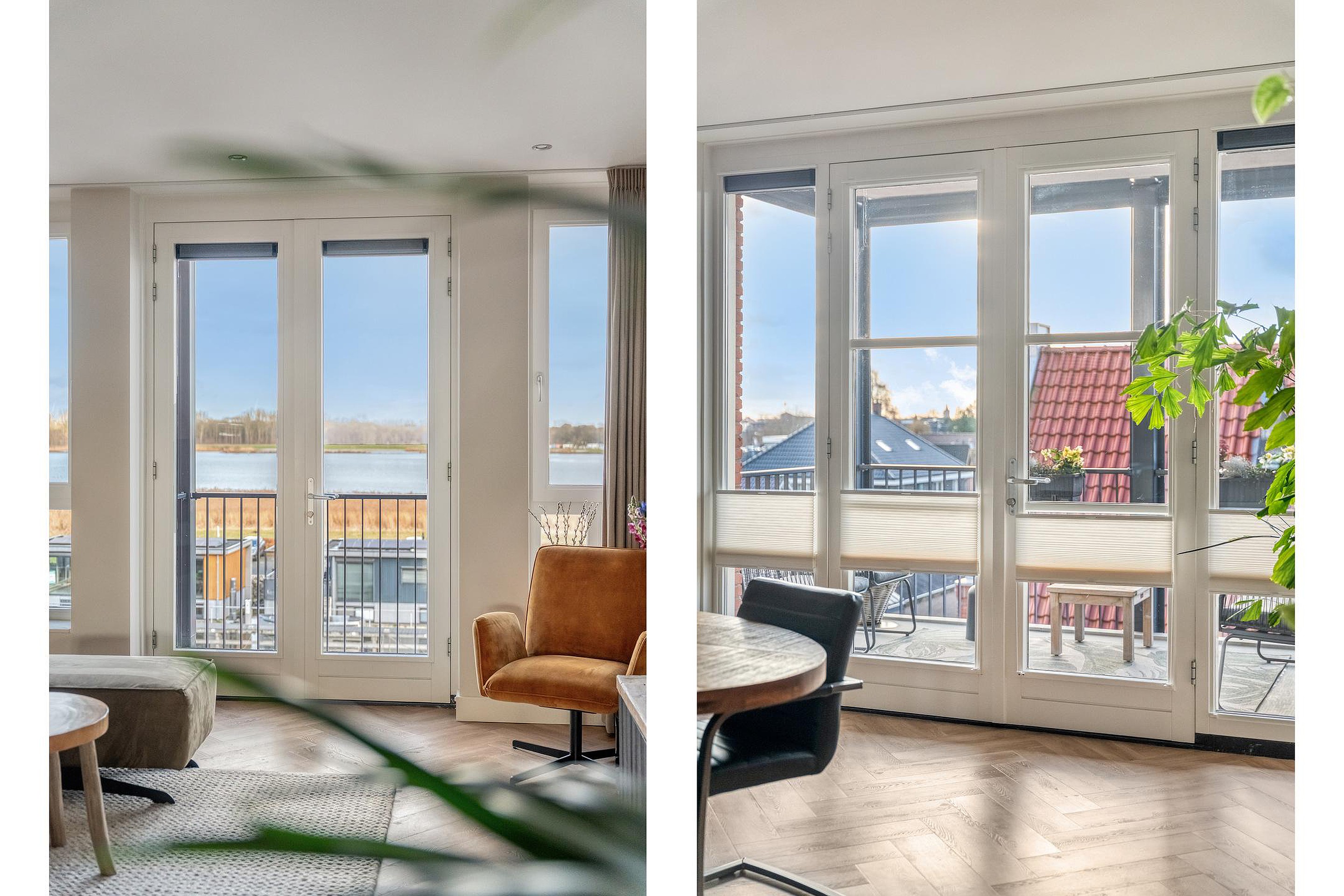 Aan de ene zijde kijk je vrij uit over het Eemmeer, een panorama dat elk moment van de dag anders is en altijd blijft boeien. Aan de andere kant ligt het zonnige balkon op het zuiden, een plek waar je tot in de avond heerlijk buiten zit. Het beste van twee werelden, gevangen in één woning.