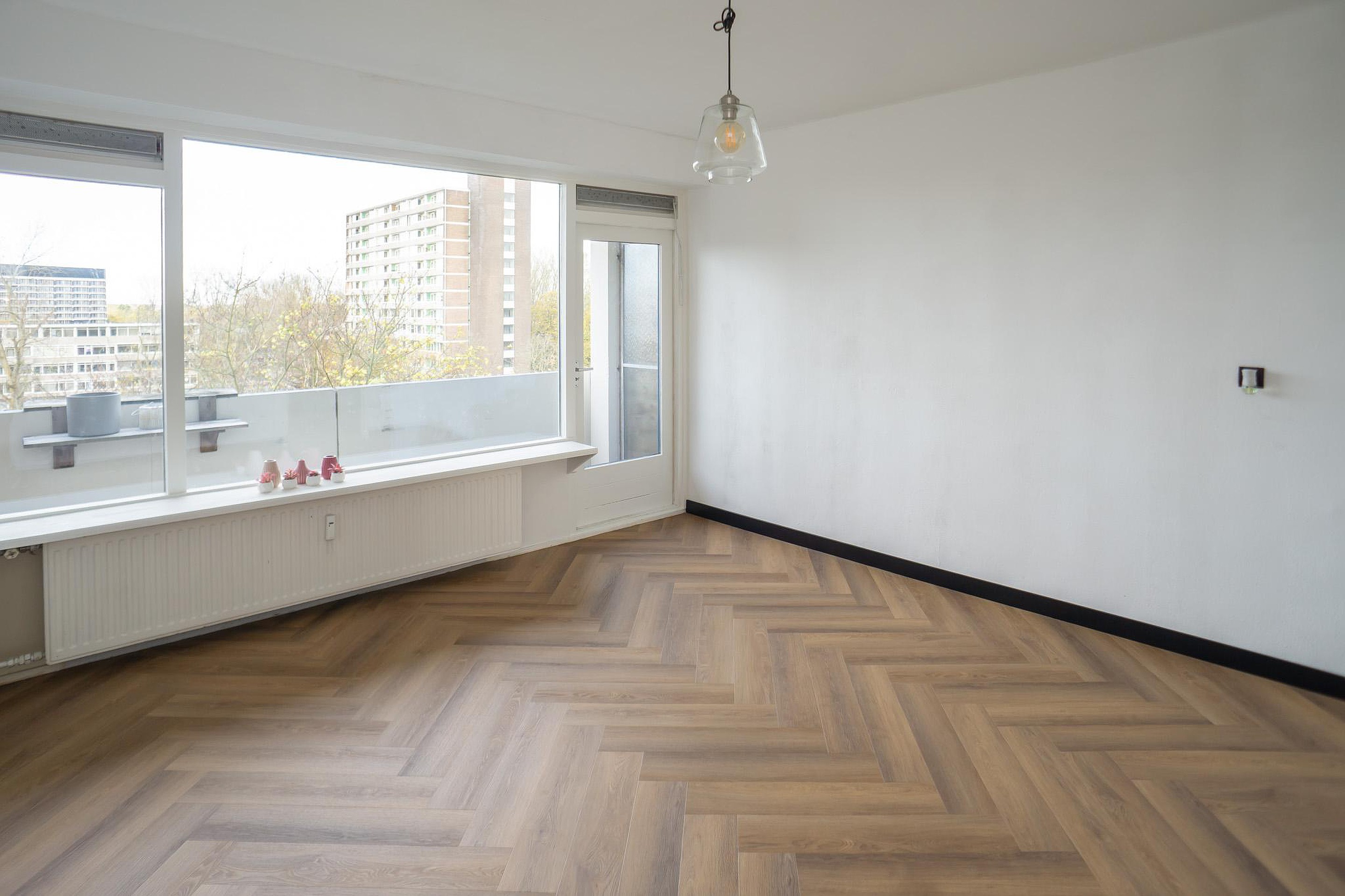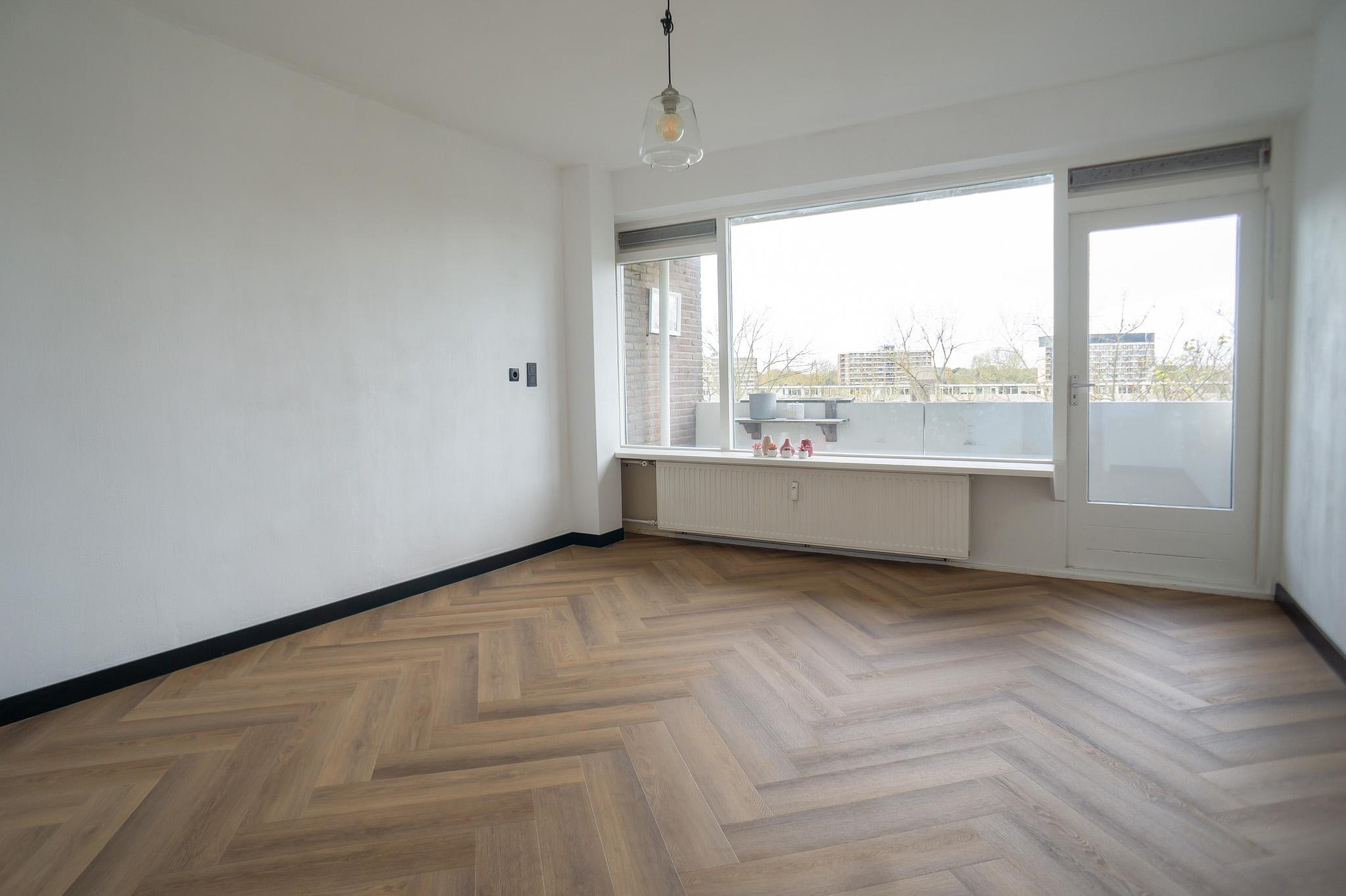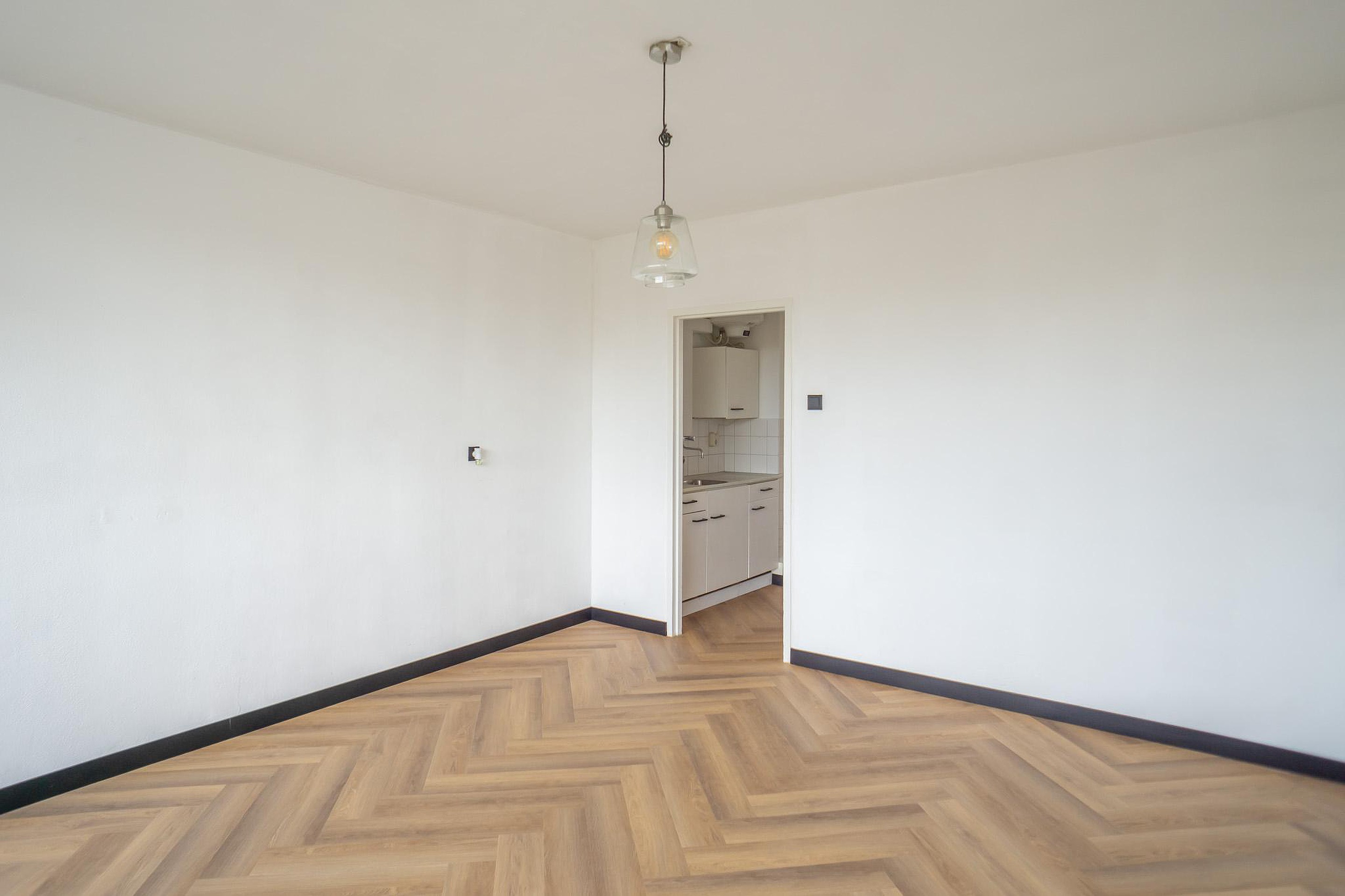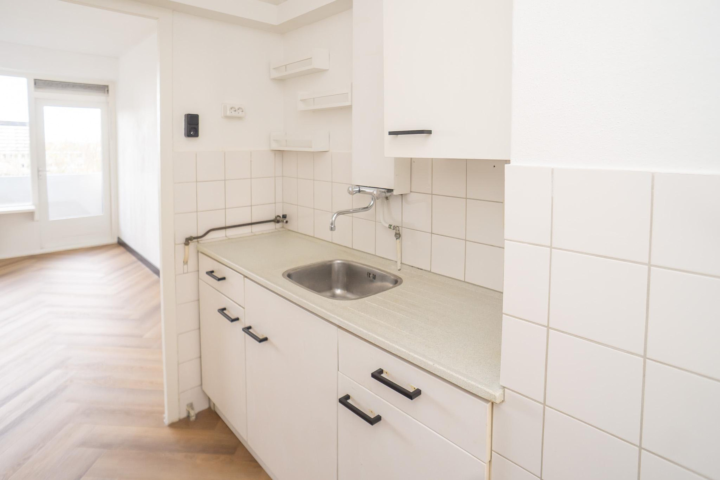 Zesde verdieping: entree met hal, lichte woonkamer met toegang tot het balkon, een nette keuken, comfortabele slaapkamer en een verzorgde badkamer.