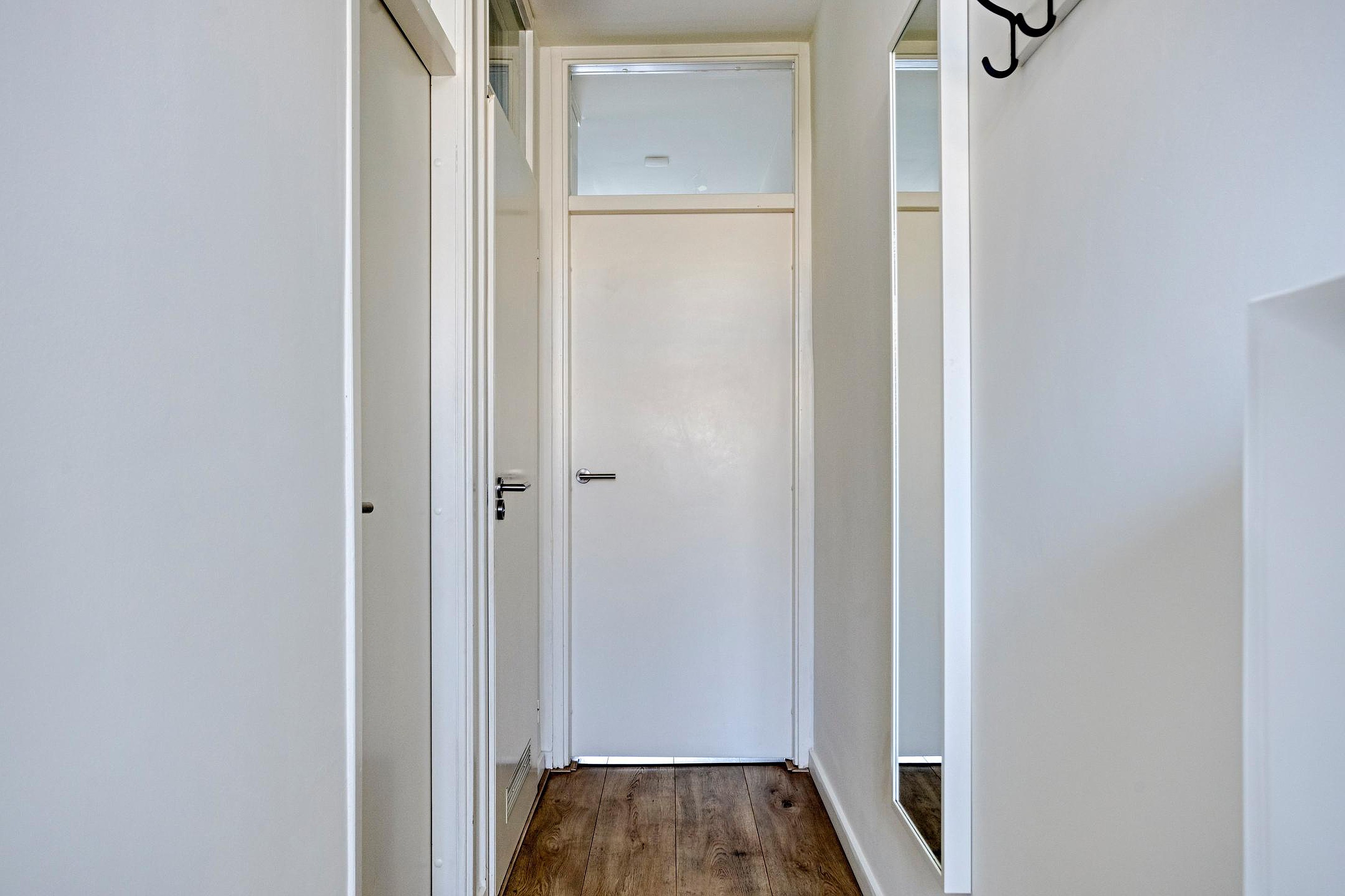 Upon entering the apartment, the hallway provides access to all rooms.
