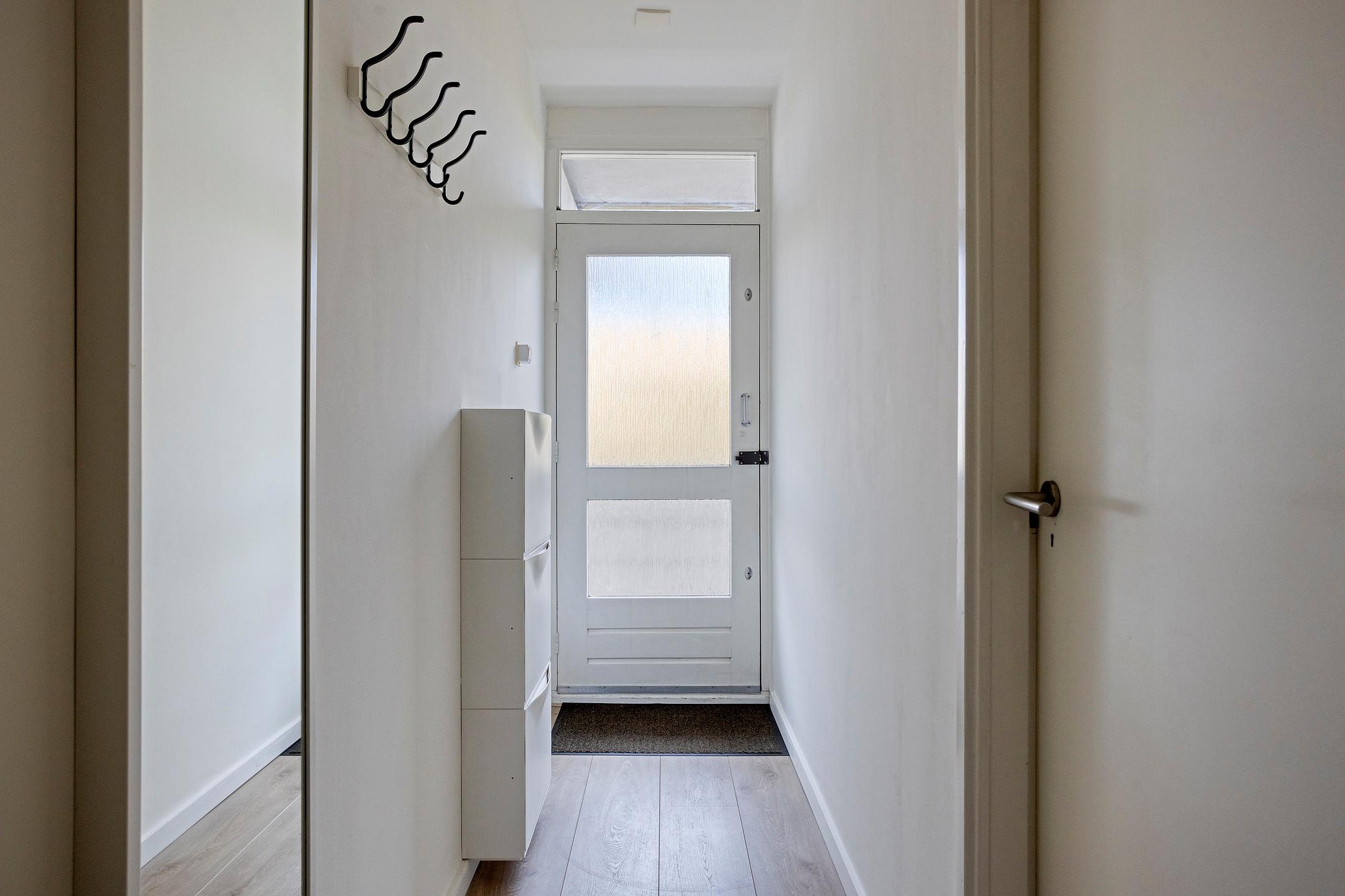 Via de voordeur komt u binnen in de hal, die toegang biedt tot alle vertrekken.
