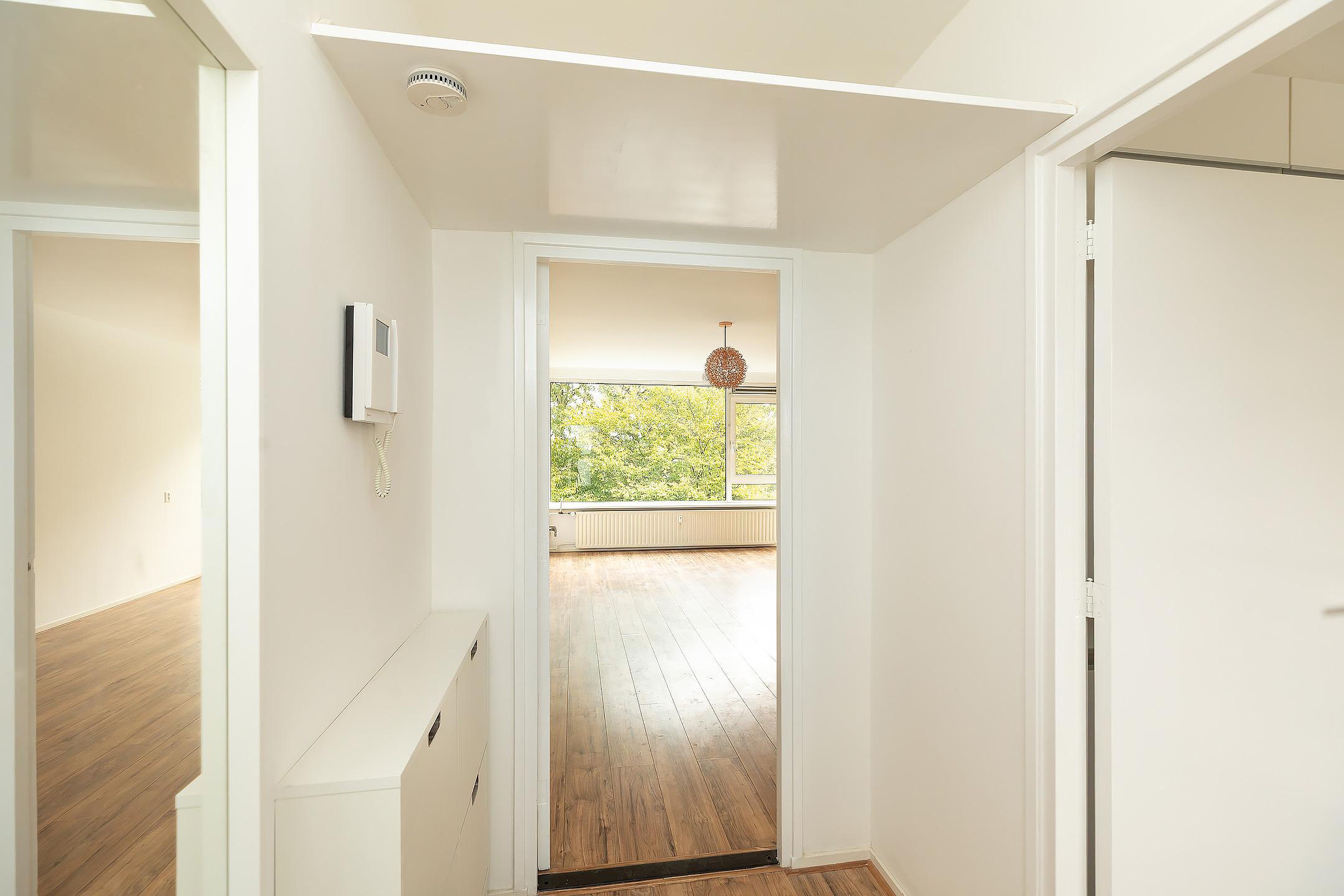 Via de voordeur aan de galerijzijde kom je binnen in een lichte hal die toegang geeft tot alle vertrekken. De hal biedt ruimte voor een garderobe en beschikt over een vaste kast.