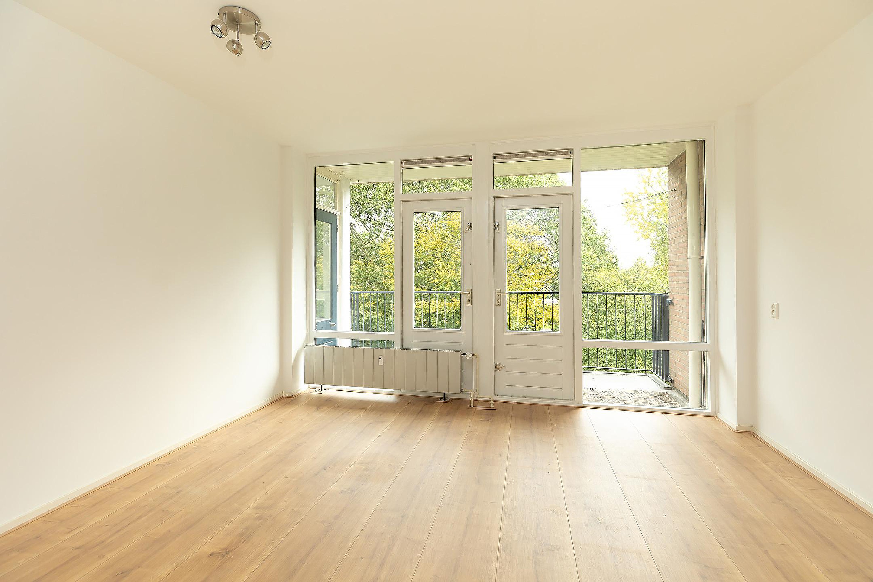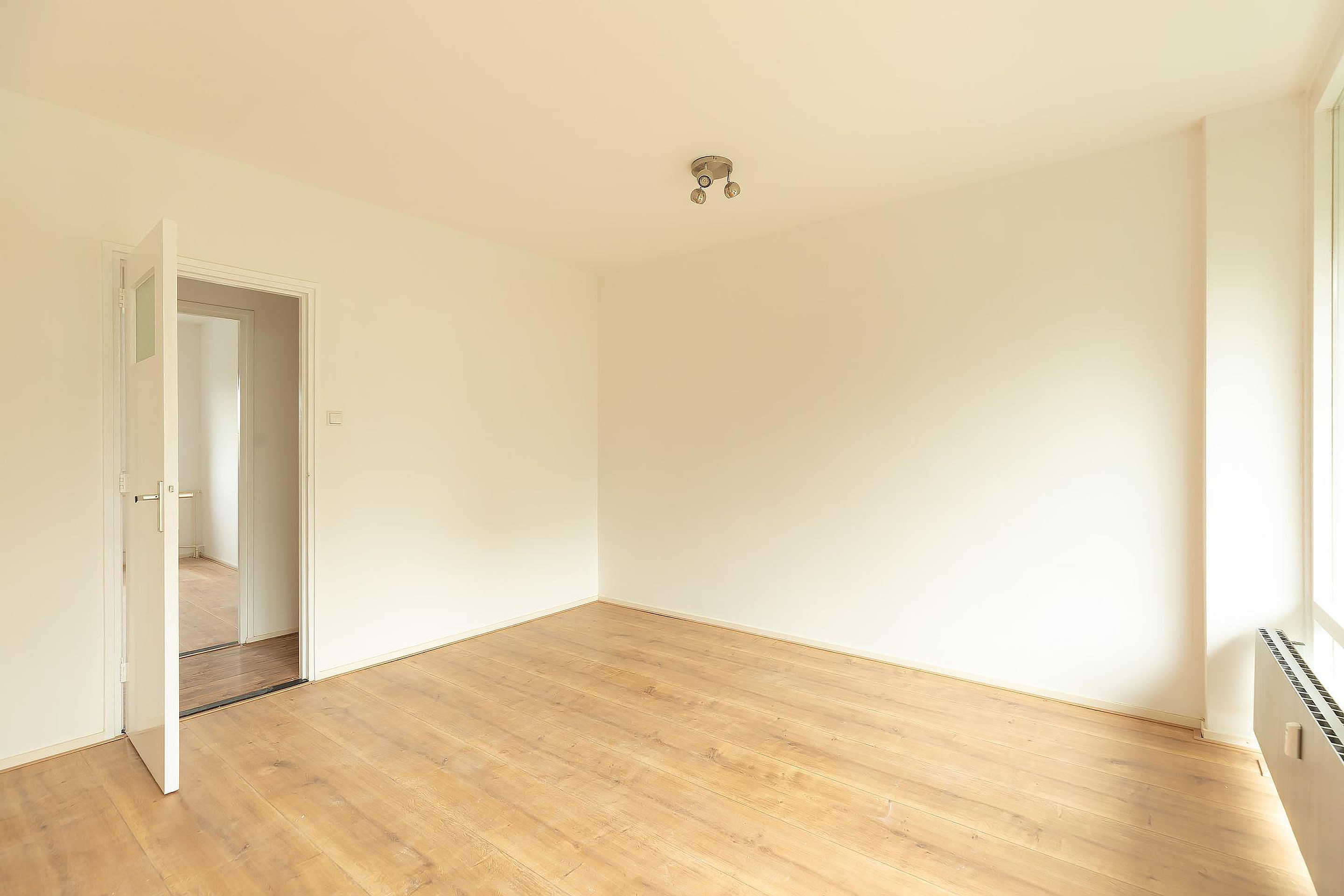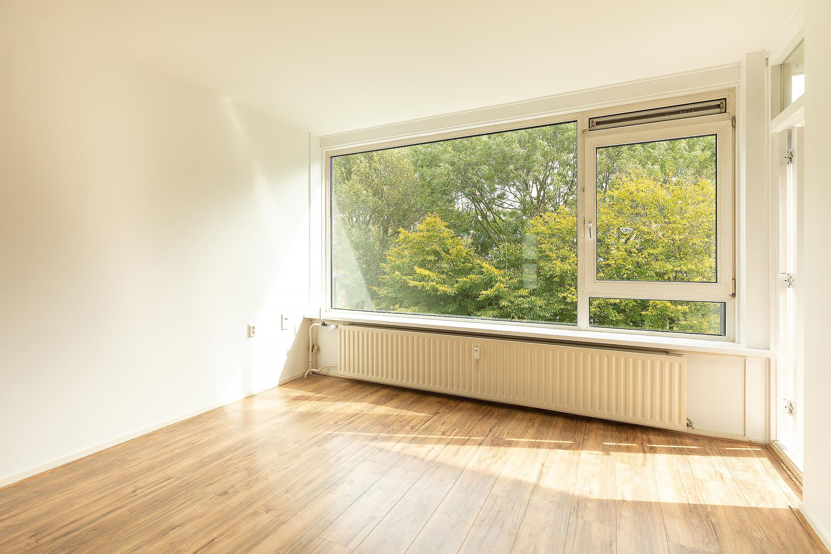 De ruime woonkamer bevindt zich aan de achterzijde van het appartement en kenmerkt zich door de grote raampartijen, waardoor het daglicht rijkelijk naar binnen valt. De indeling biedt voldoende plek voor zowel een gezellige zit- als eethoek.