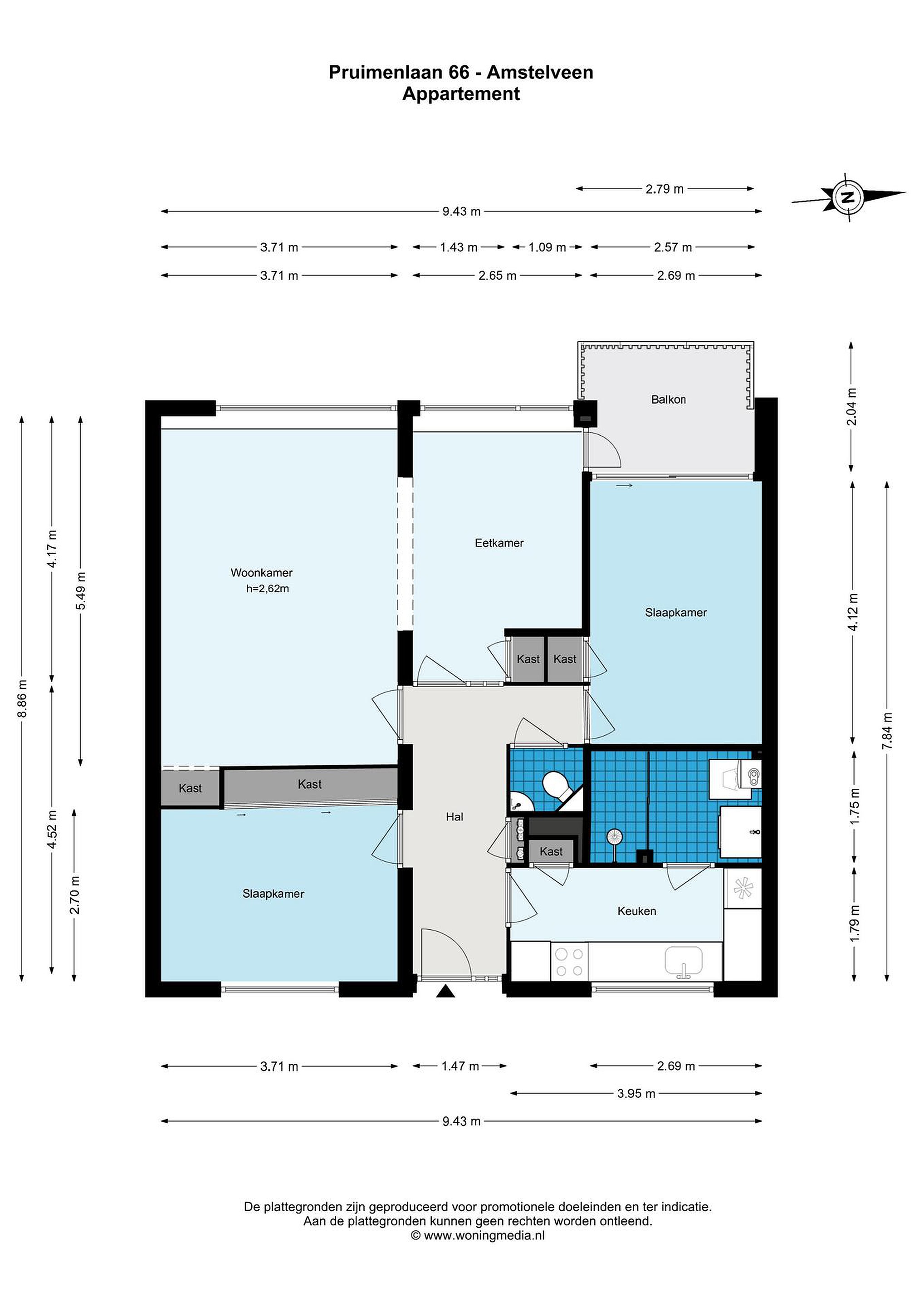De woning is gemeten door een betrouwbaar professioneel bedrijf en koper vrijwaart Heemskerk Property B.V. h.o.d.n. Gerrit Jan Heemskerk makelaardij o.g. en haar medewerkers, alsmede de verkoper, voor eventuele afwijkingen in de opgegeven maten. Koper verklaart in de gelegenheid te zijn gesteld om het verkochte zelf te (laten) meten conform NEN 2580.