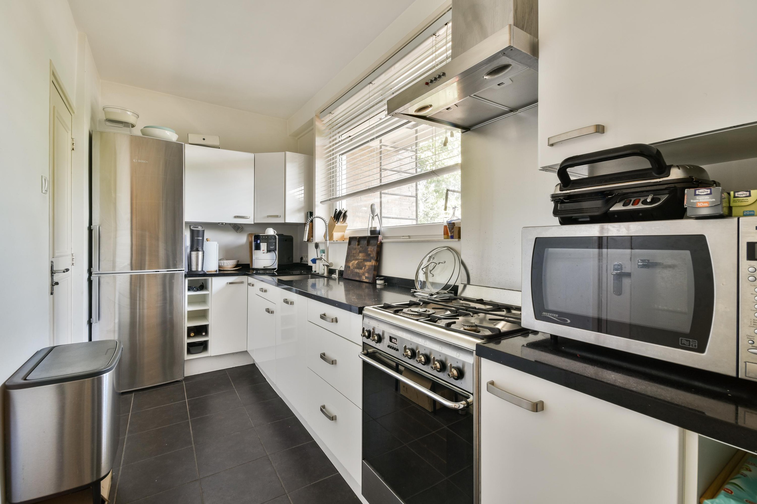 De moderne dichte keuken is voorzien van degelijke inbouwapparatuur en voldoet aan alle dagelijkse comfort.
