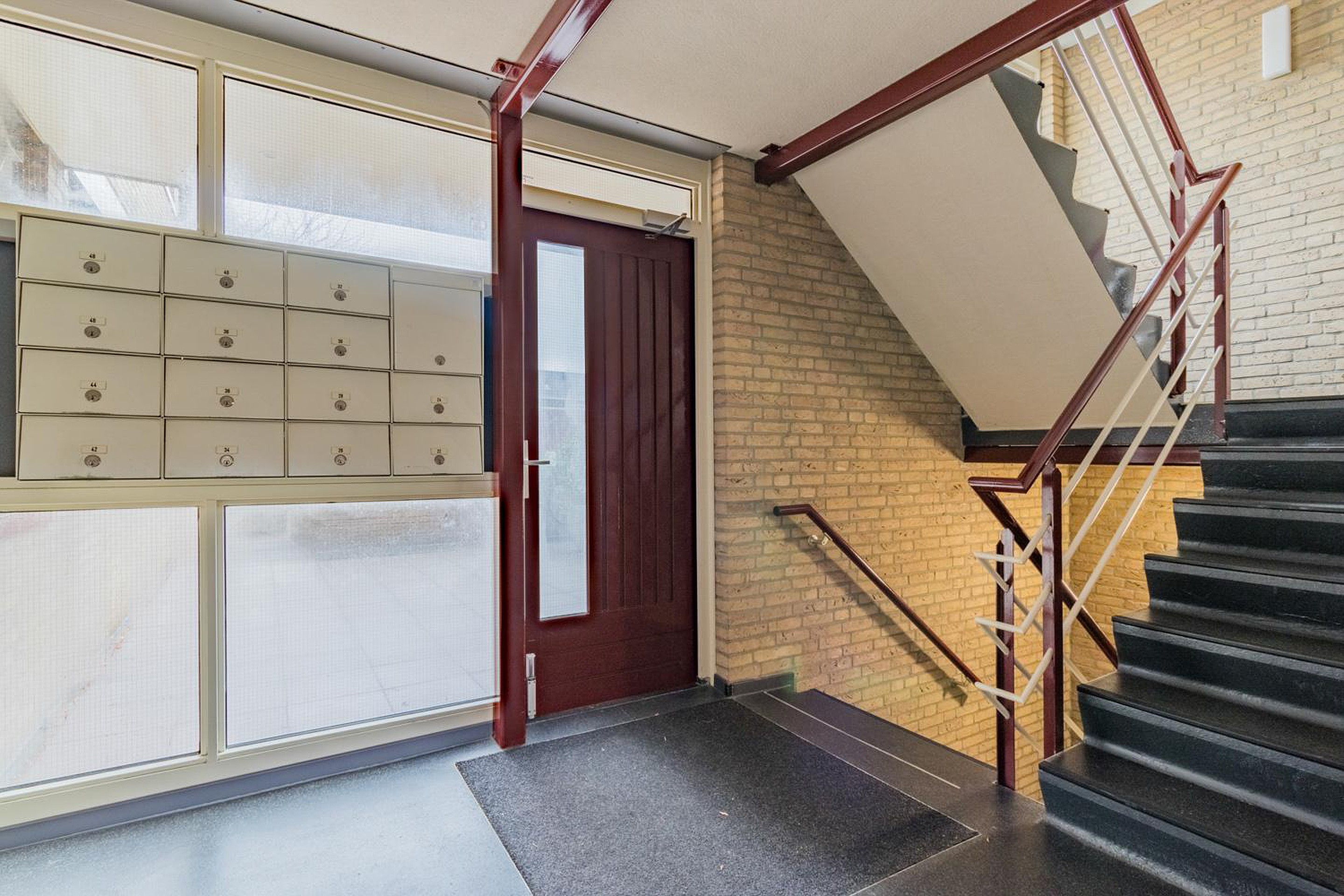 Begane grond: centrale entree met bellentableau en intercom(videofoon), trappenhuis en liftinstallatie.