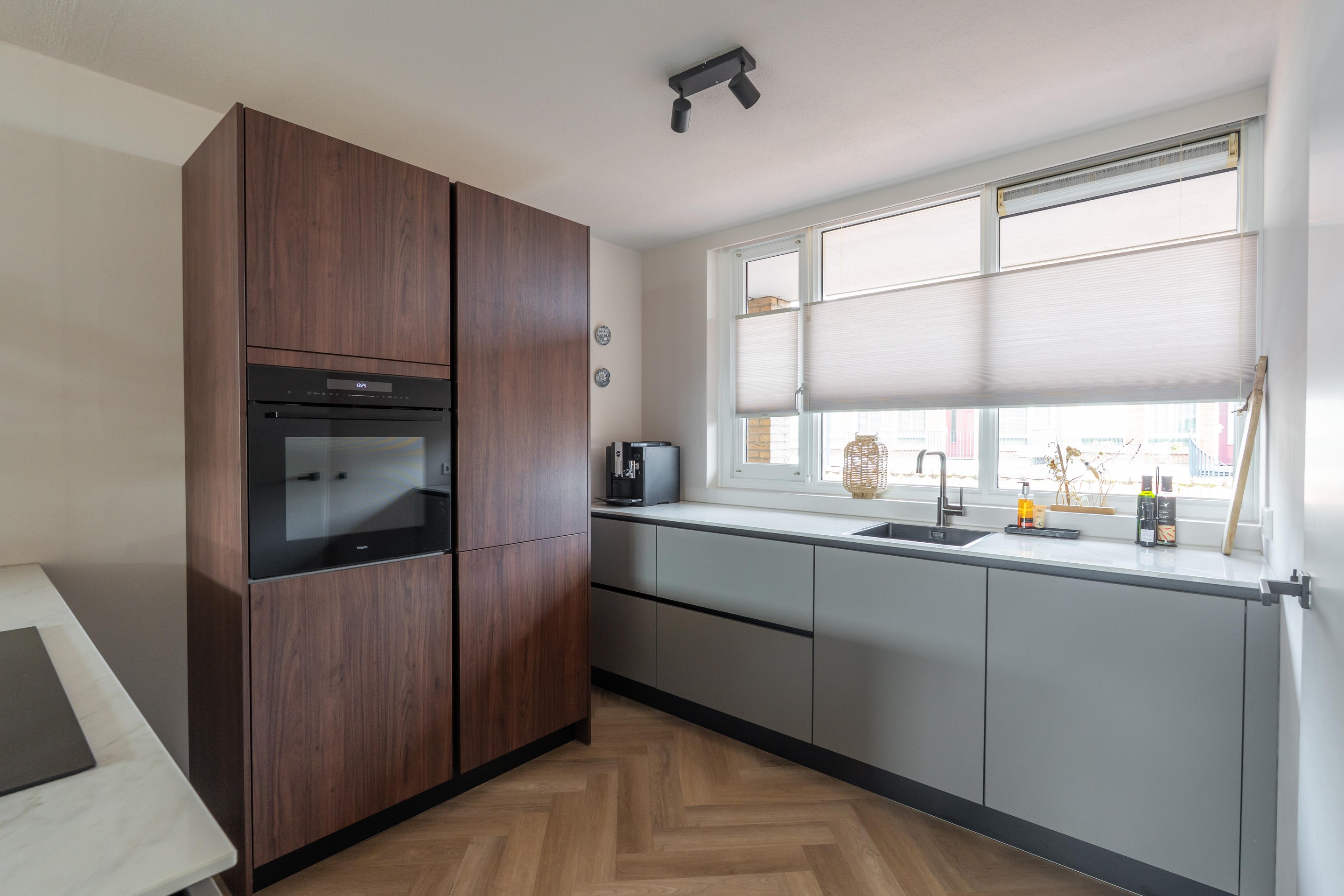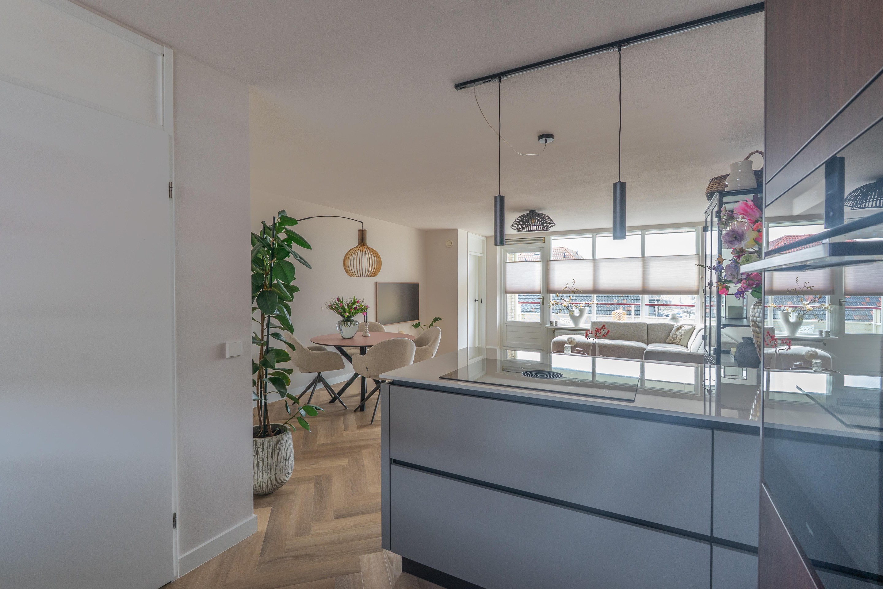 - het appartement is nagenoeg geheel voorzien van een pvc-visgraatvloer;