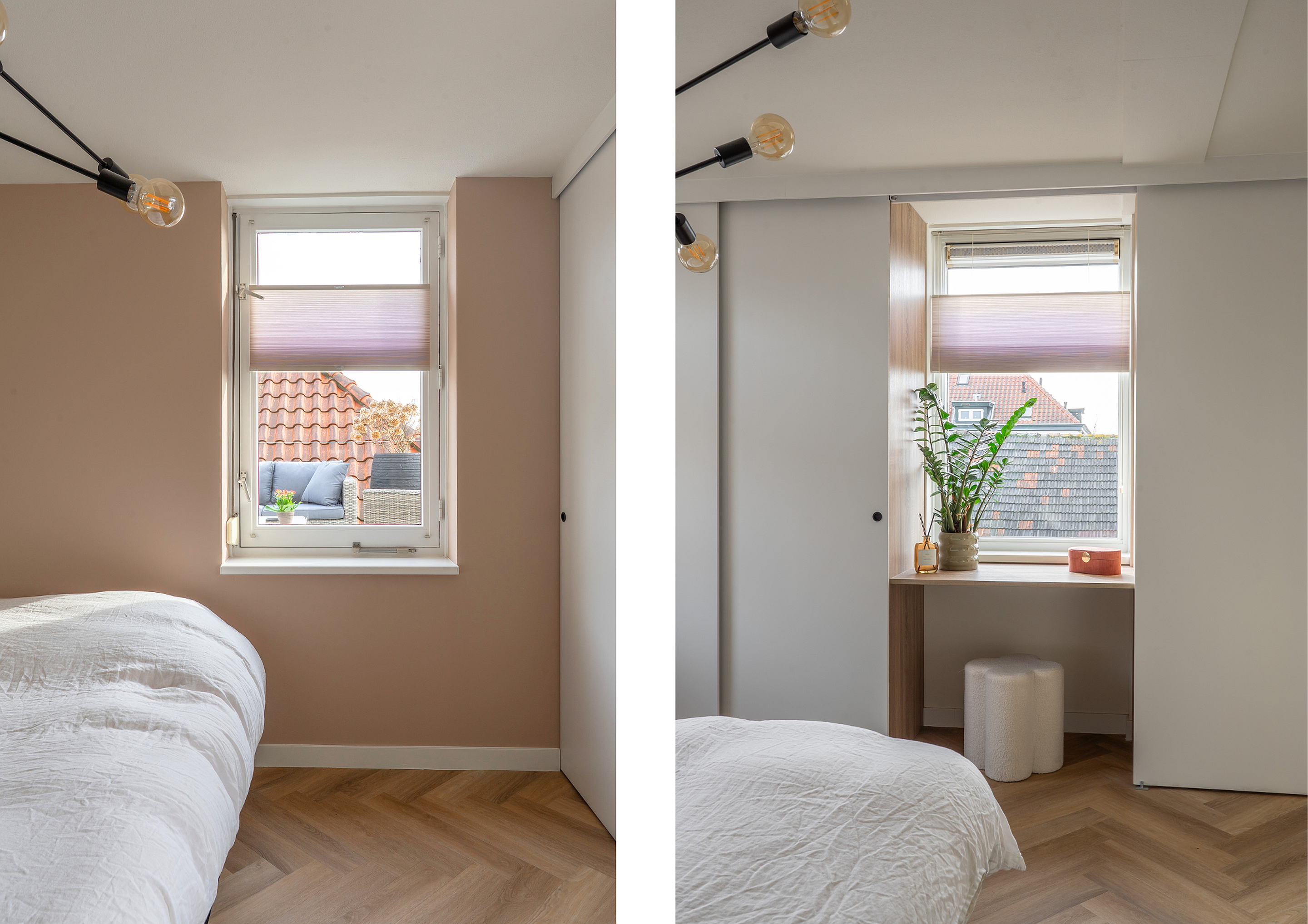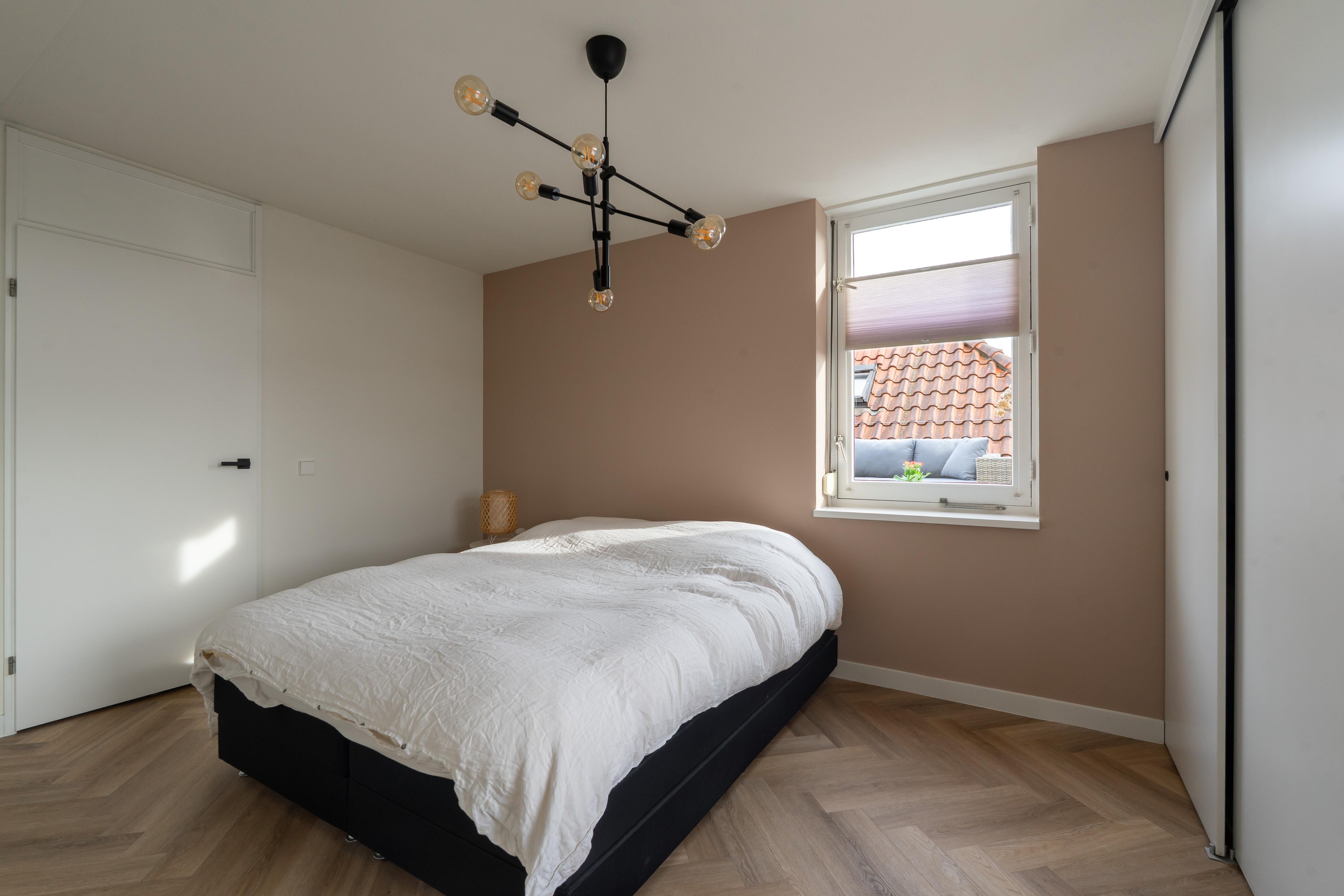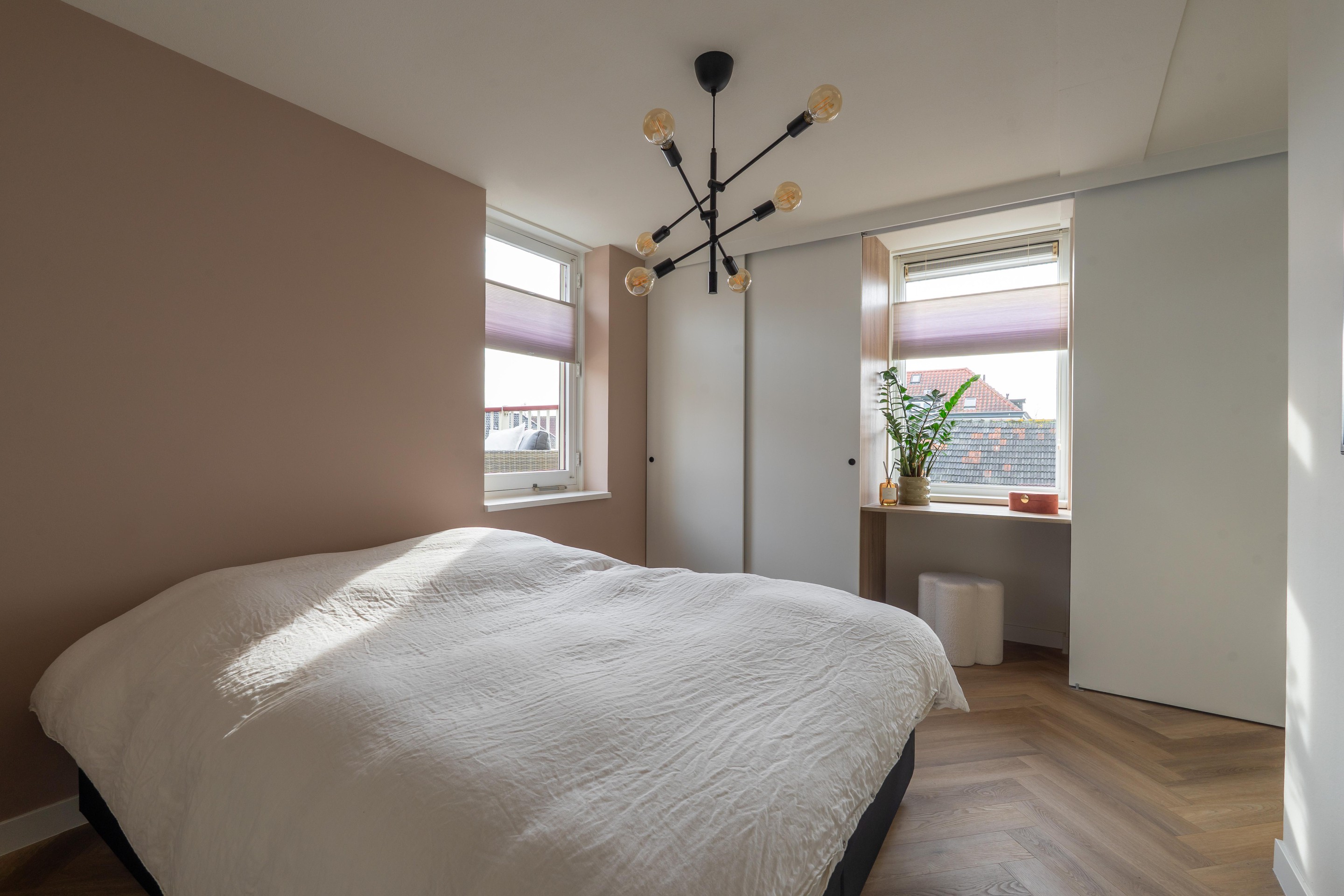 - slaapkamer voorzien van op maat gemaakte vaste kasten;