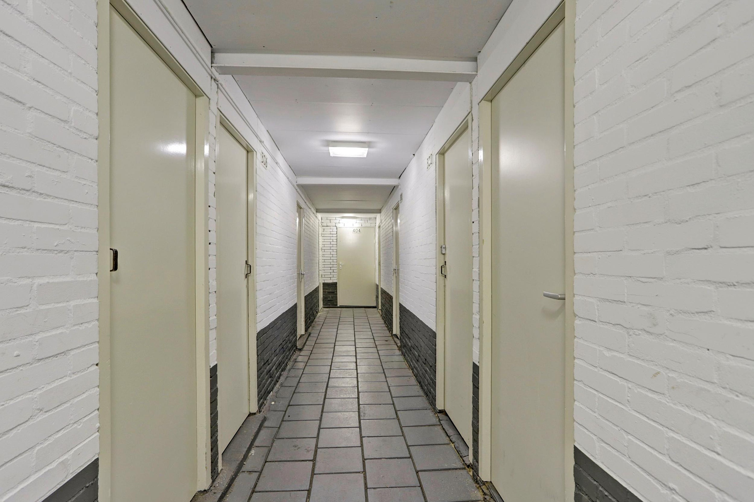 Via de centrale hal met bellentableau en brievenbussen kun je via de trap of met de lift naar de galerij op de 1e verdieping.