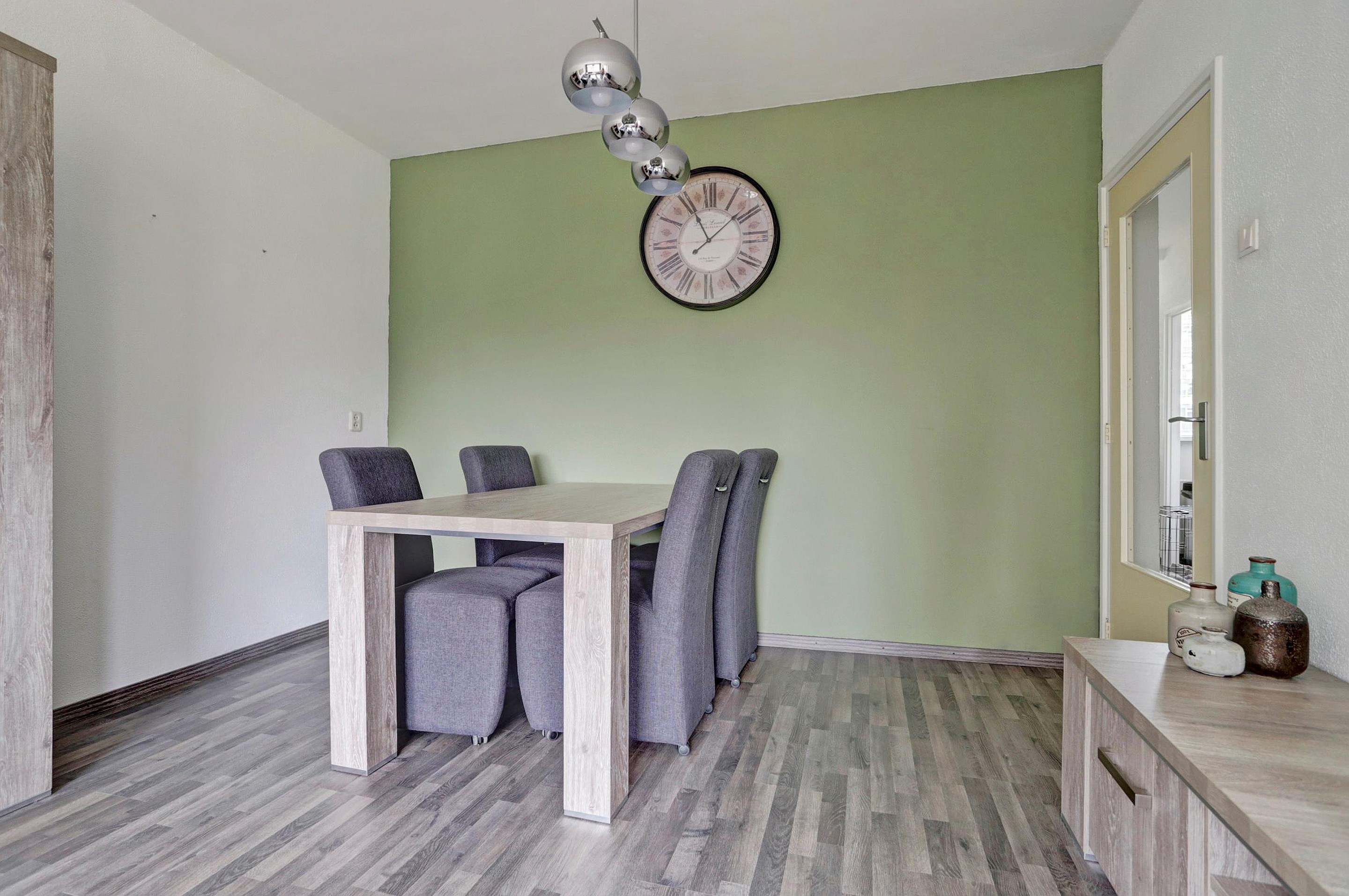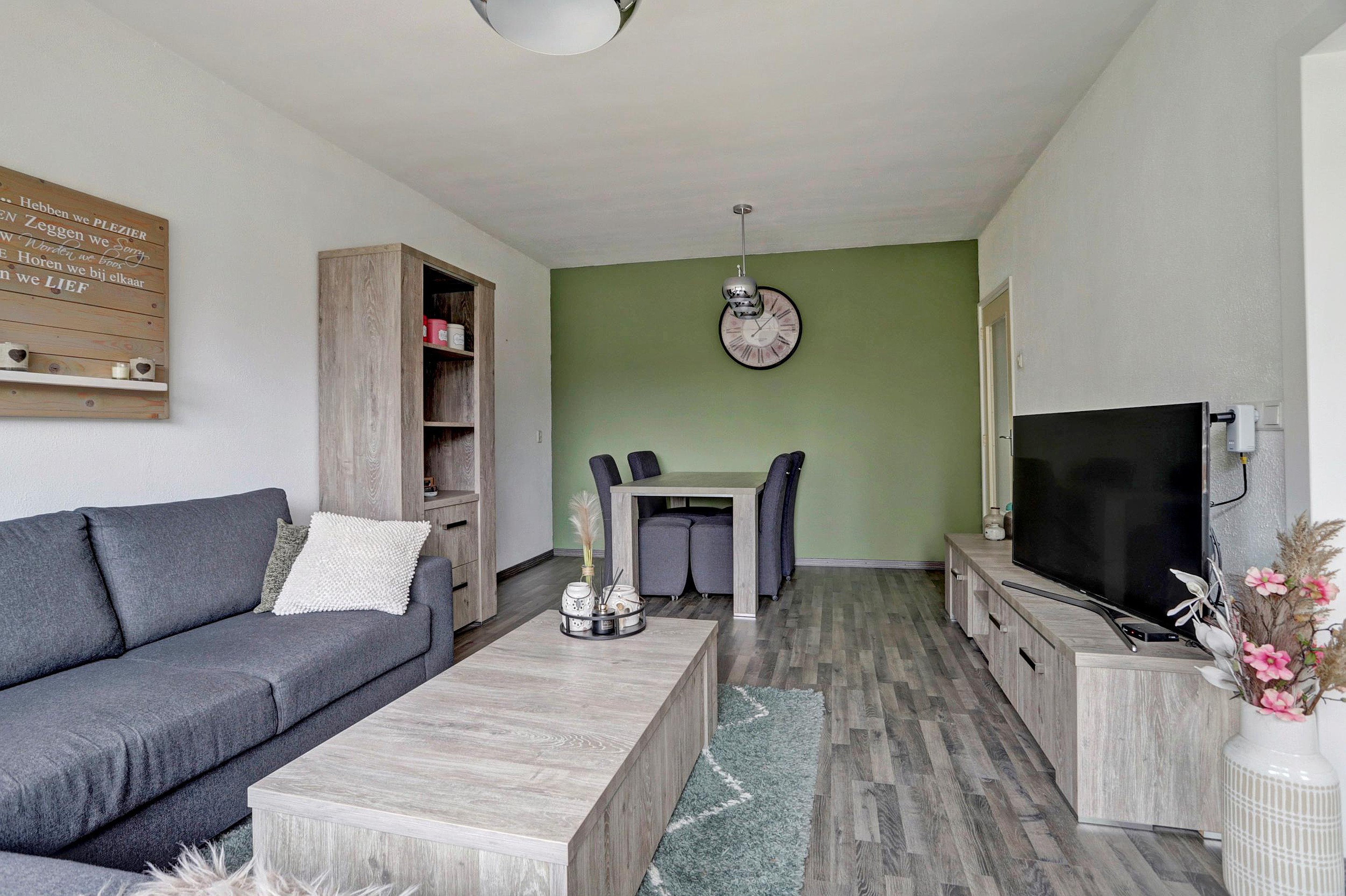 De gezellige woonkamer van ca 23,5m2 is voorzien van een laminaatvloer, gespoten en geverfde wanden, gestuct plafond, houten kozijn met enkel en dubbel glas en een loopdeur die toegang geeft tot het balkon. De woonkamer is nu ingericht met aan één zijde de eetkamertafel en aan de andere zijde de zithoek. Ruimte genoeg om gezellige avonden met vrienden door te brengen of om lekker een avondje in de bank te hangen.