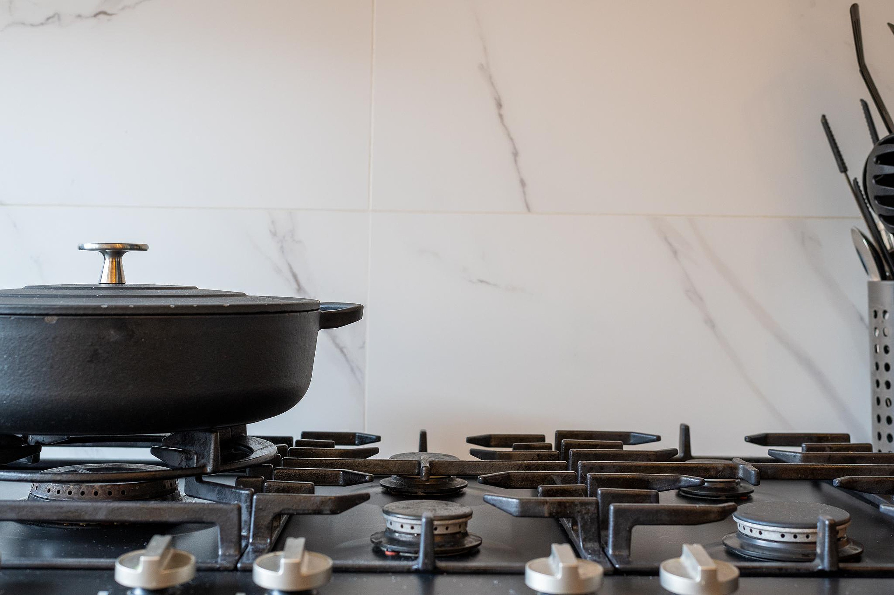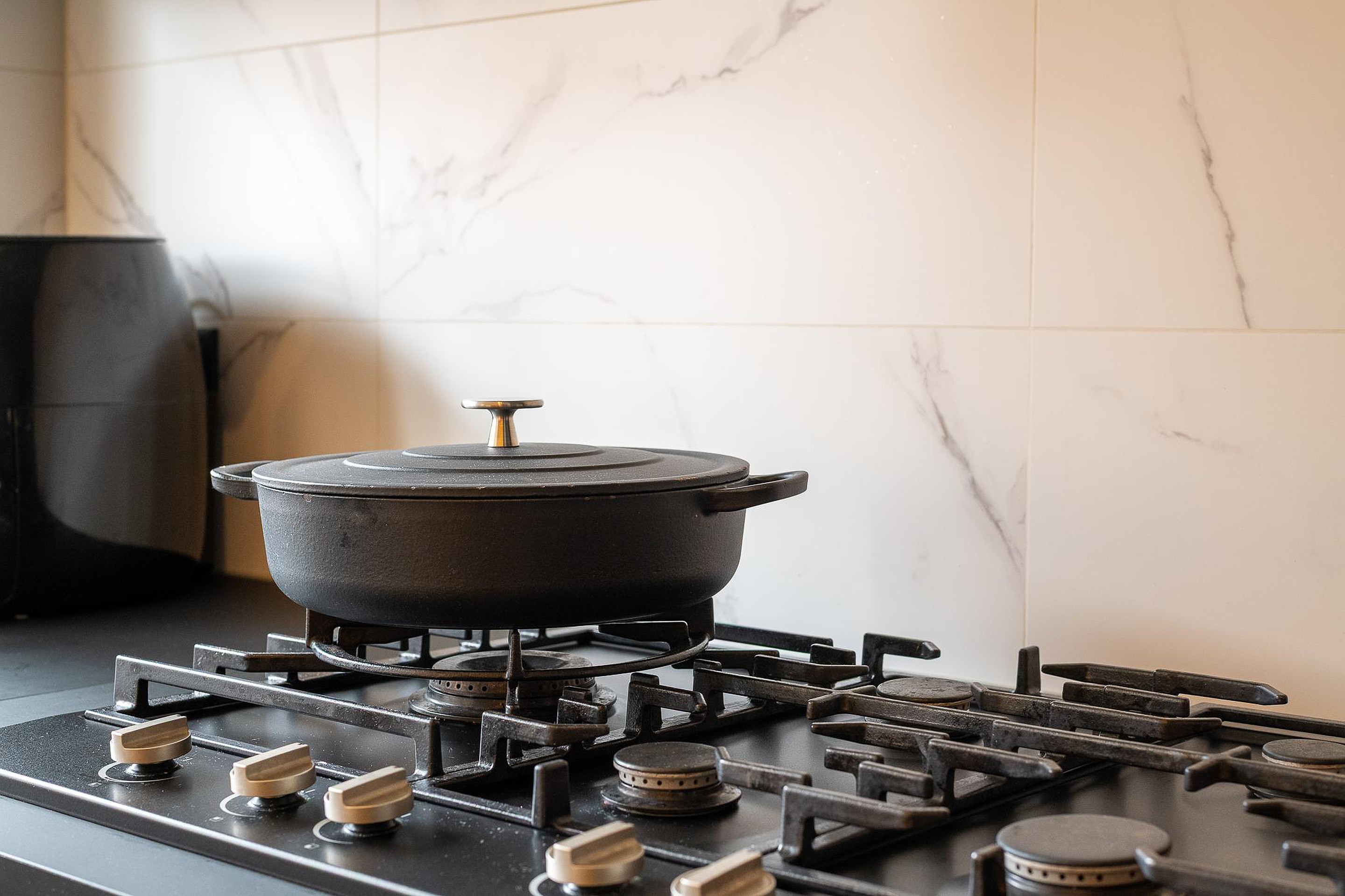 Fijne ruime, moderne keuken met veel werk- en opbergruimte;