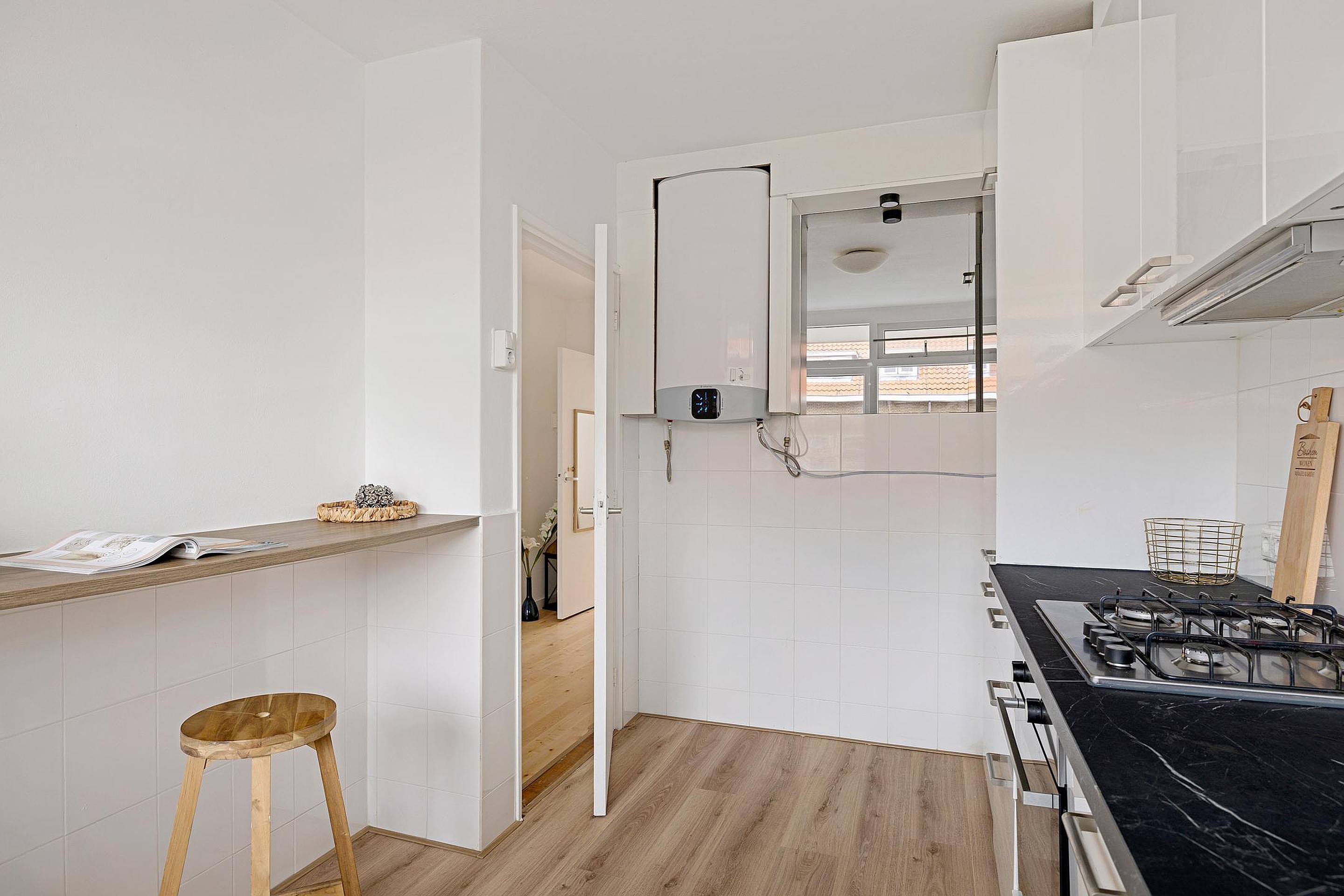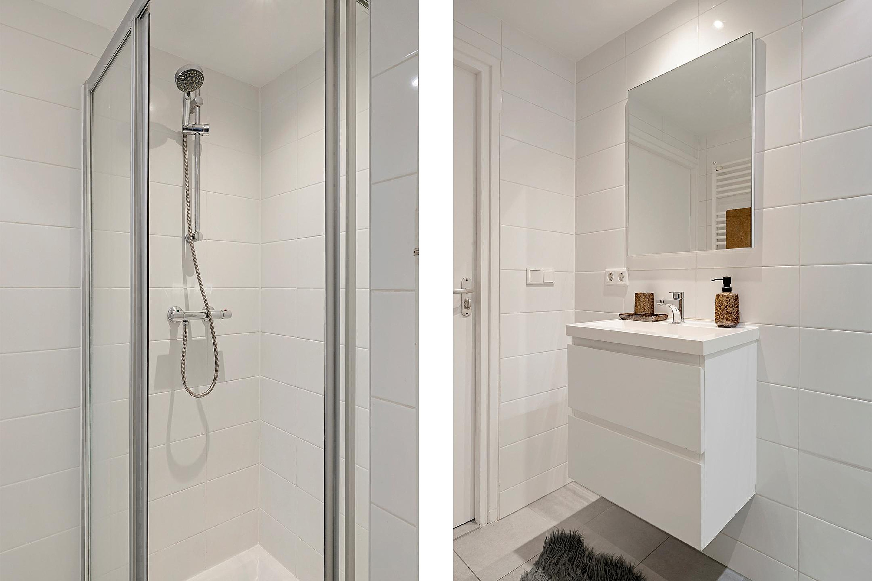 De keuken is functioneel ingericht en voorzien van een 4-pits gasfornuis met afzuigkap, een koel-/vriescombinatie, vaatwasser, voldoende kastruimte. De badkamer is netjes afgewerkt en beschikt over een douche, wastafel en een was-/droogmachine-aansluiting. Er is een separaat toilet met fontein.