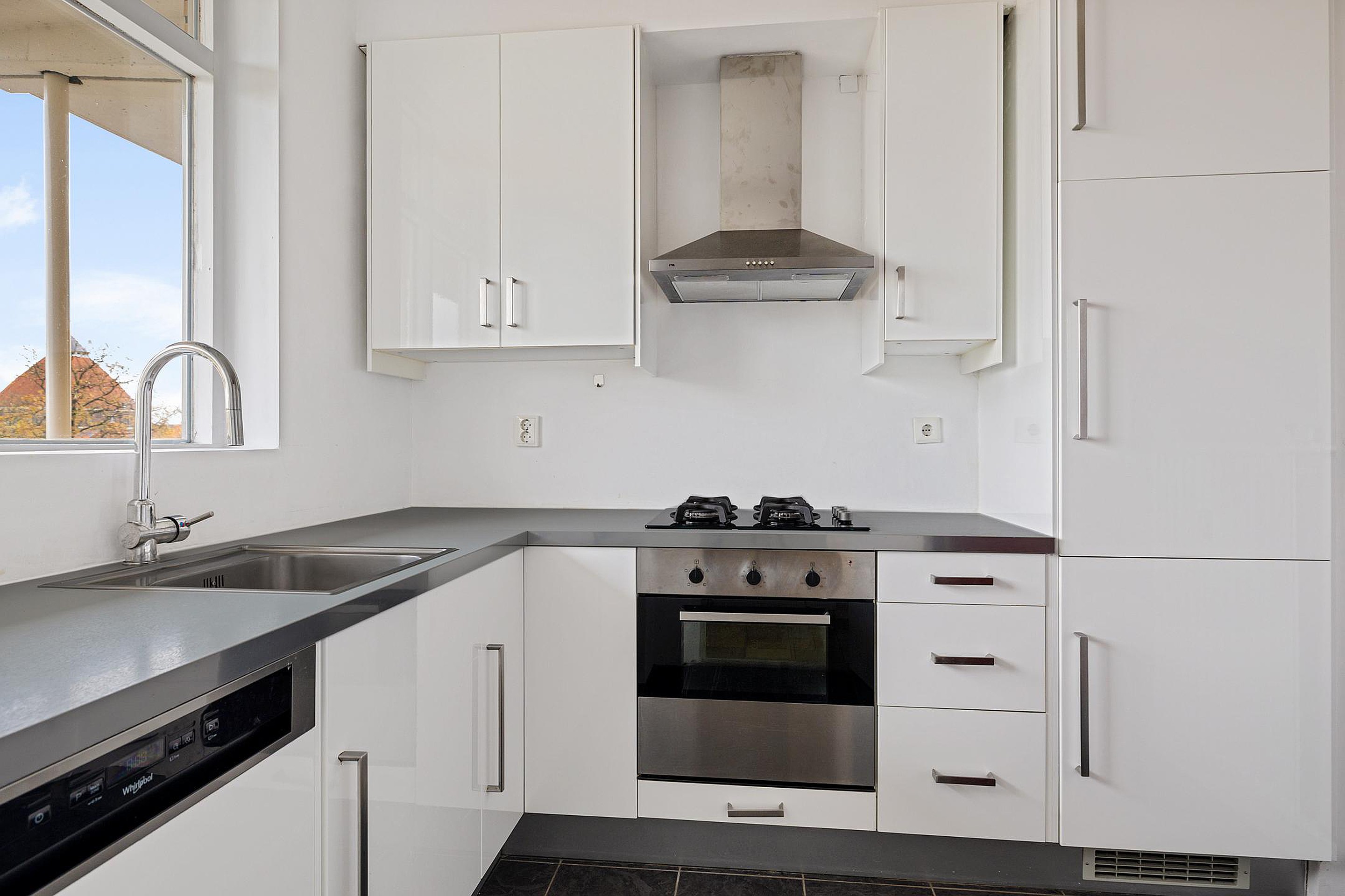 Entree, hal, meterkast, apart toilet met fontein, aparte keuken met vaatwasser, oven, 4 pits gaskookplaat, koelkast en vriezer, afzuigkap, spoelbak. Woonkamer met toegang tot het balkon. 2 slaapkamers en badkamer met wastafelmeubel, inbouwkast, douche ruimte en een aansluiting voor de wasmachine