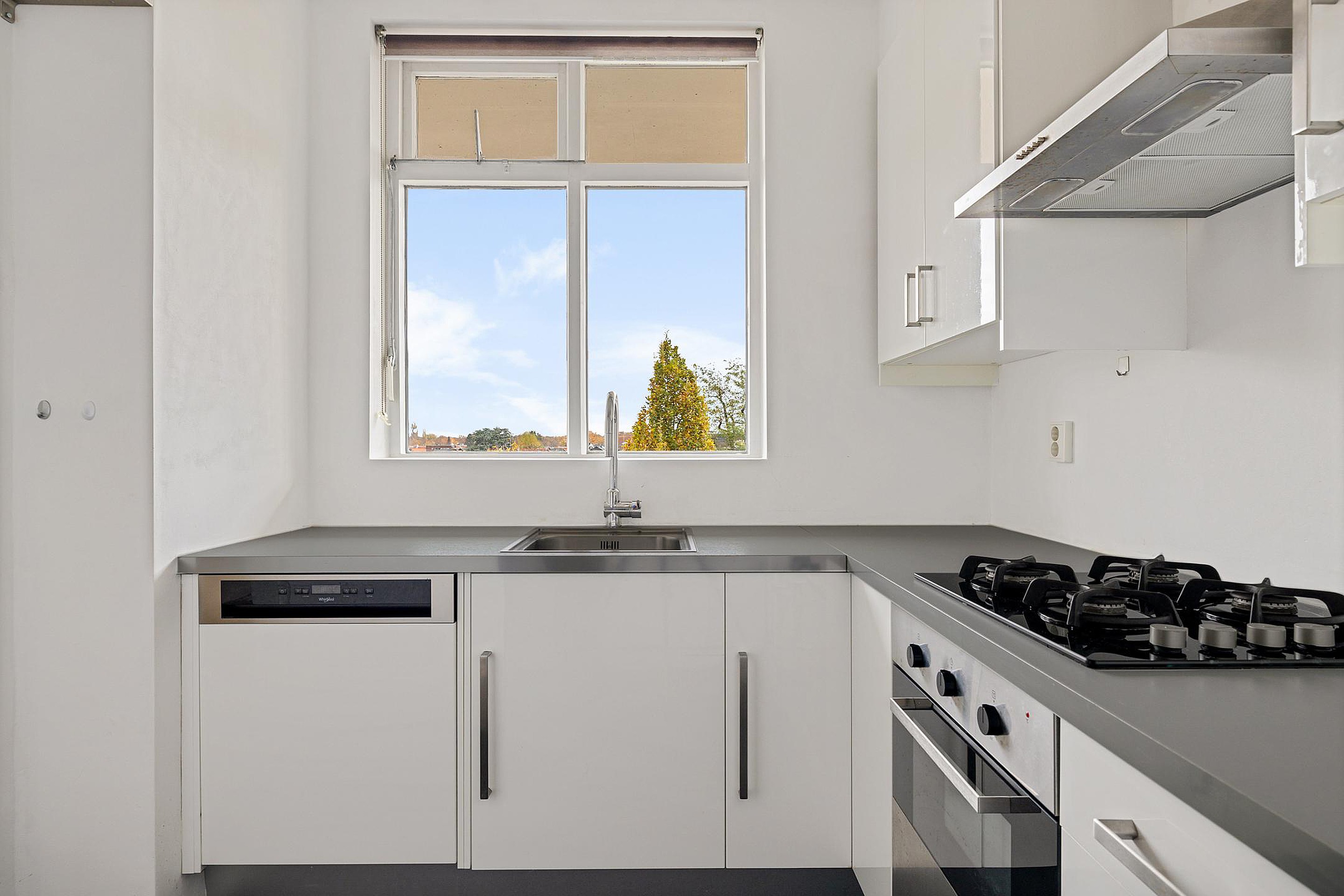 Het appartement kijkt uit op de groene, gemeenschappelijk en goed onderhouden tuin. Dankzij de vele ramen is er overal bijzonder veel lichtinval.