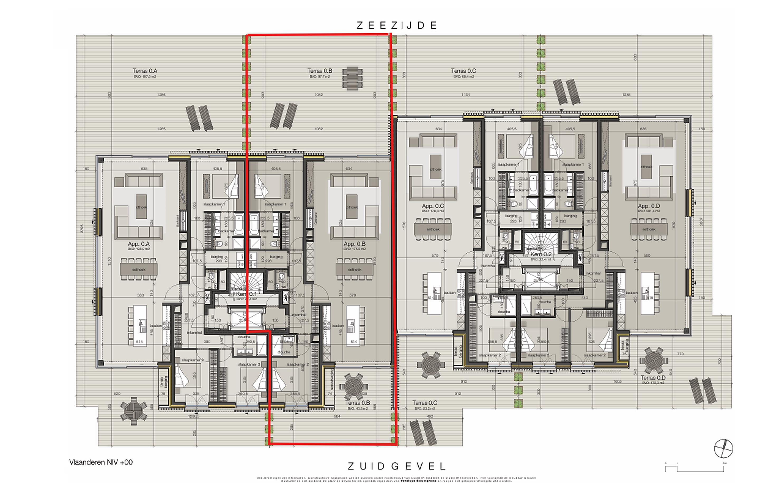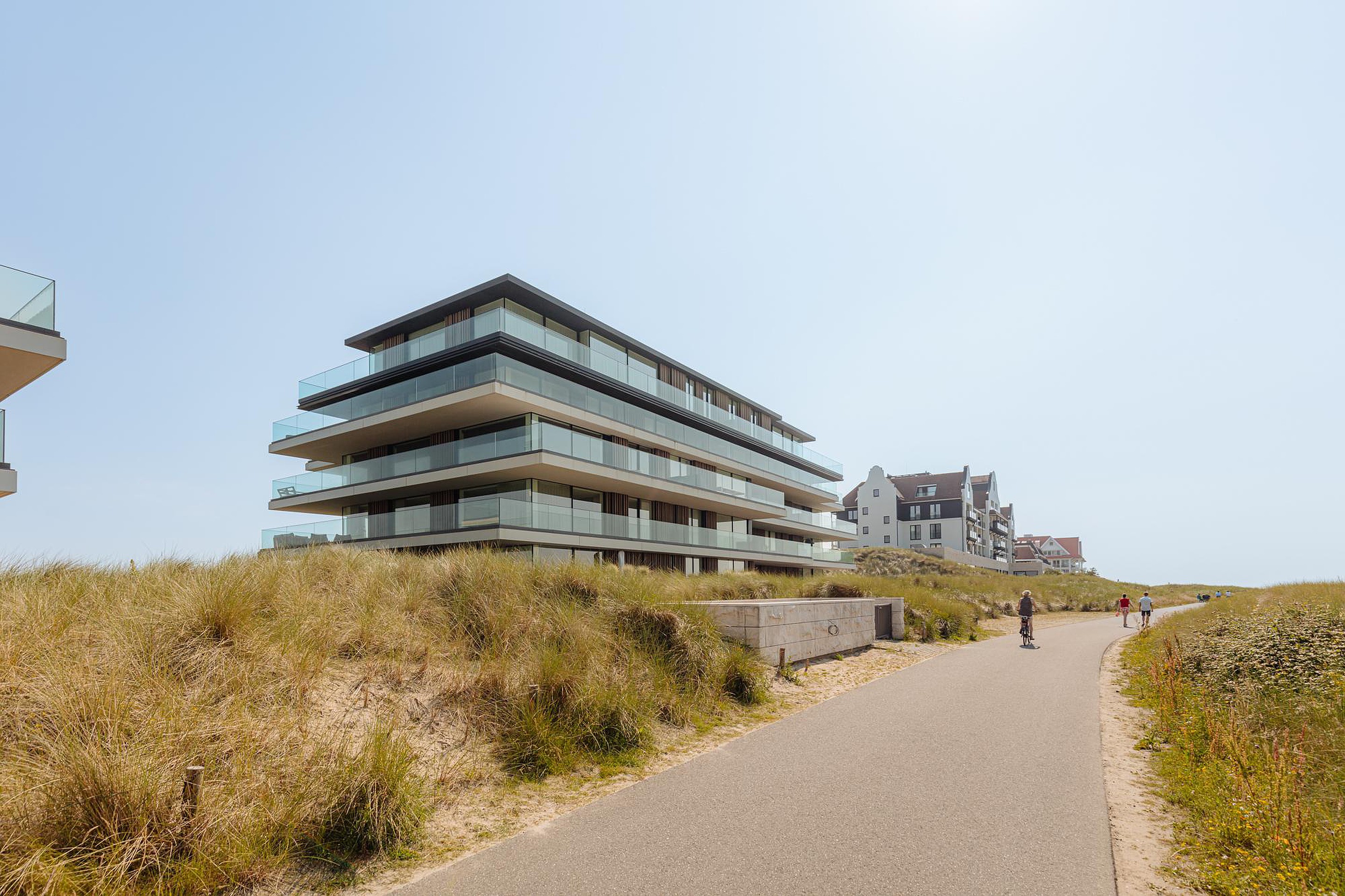 Het appartement zelf bevindt zich op de begane grond, wat in dit unieke ontwerp betekent dat u direct op duinniveau woont aan de zeezijde. Een uitzonderlijke woonbeleving, waarbij u letterlijk vanuit uw woning het strand oploopt.