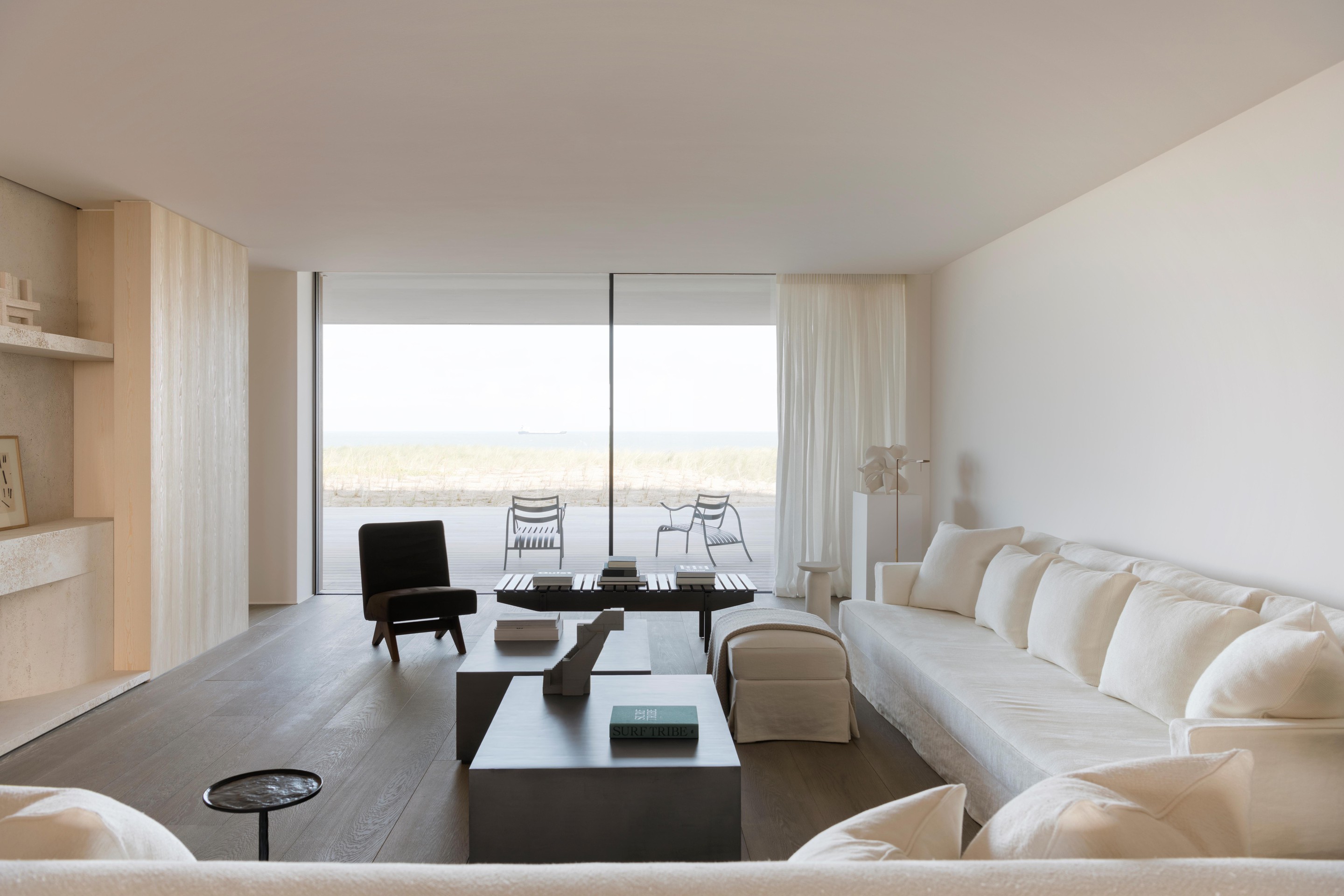 De royale leefruimte, met rondom raampartijen en een indrukwekkend uitzicht, biedt een ongeëvenaard gevoel van ruimte en vrijheid. Overdag baadt het appartement in het zonlicht, terwijl in de avond zorgvuldig gekozen verlichting en de sfeervolle haard zorgen voor een warme en uitnodigende ambiance. Vanuit de living loopt u direct de duinen in, met de zee letterlijk aan uw voeten.