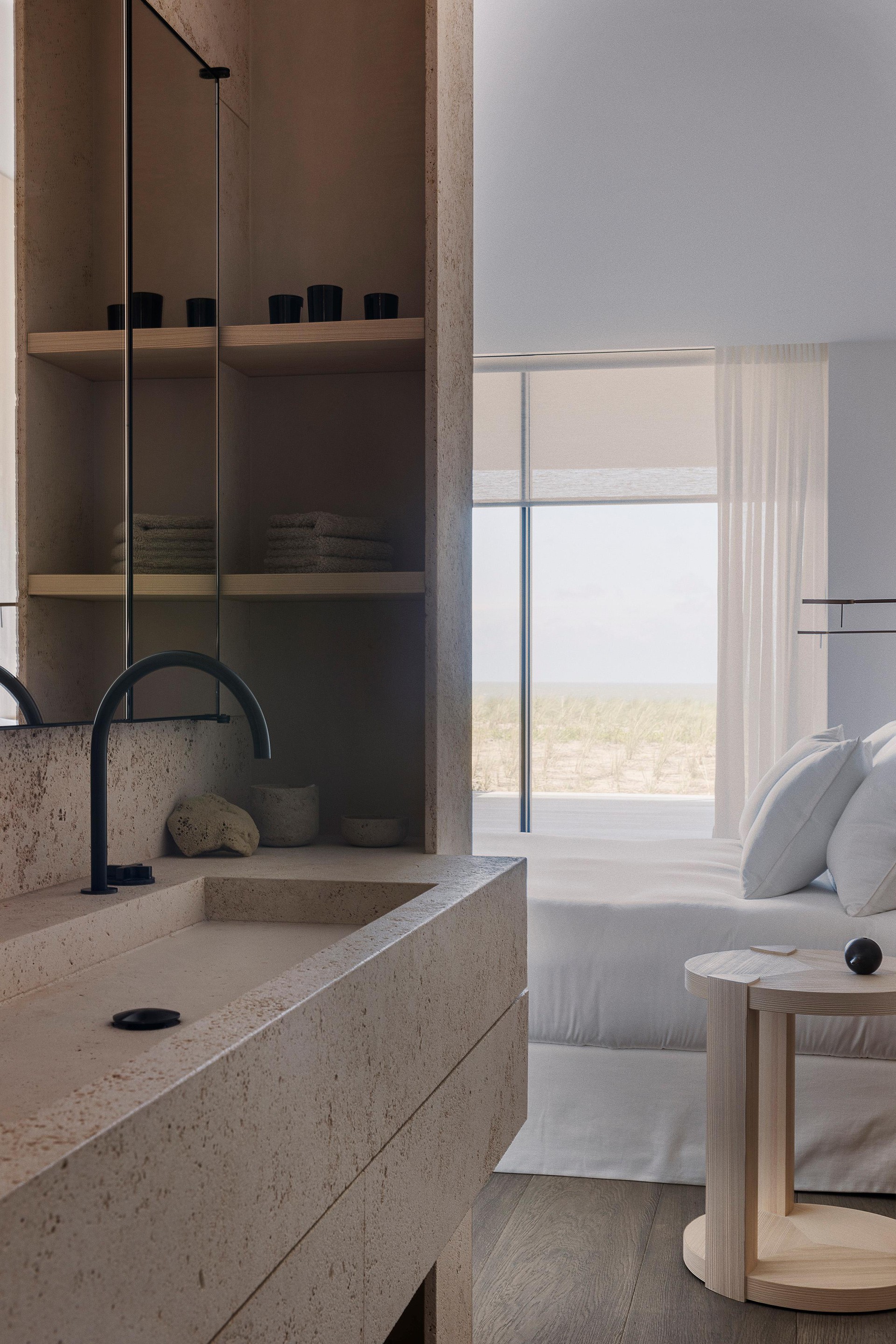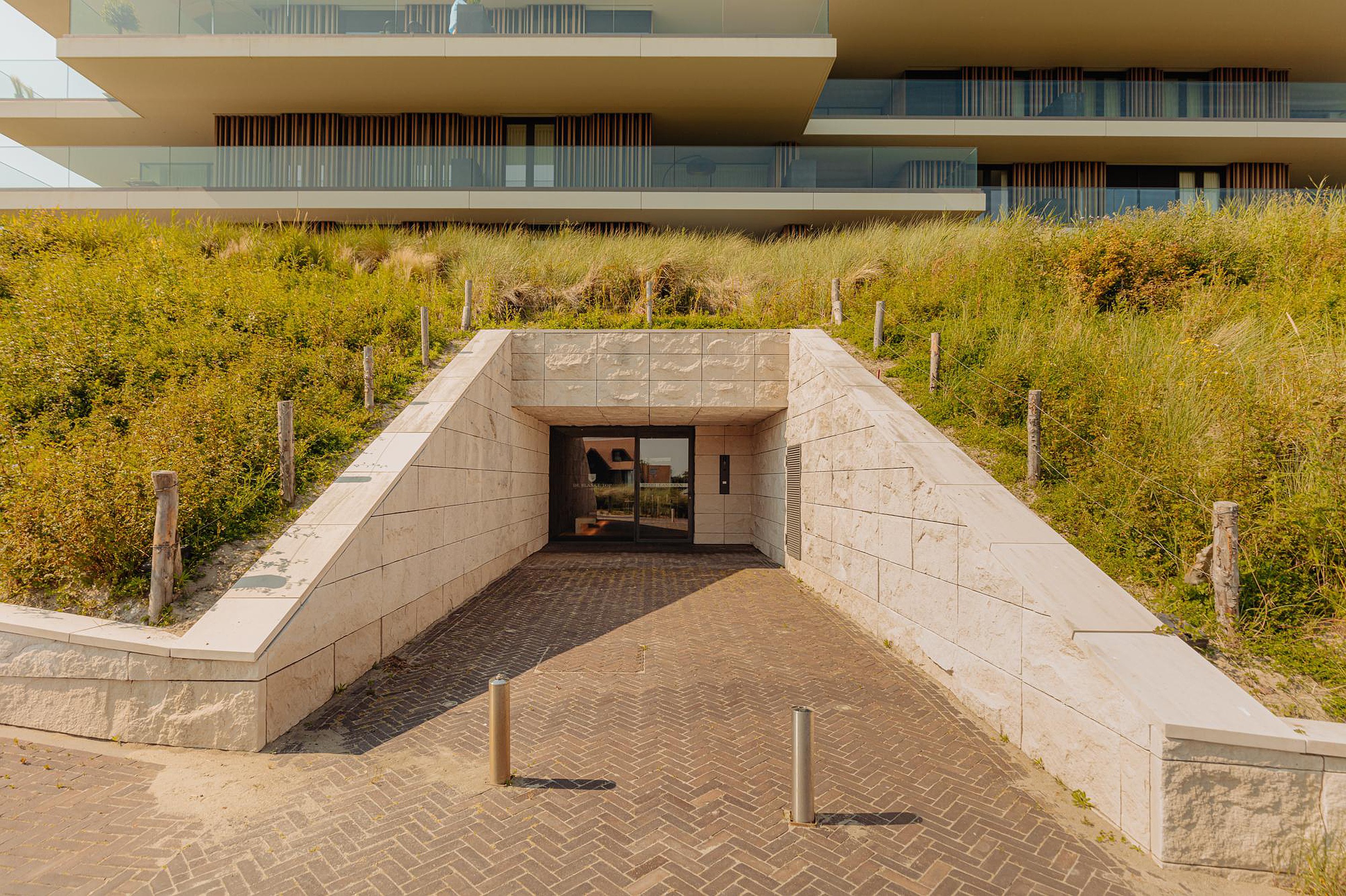 Beide residenties kenmerken zich door een doordachte en hoogwaardige architectuur, waarbij de inkomhallen subtiel zijn geïntegreerd op niveau -2, midden in de duingordel. Hiermee is bewust gekozen voor een elegante, ingetogen entree in plaats van een traditionele bovengrondse toegang. Deze horizontale inpassing is eveneens doorgevoerd in de ondergrondse parkeergarage, waardoor bewoners zich moeiteloos door het complex bewegen zonder het duinlandschap te hoeven doorkruisen. Vanuit de entree bereikt u via een lift met individuele toegangscontrole of het trappenhuis uw appartement.