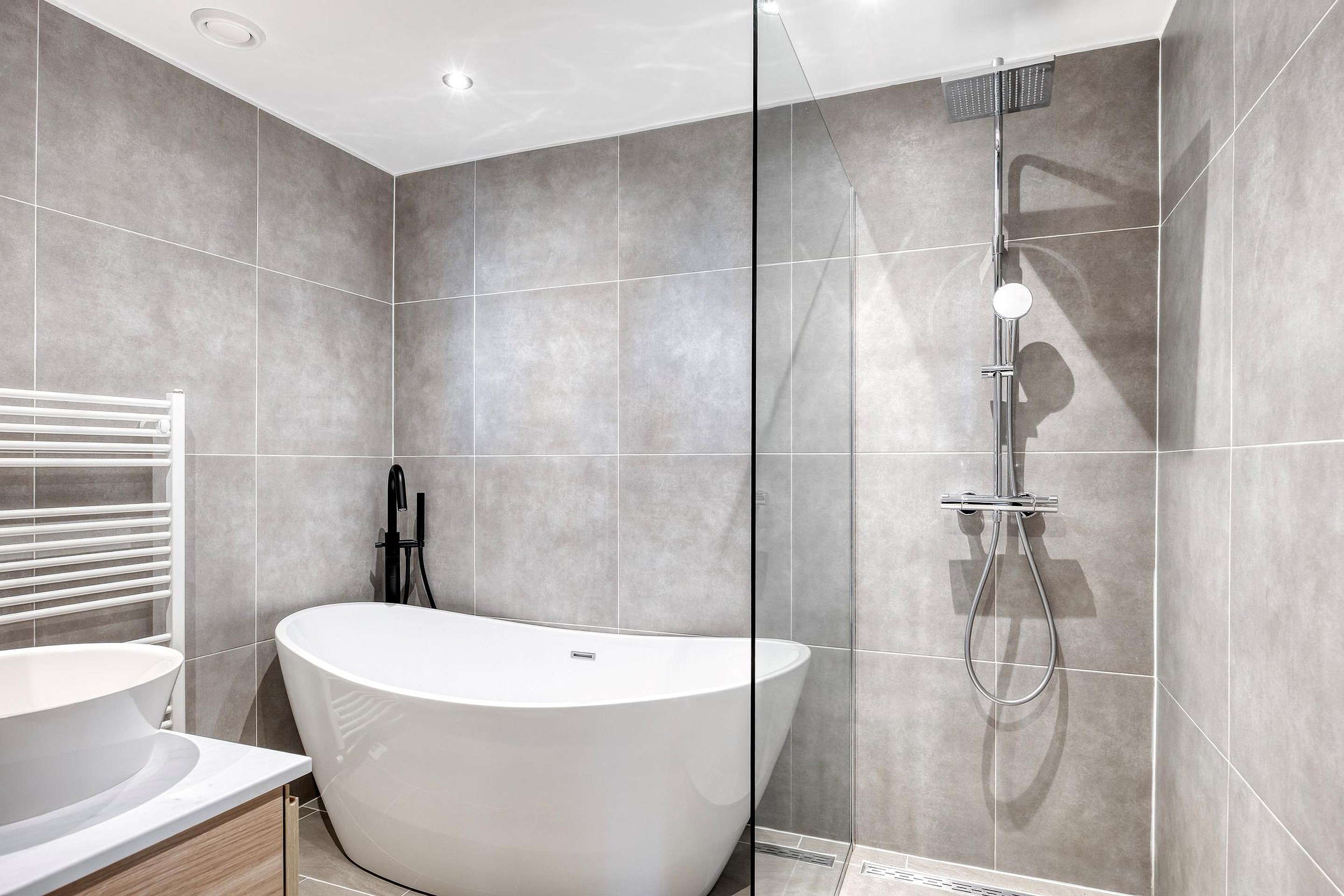 - Moderne badkamer (2020) met inloopdouche en ligbad