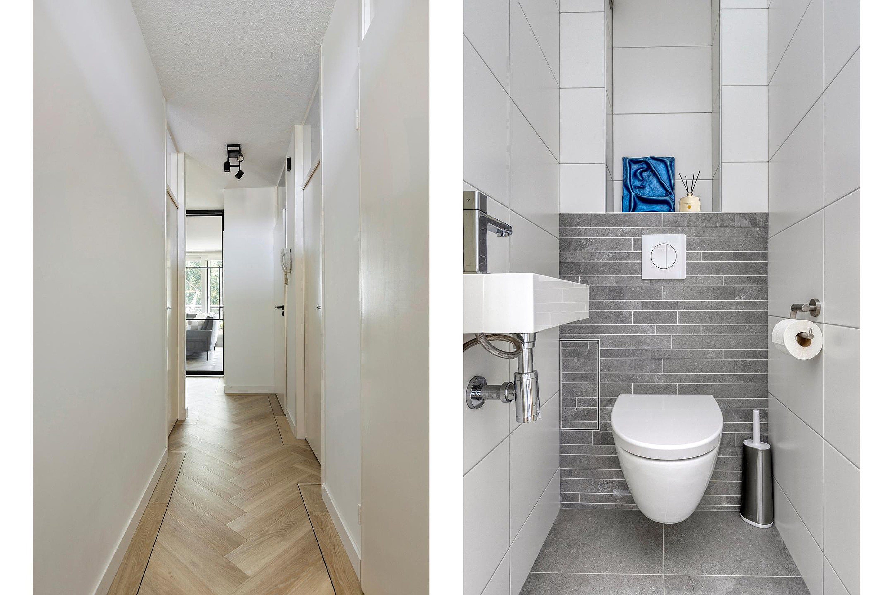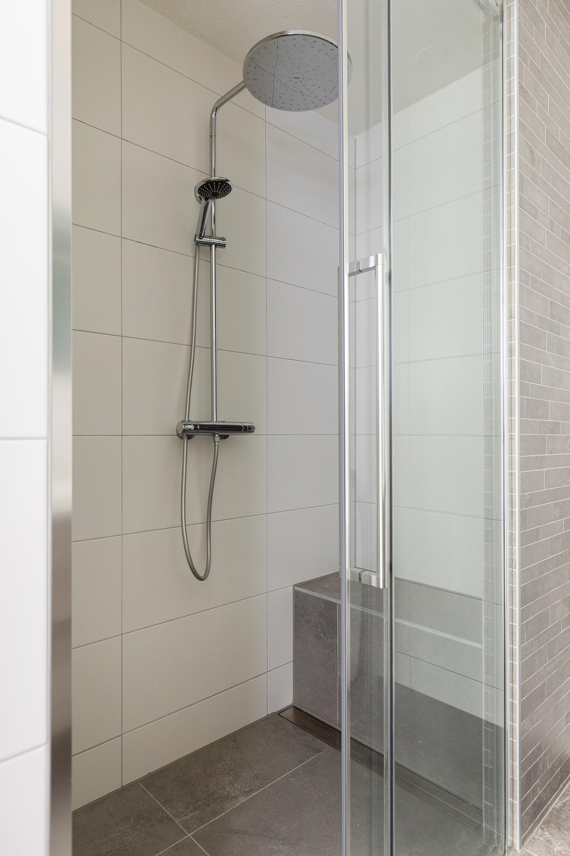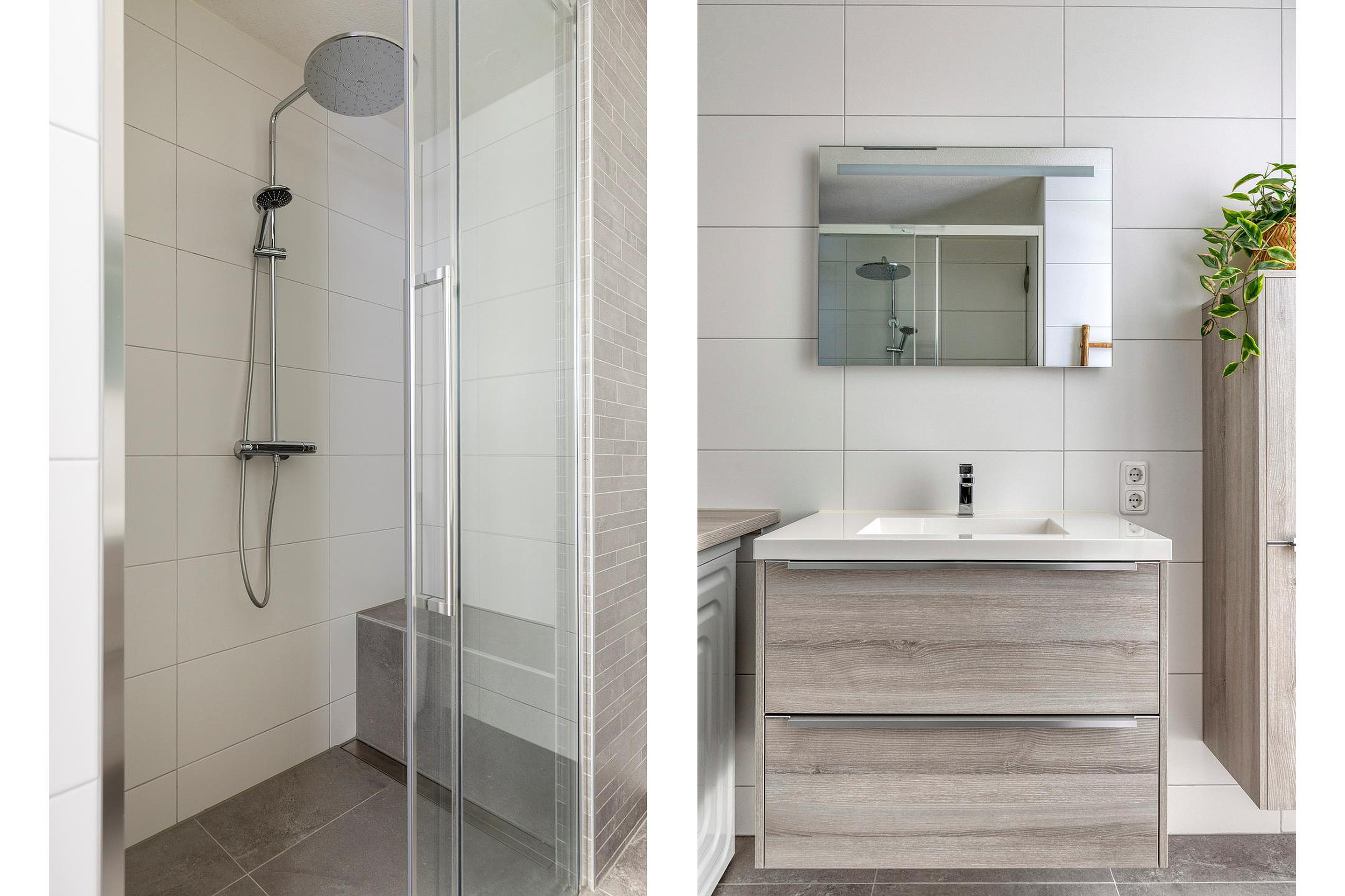 Entree hal welke toegang geeft tot alle vertrekken van deze woning. Aan de voorzijde van het appartement bevinden zich de 2 slaapkamers, waarvan er nu een in gebruik is als Walk-In-Closet. Terug de hal in aan de linkerzijde een interne berging en aan de rechterzijde een luxe badkamer, ook voorzien van vloerverwarming, verwarmde spiegel en Bluetooth speakers. De ruime inloopdouche geeft je een gevoel van luxe.