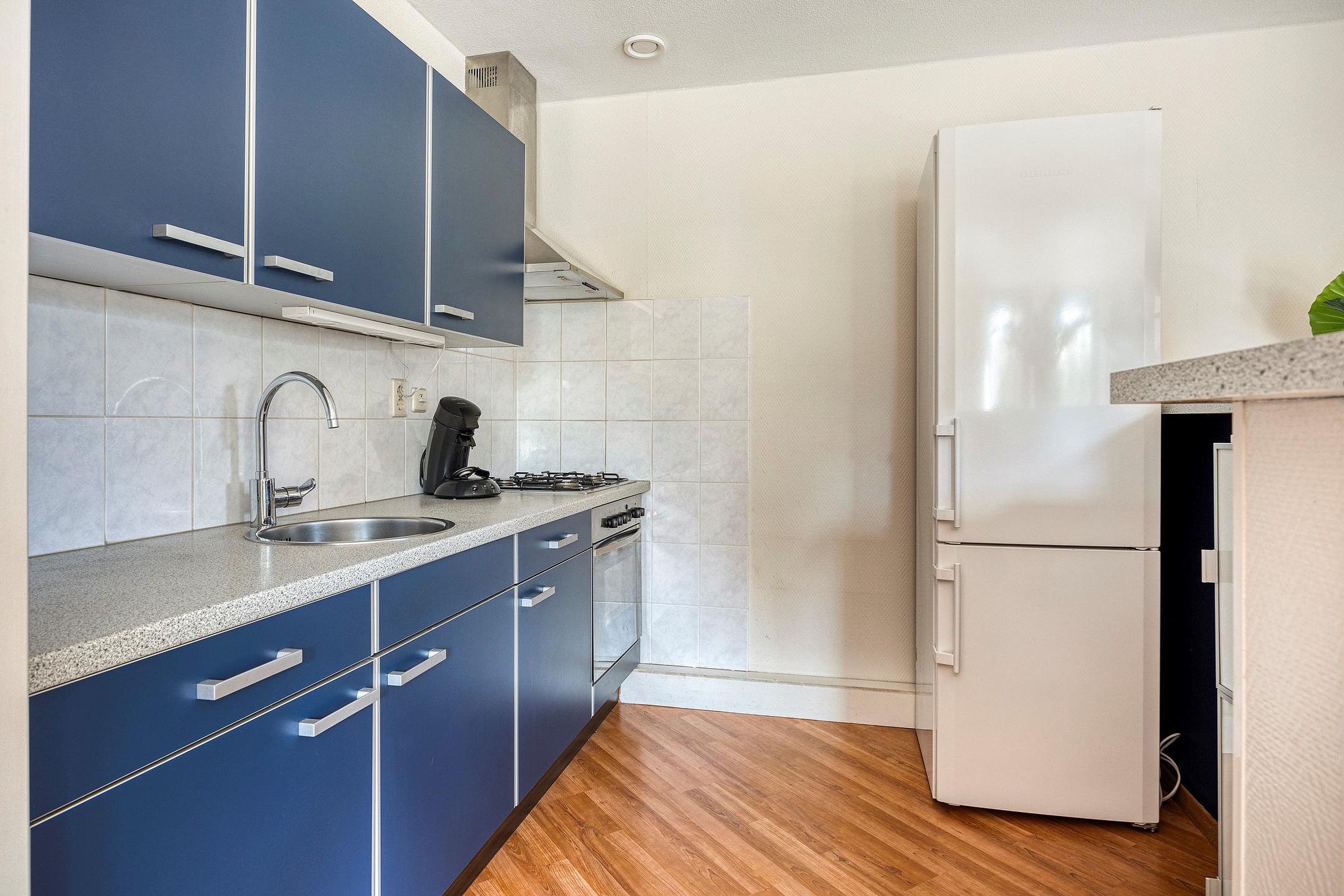 Aan de galerijzijde bevinden zich de twee slaapkamers. De ruime hoofdslaapkamer is voorzien van een vaste kastenwand. De tweede slaapkamer heeft een bergkast waarin de HR-combiketel (Remeha 2021) is opgesteld.