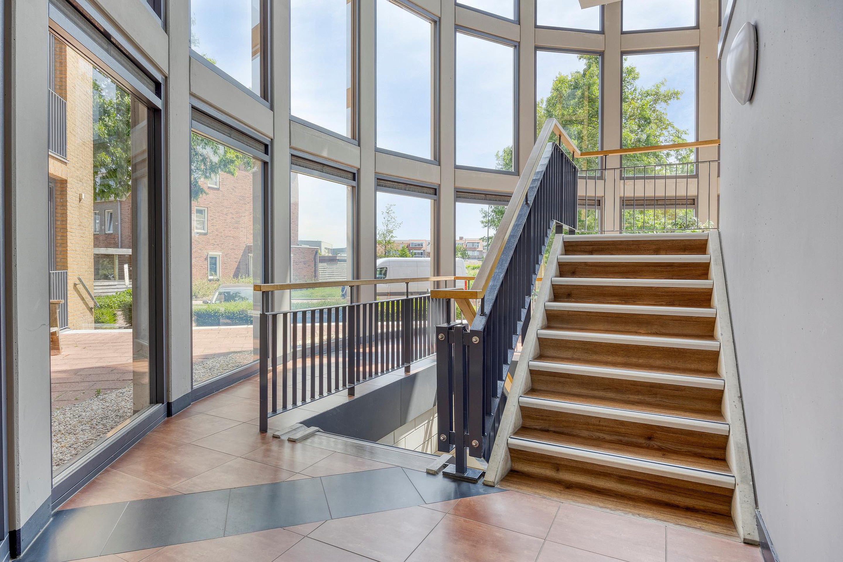 De centrale entree van het appartementencomplex is aan de buitenzijde voorzien van brievenbussen en bellentableau. Na de afgesloten entree volgt een trappenhuis en de lift naar de verdiepingen.