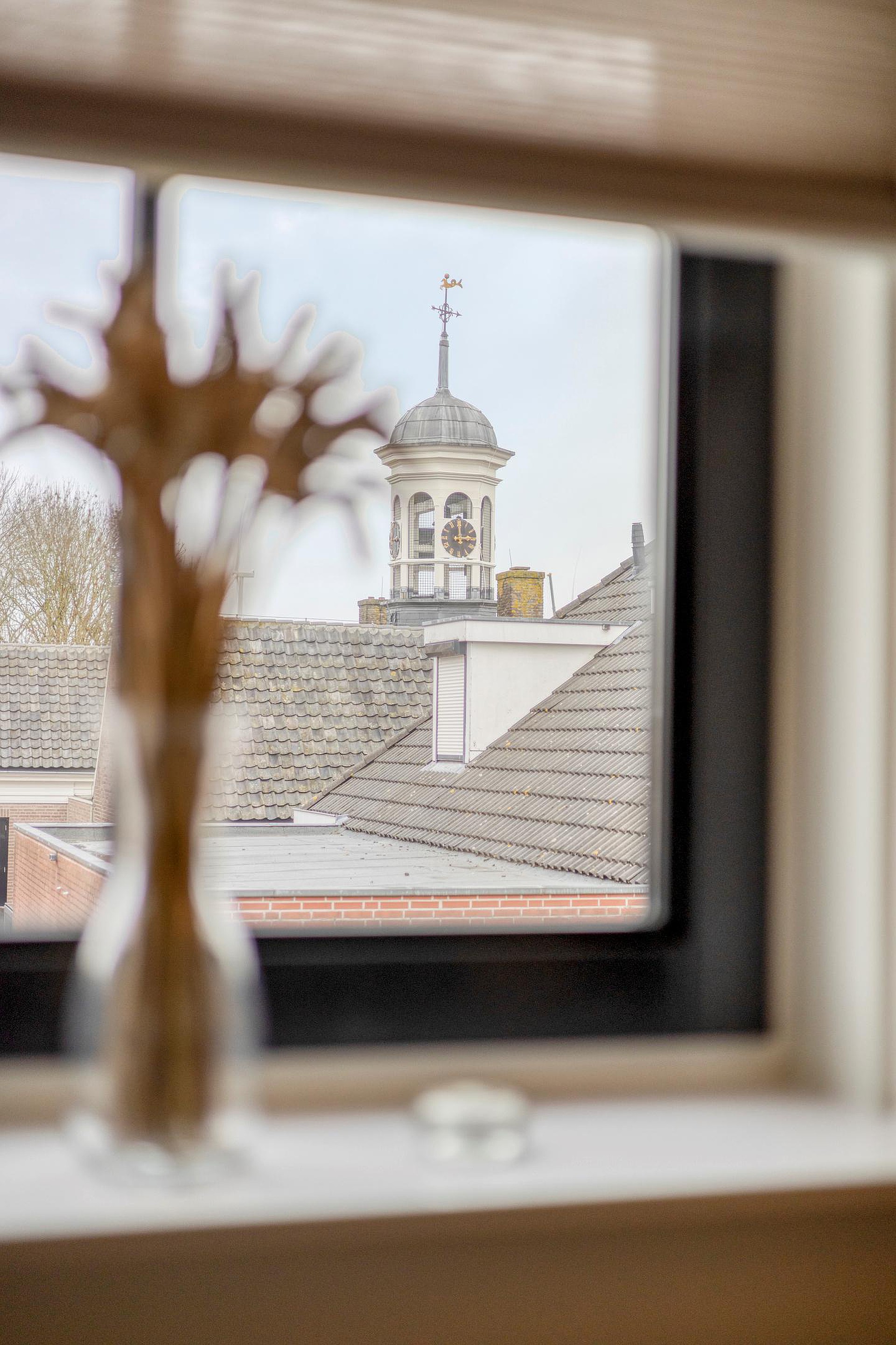 Dan gaan we terug de hal in richting de voordeur voor de slaapkamer met badkamer en-suite. Door de grote ramen, heb je ook hier een fijne lichtinval. De huidige eigenaar heeft qua bed voor een twijfelaar gekozen en heeft daardoor veel kastruimte. Uiteraard kan je ook voor een groter bed kiezen.