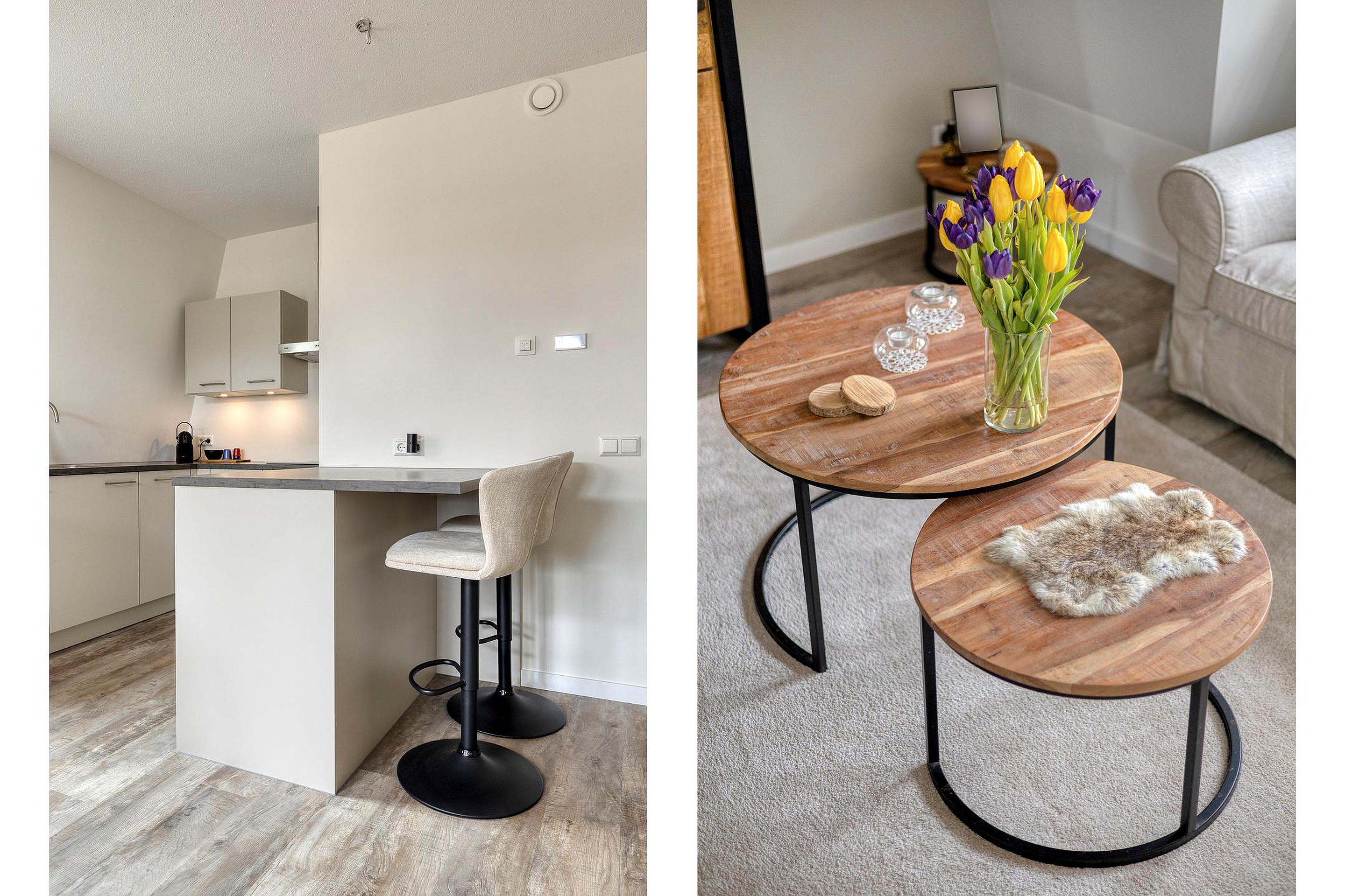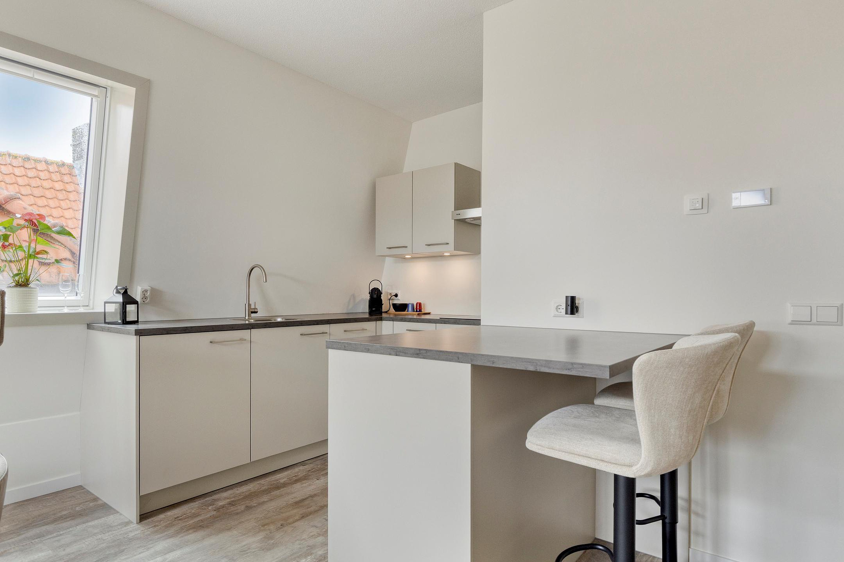 De keuken is opgesteld in een U-vorm en voorzien van een koelkast, een vaatwasser (smal model), inductie kookplaat, afzuigkap, combi oven en een vriezer. Deze is dus zeer compleet, zodat je heerlijk kan kokkerellen. Het barretje is een fijne plek voor een kop koffie of een maaltijd. En natuurlijk kan je hier ook prima plaatsnemen met je laptop voor een thuiswerkdag.