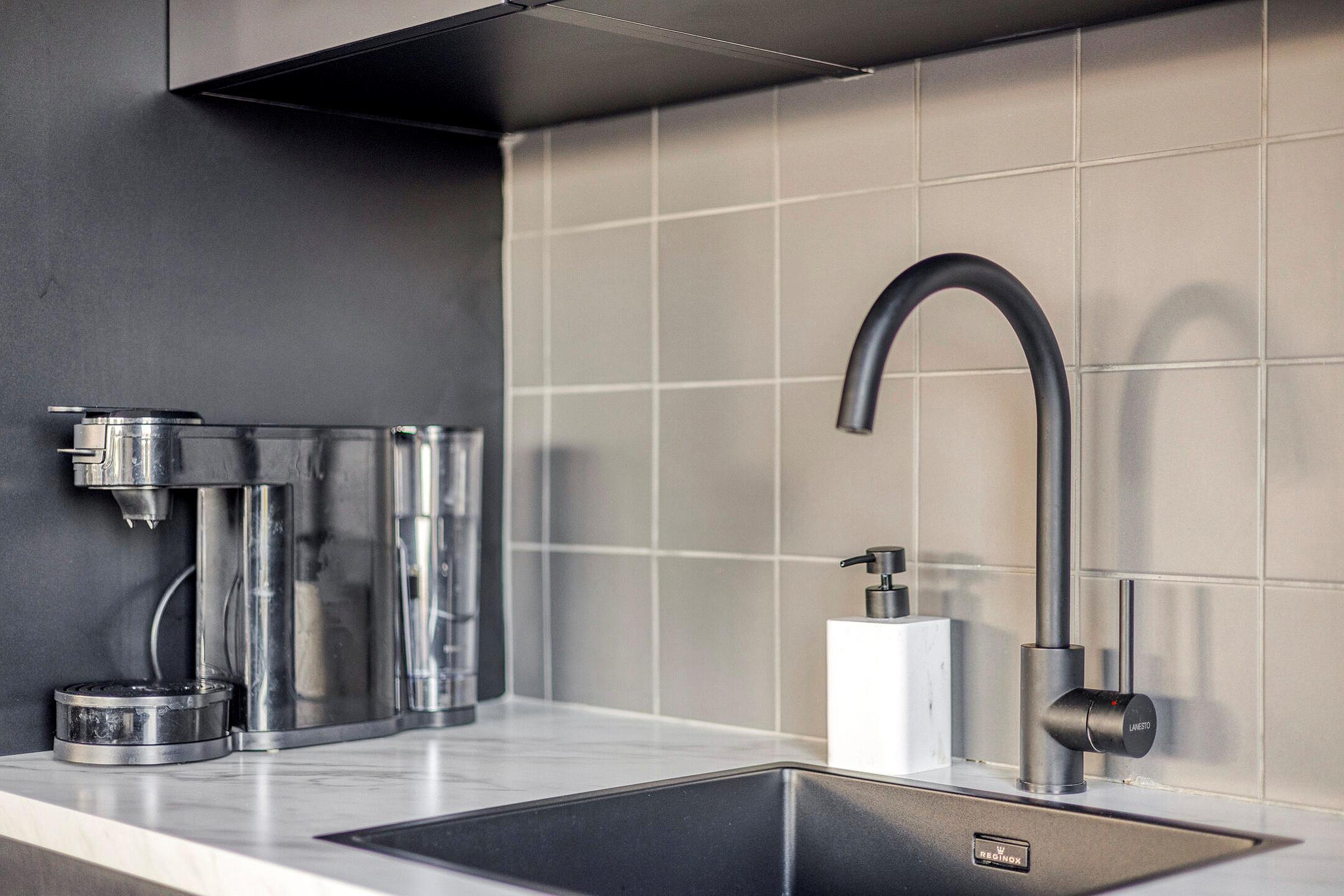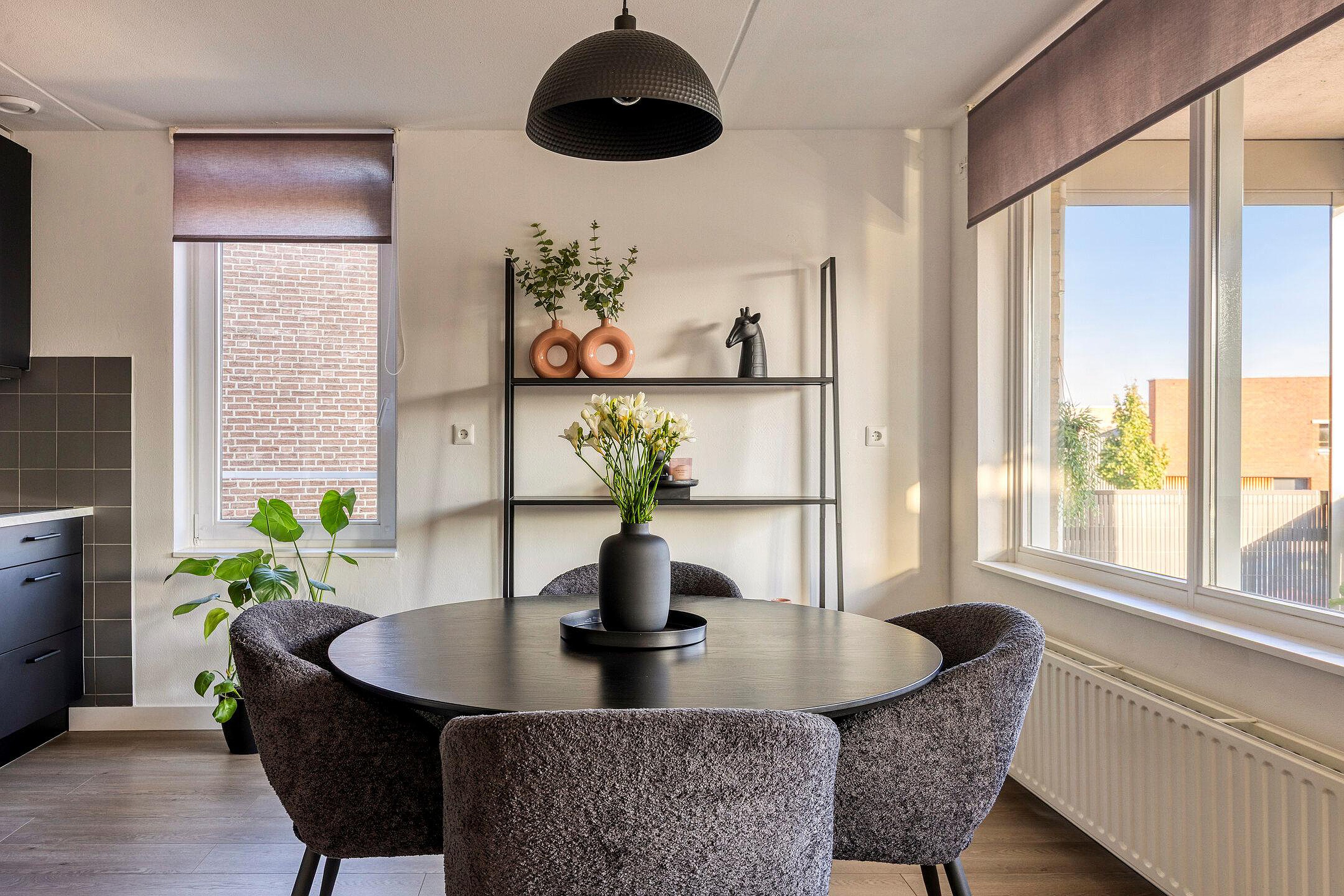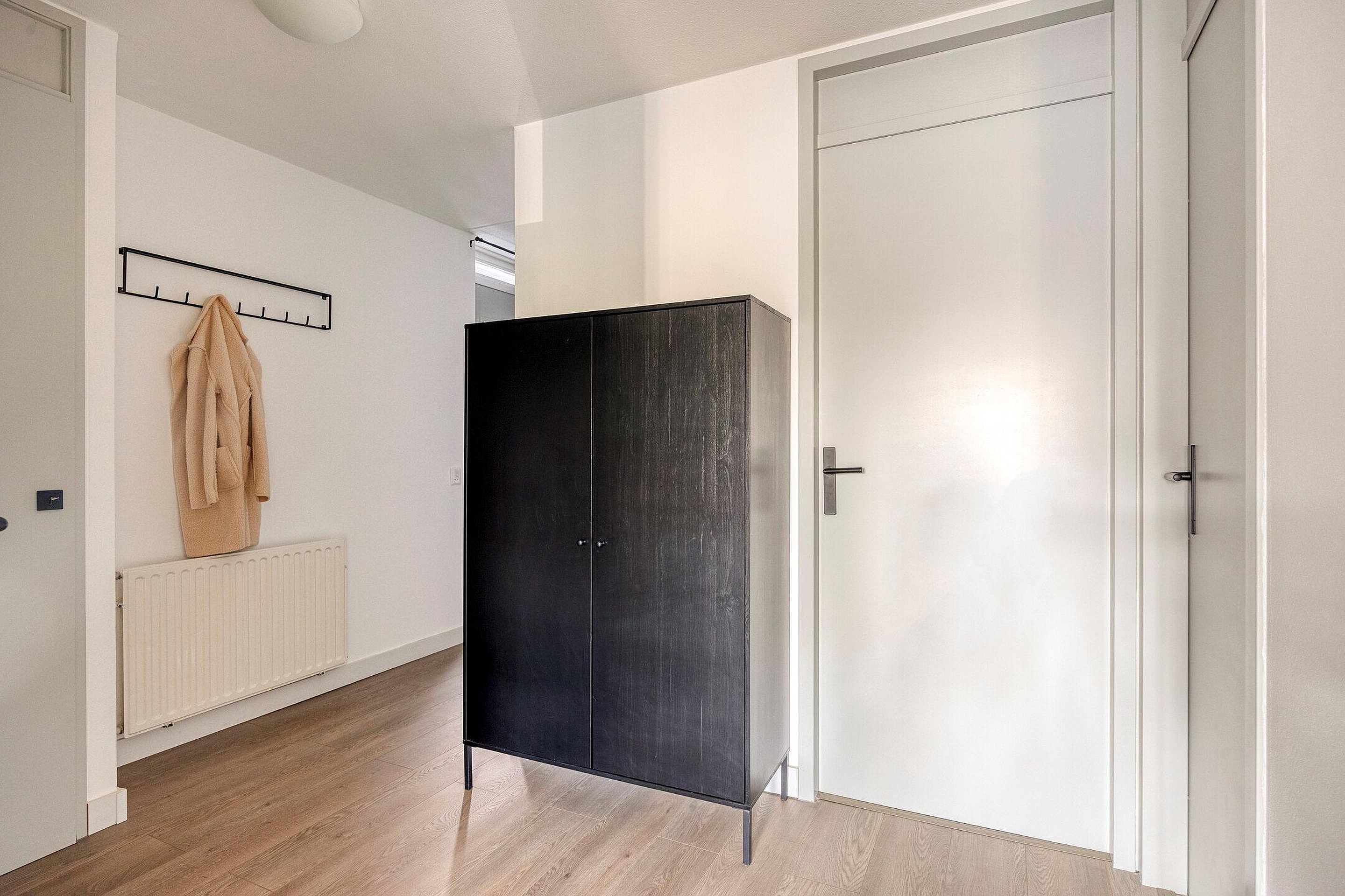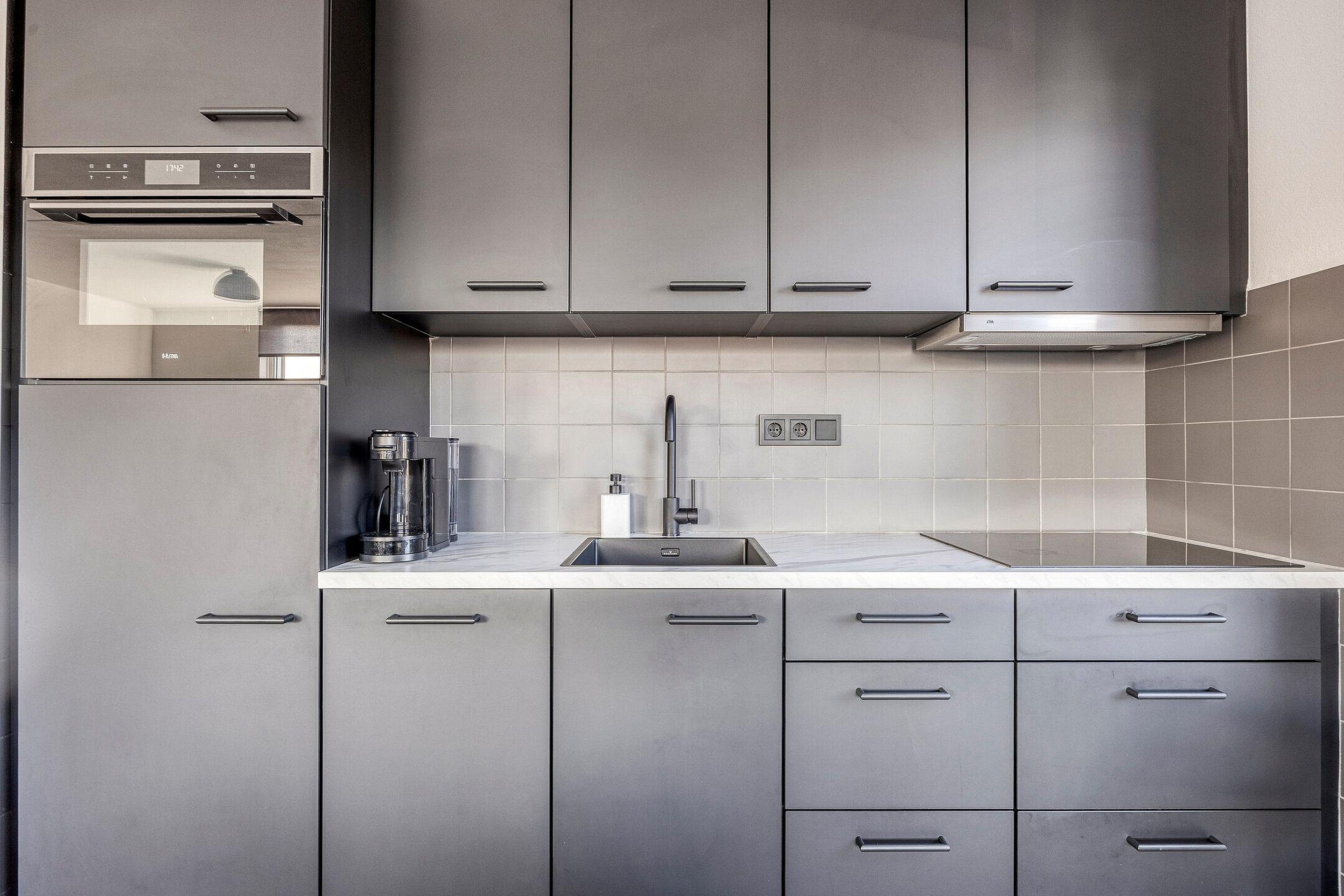 De in 2023 vernieuwde aanbouwkeuken met de volgende apparatuur: inductie kookplaat, koel/diepvriescombinatie, spoelbak met kraan, combi- magnetron en vaatwasser. Door de zwarte uitvoering van de keuken is dit een echte eye-catcher! Twee keurige slaapkamers (3.04 x 4.56 en 3.14 x 2.05) aan de achterzijde van het appartement, uitkijkend op de binnenplaats van het appartementencomplex.