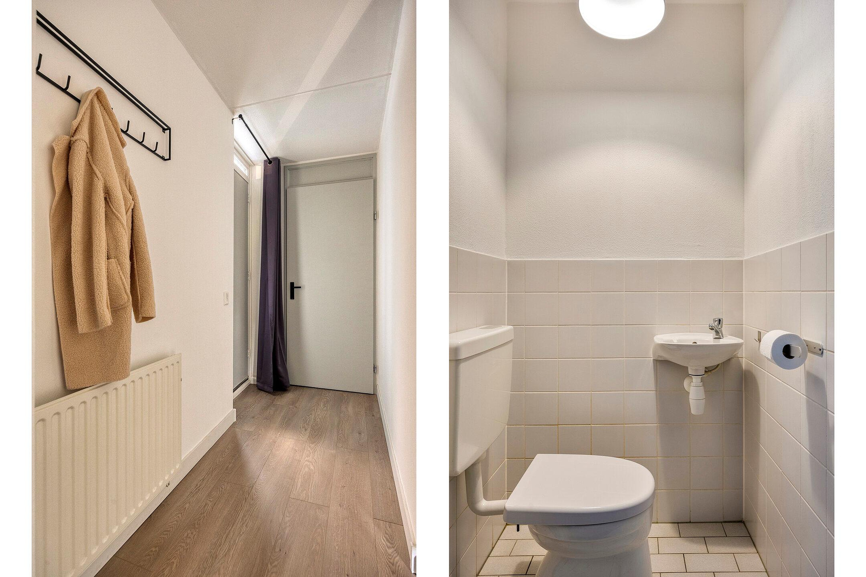 Het toilet met fonteintje, de bergkast met CV-installatie (Vaillant 2013 in eigendom) en tevens zijn hier de aansluitingen voor de witgoedapparaten en is hier de meterkast gesitueerd. De gezellige woonkamer, aan de straatzijde, met veel lichtinval door de grote raampartijen. Door de aanwezigheid van zonwering aan de binnenzijde en rolluiken is de privacy gewaarborgd.